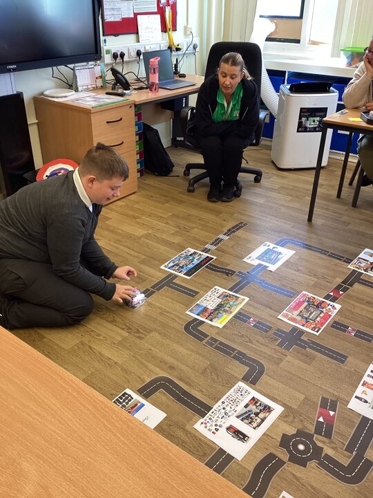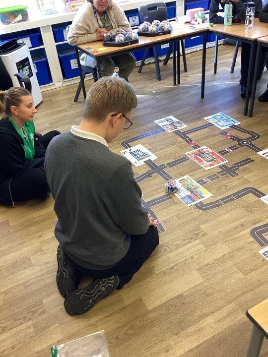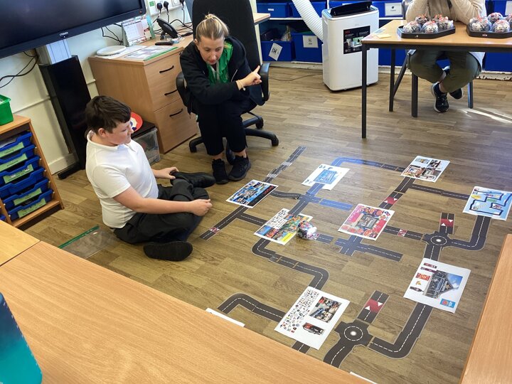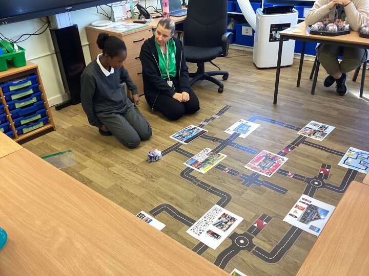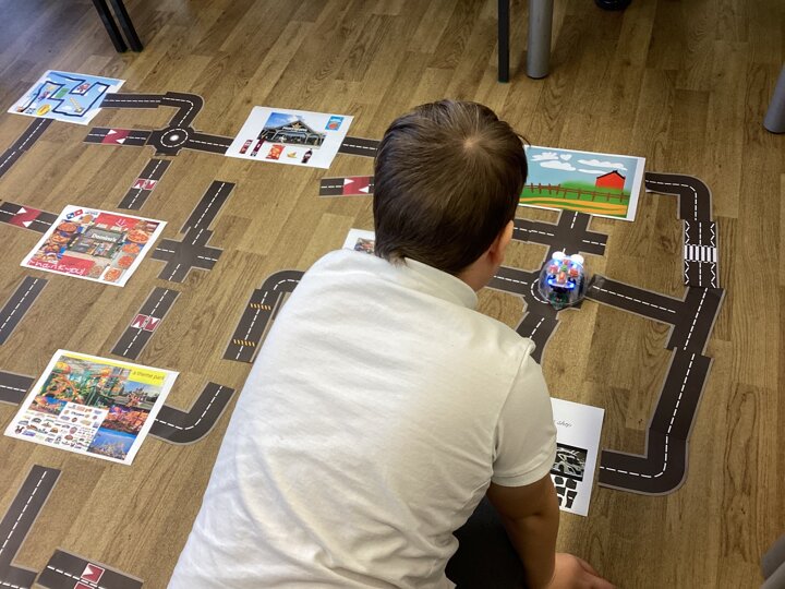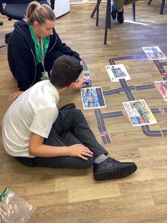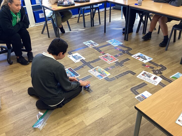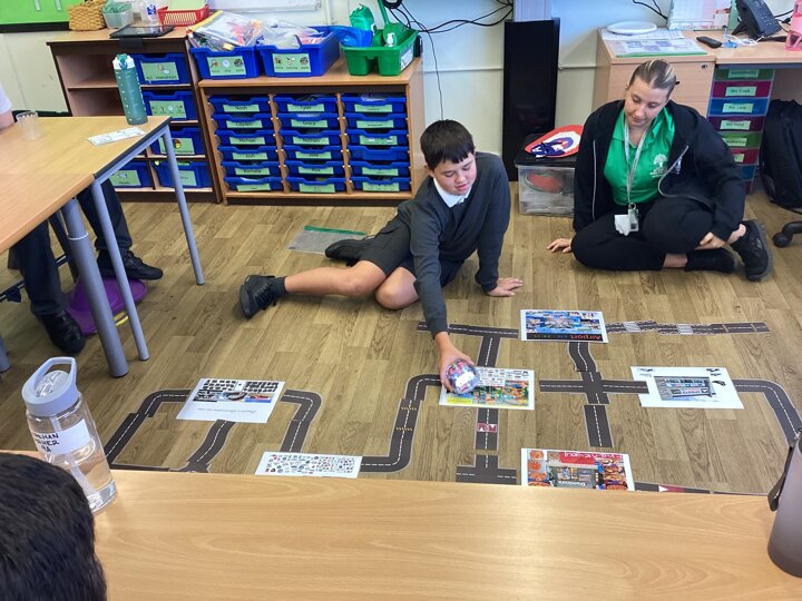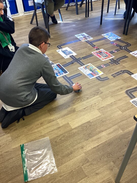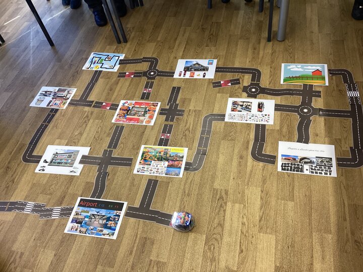 This week we have used the venues that we created last week to make a map. We set out roads to our various places, including; a theme park, a farm, a supermarket, a sports shop and a garage. We used the bee-bots to navigate around the map, using our knowledge of direction to help.