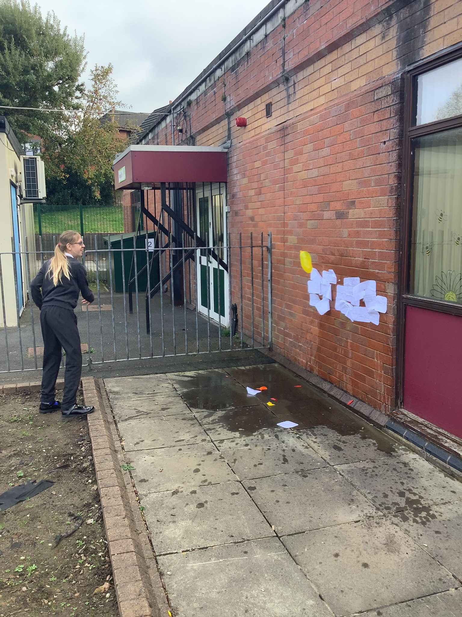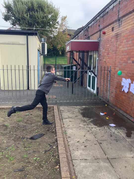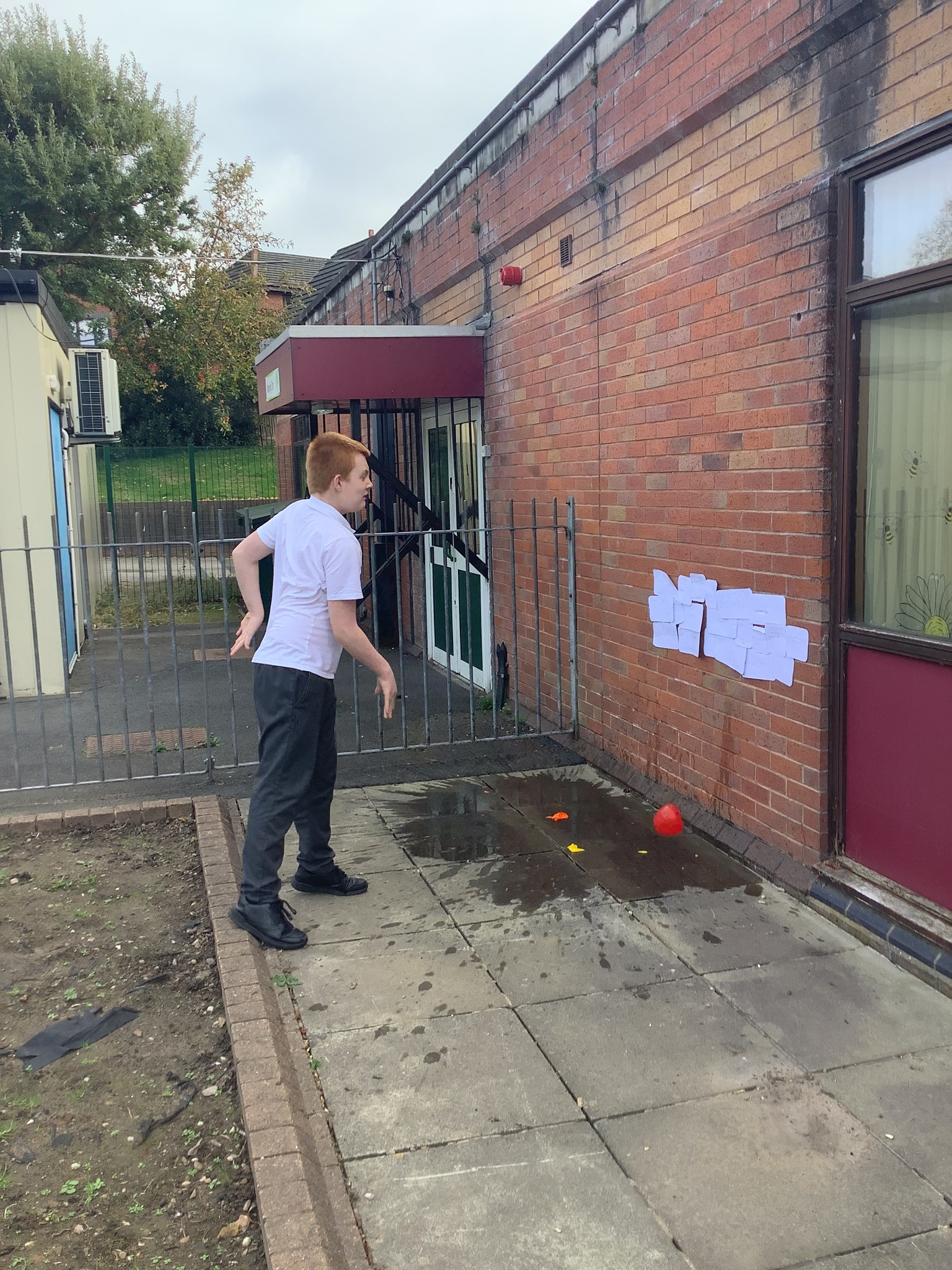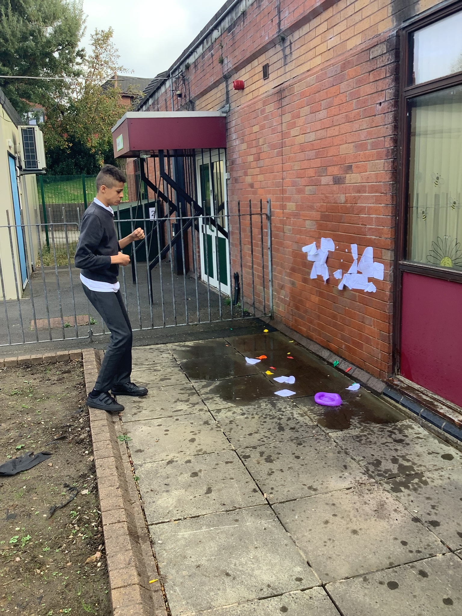 Each learner was given a piece of paper with a shape of a brick on it. On the brick they wrote down two things that made them feel worried. Once this was done they went outside to build a “worry wall” Each learner was then given a water balloon to throw at the worry wall until all the worries were gone.