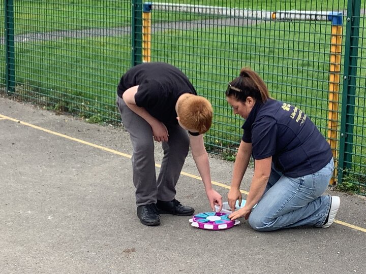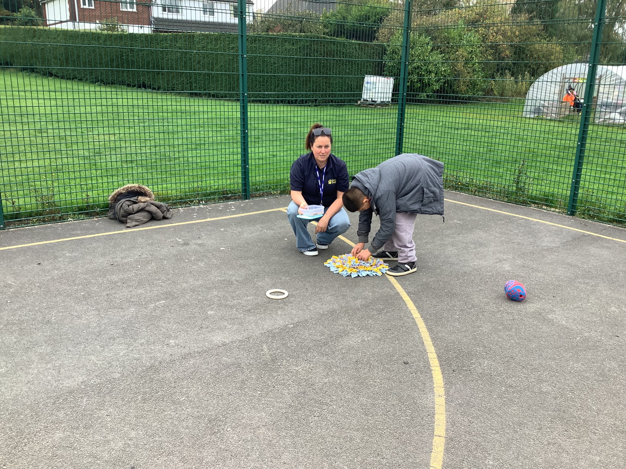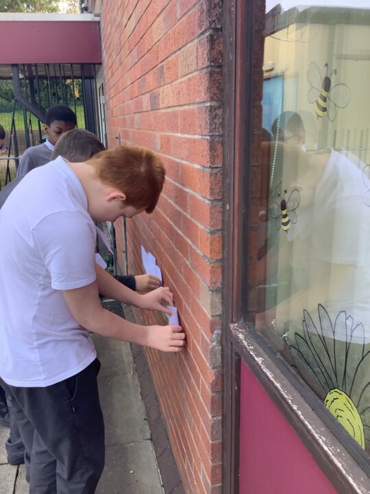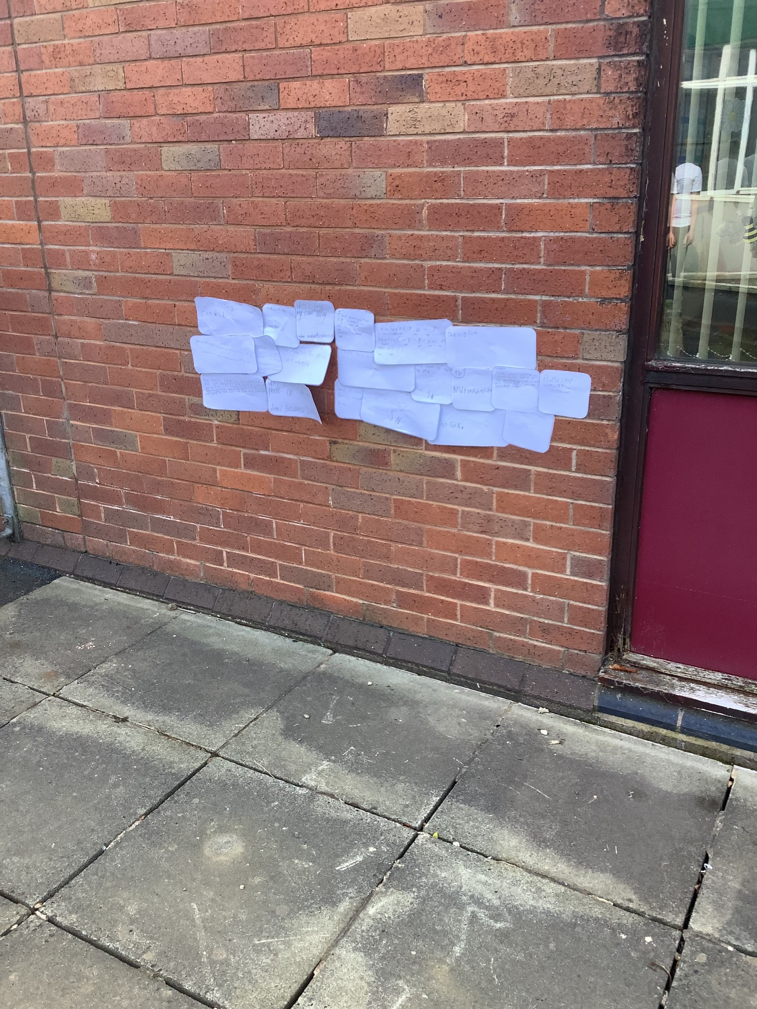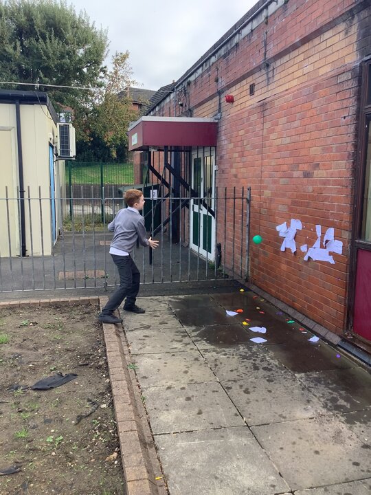 Each learner was given a piece of paper with a shape of a brick on it. On the brick they wrote down two things that made them feel worried. Once this was done they went outside to build a “worry wall” Each learner was then given a water balloon to throw at the worry wall until all the worries were gone.