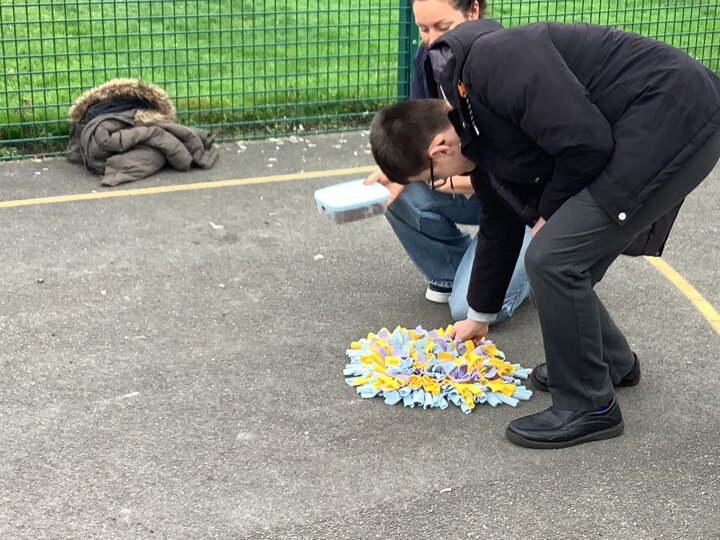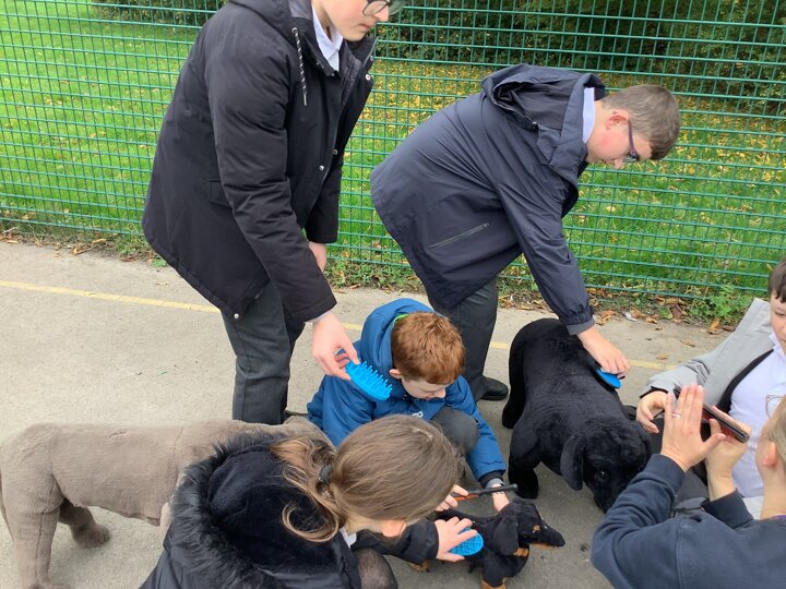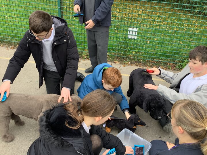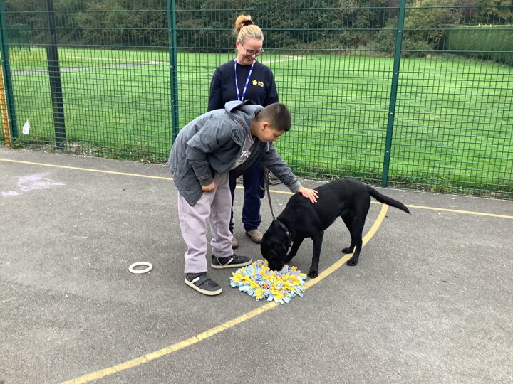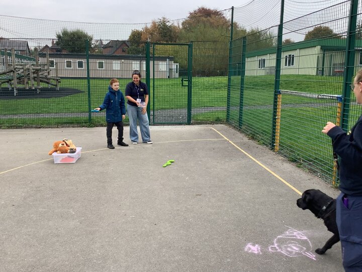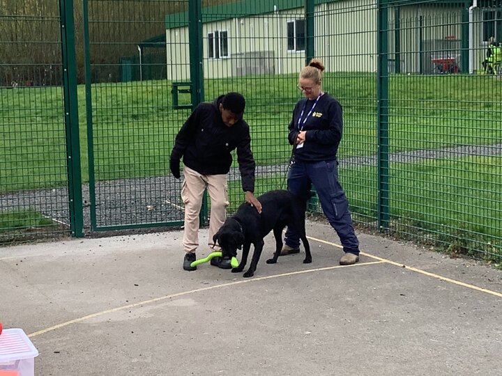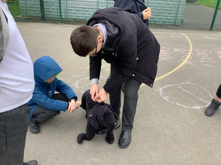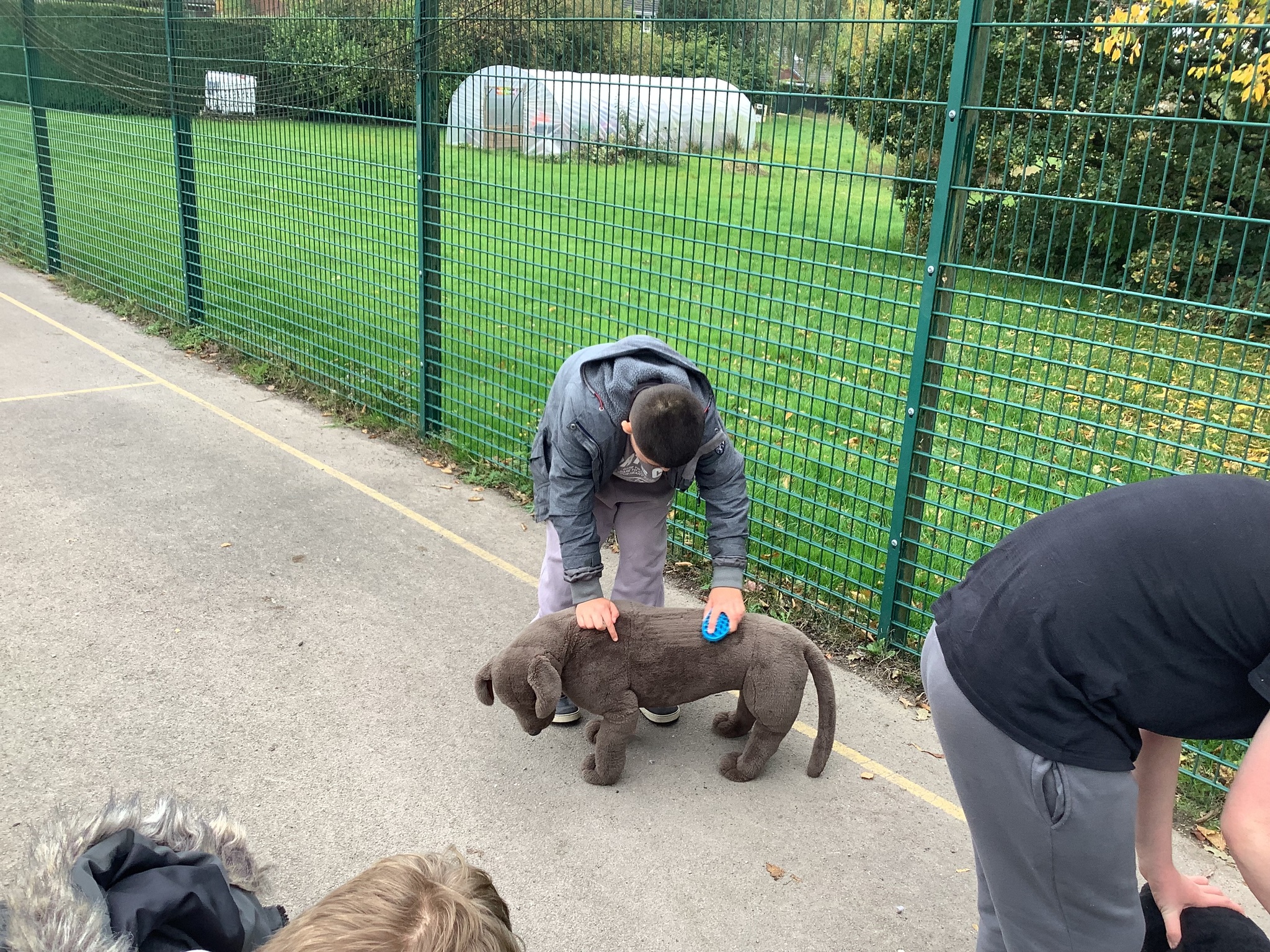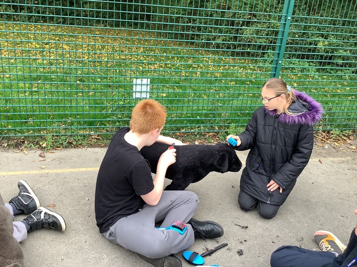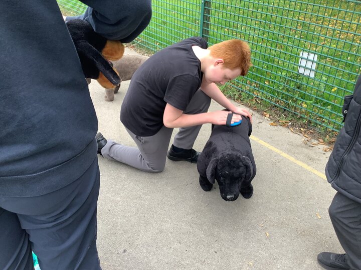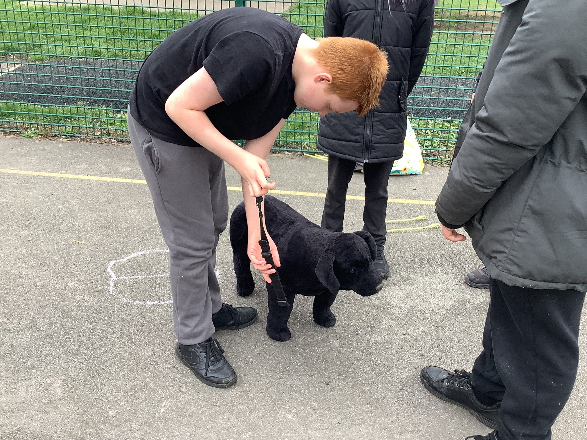 8A learnt how to groom a dog, put harnesses and leads on and then they all one by one hid treats in toy and said “Ned, come” and Ned would come and retrieve the treat.