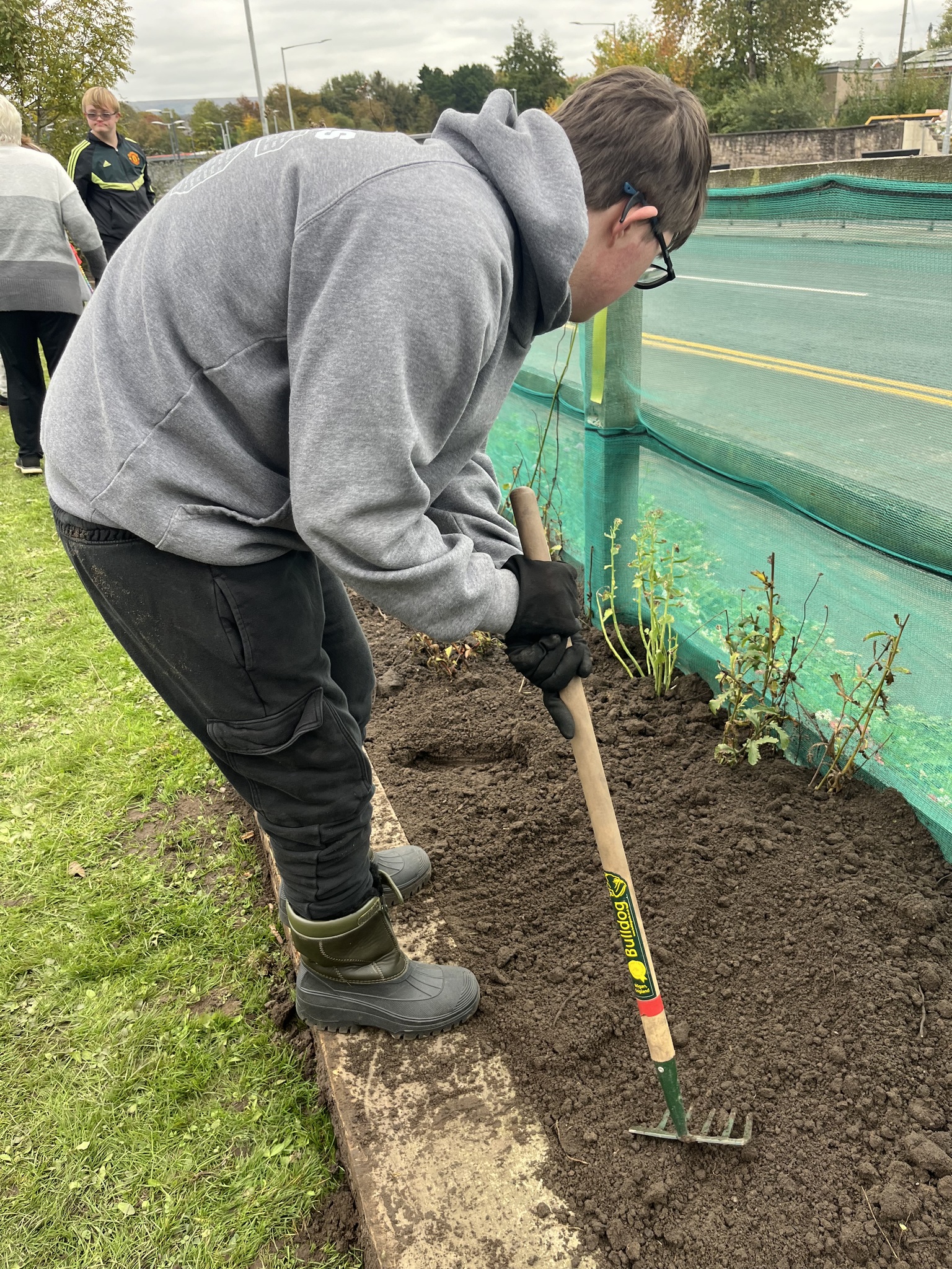 We’ve carried on with our swimming lessons and our volunteering up at Chorley in Bloom, where we’ve been getting the gardens ready for winter.