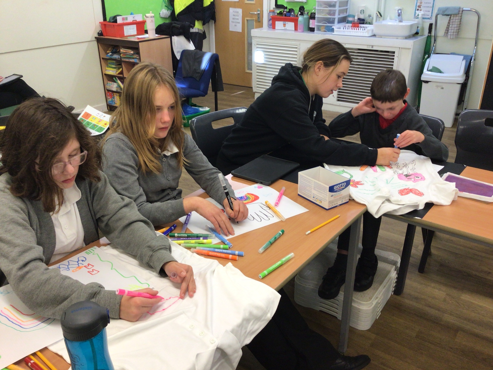 On Wednesday we had the opportunity to practice tally charts again to make sure we’d learned all the skills and in the afternoon, we started our new unit in My Thinking and Problem Solving in DT, where we printed on our own fabrics using fabric pens to create designs on school t-shirts!