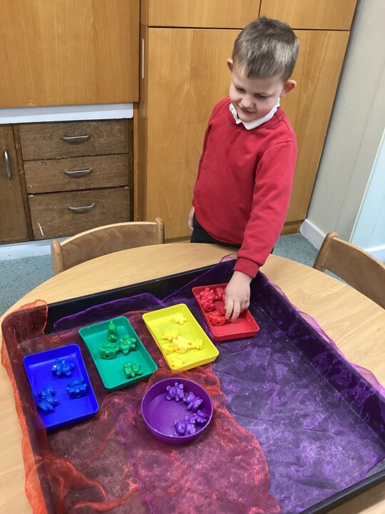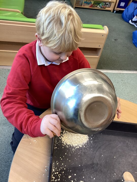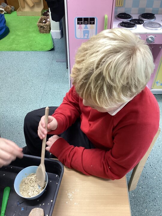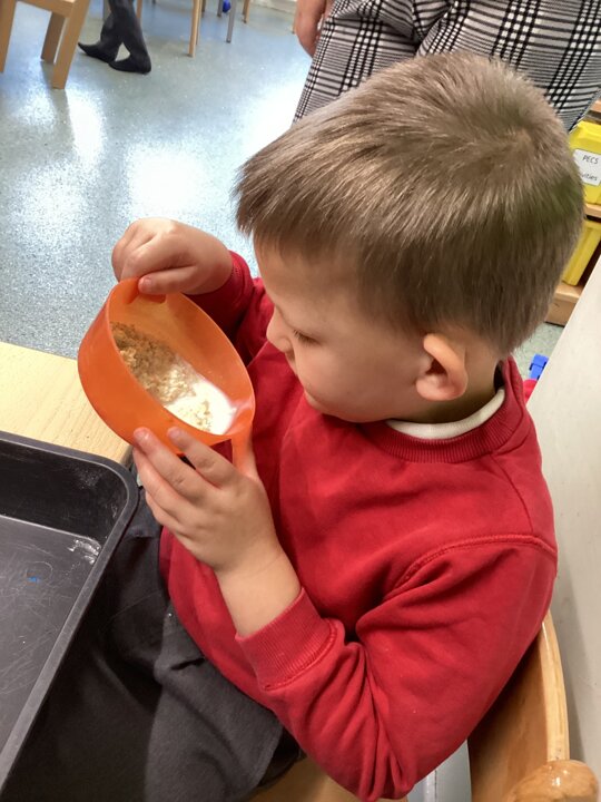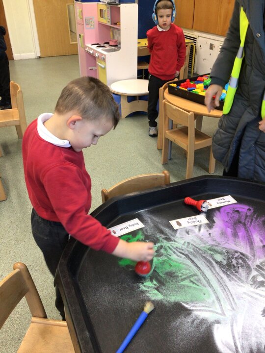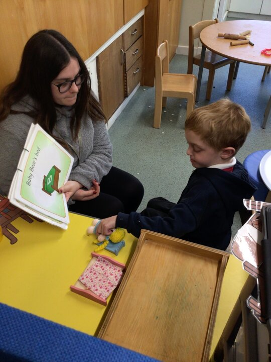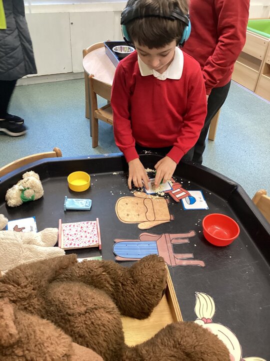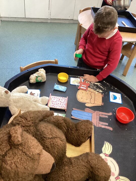What a super busy week we have had in Beech. This week we explored Goldilocks and the three bears. We listened to the story and then had turns at retelling the story with the props. We explored lots of sensory trays and used the communication boards to say what we could see.