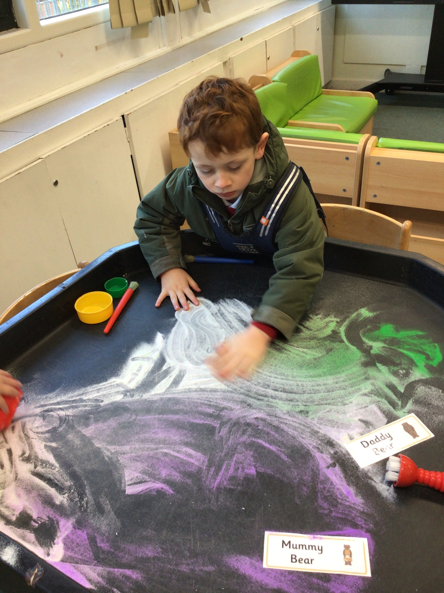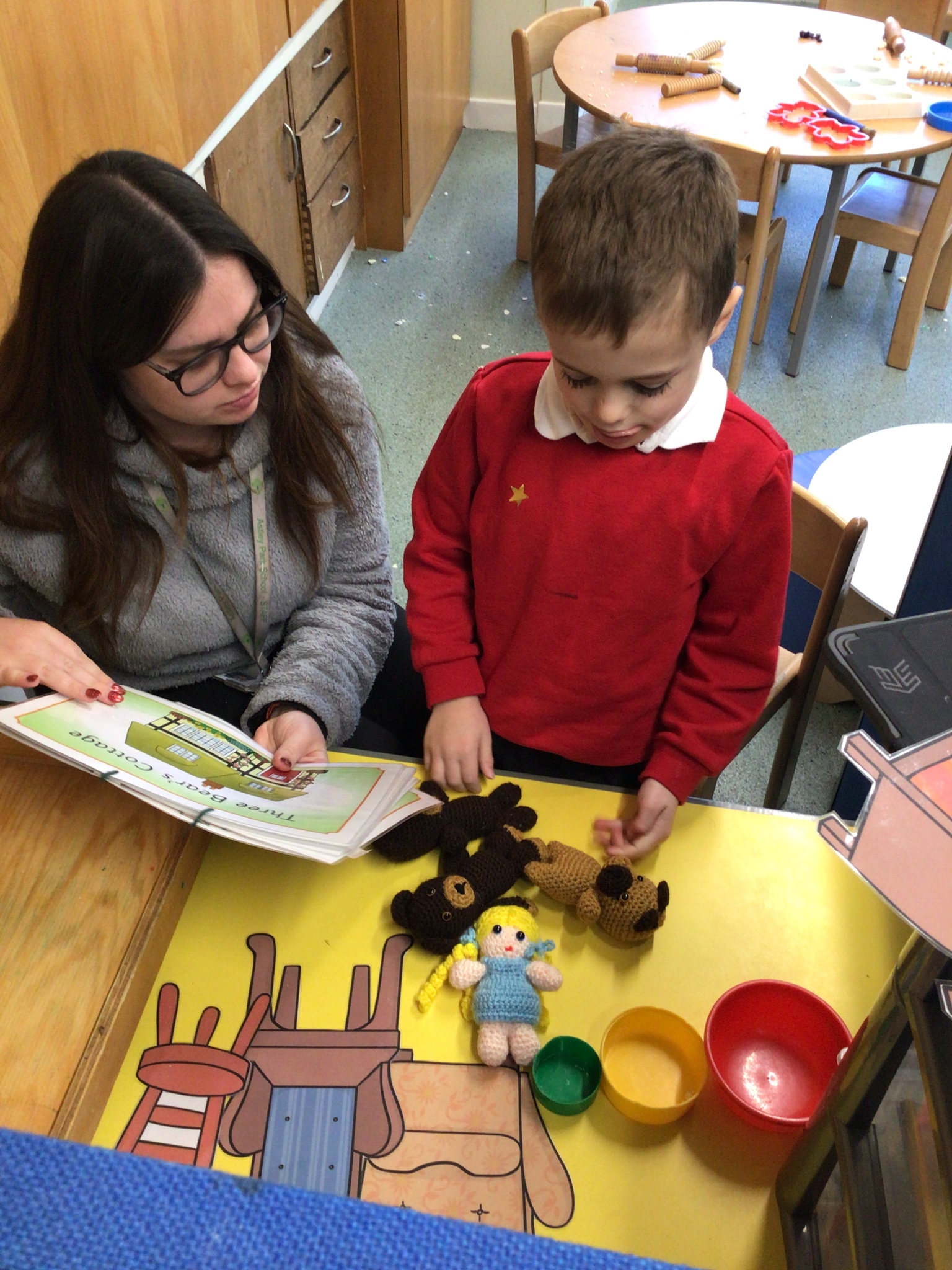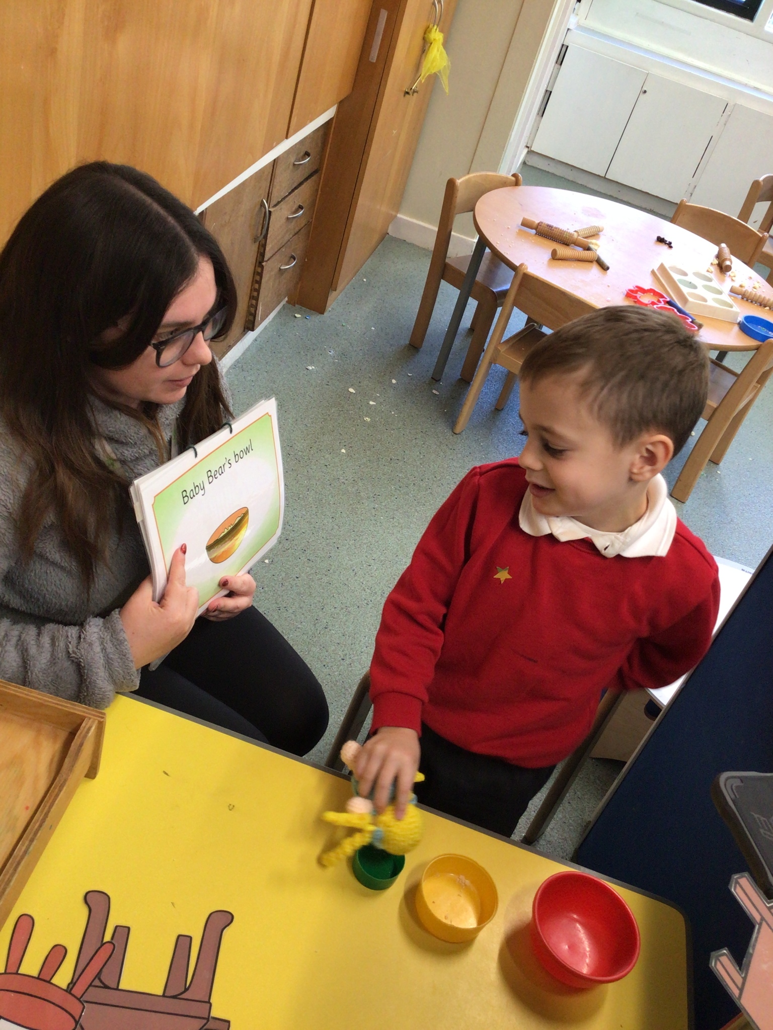 What a super busy week we have had in Beech. This week we explored Goldilocks and the three bears. We listened to the story and then had turns at retelling the story with the props. We explored lots of sensory trays and used the communication boards to say what we could see.