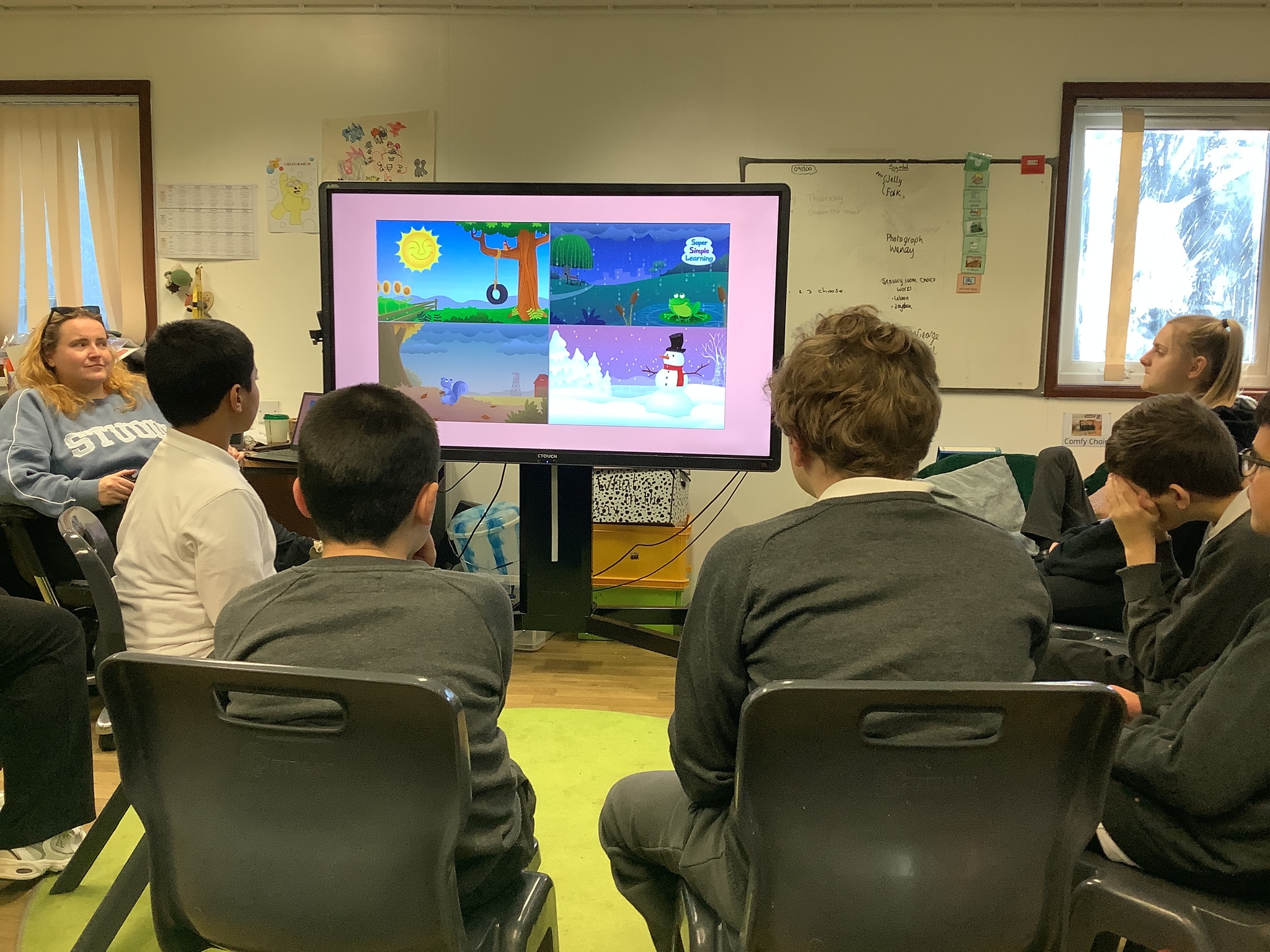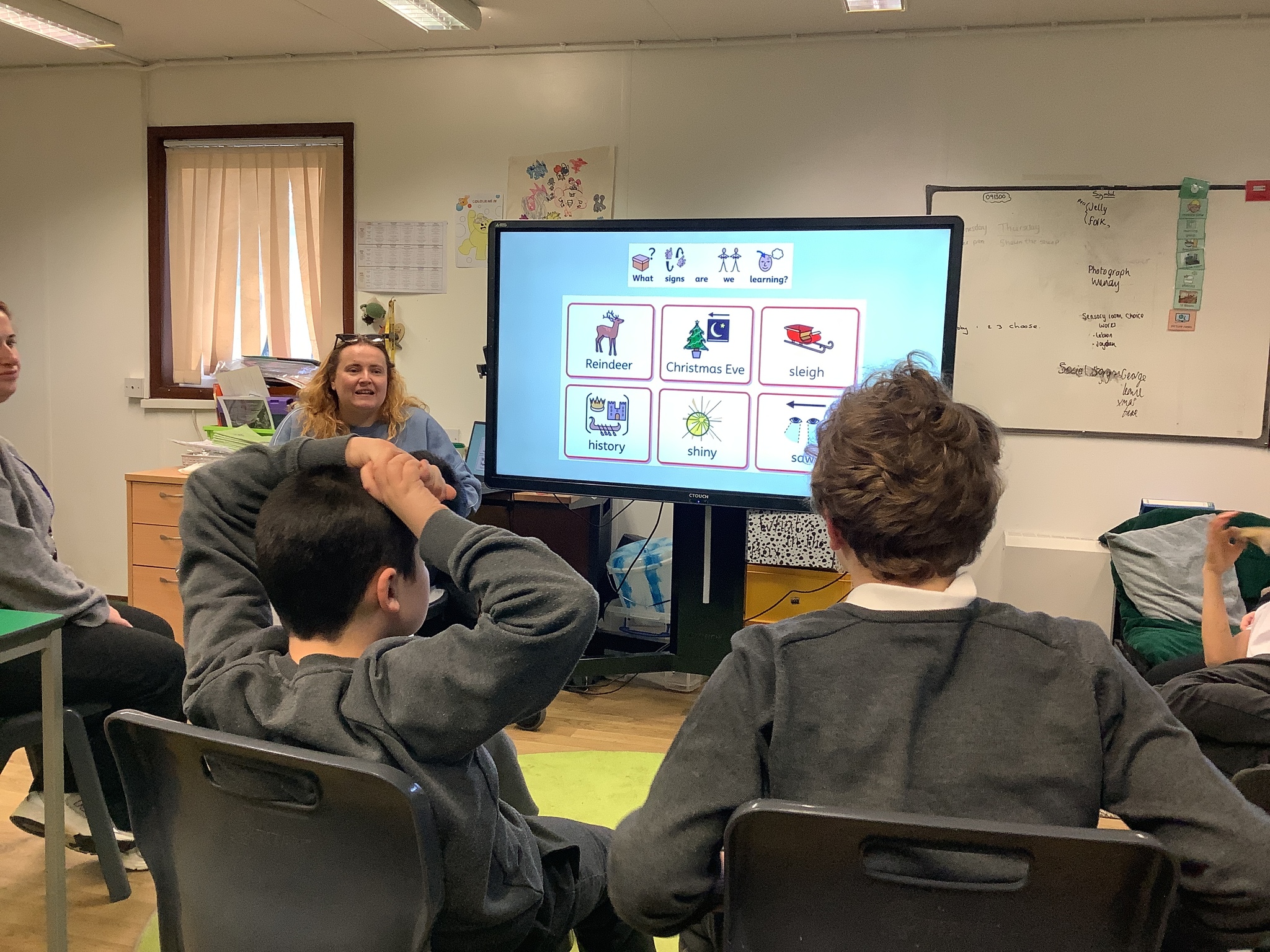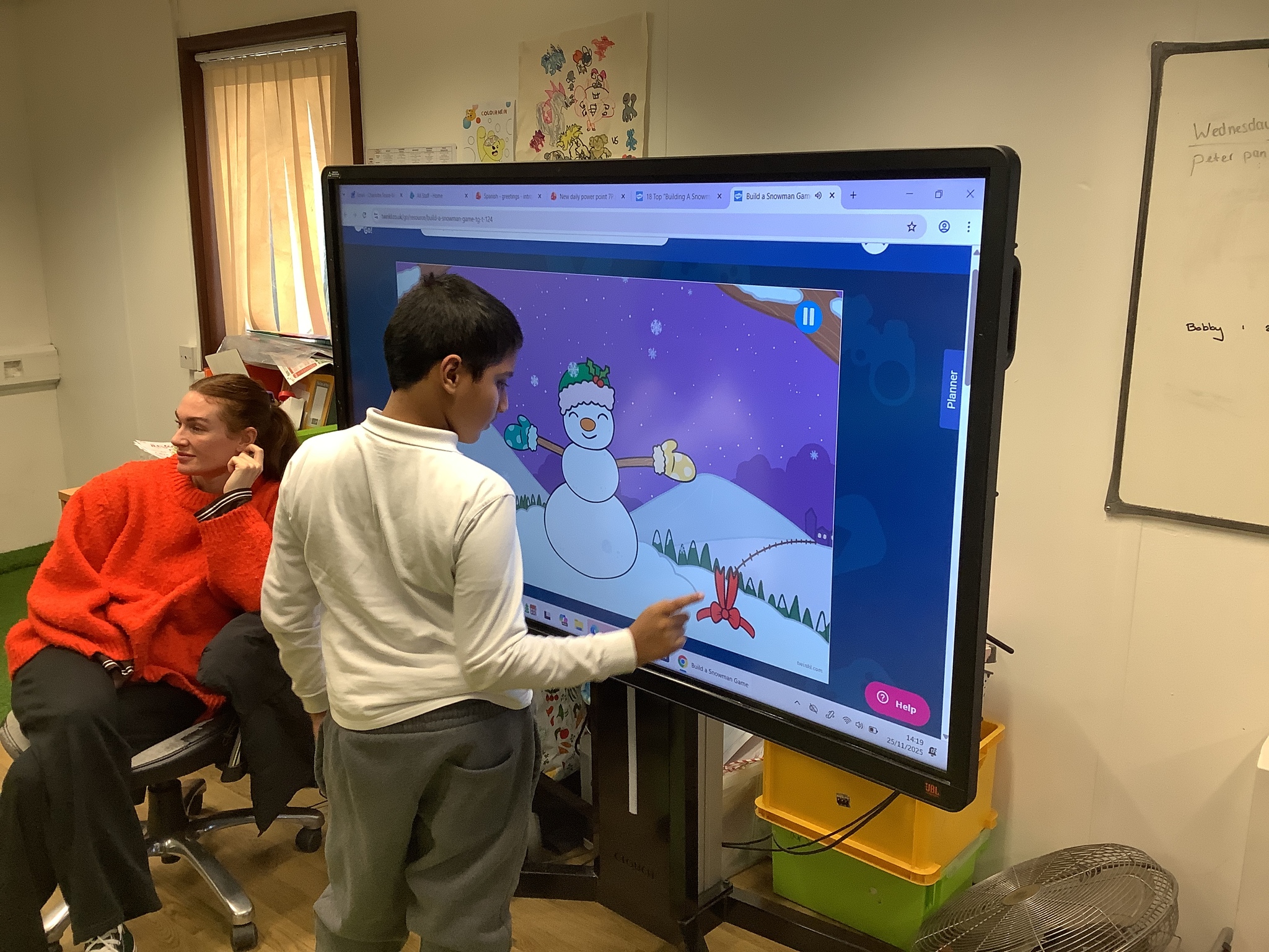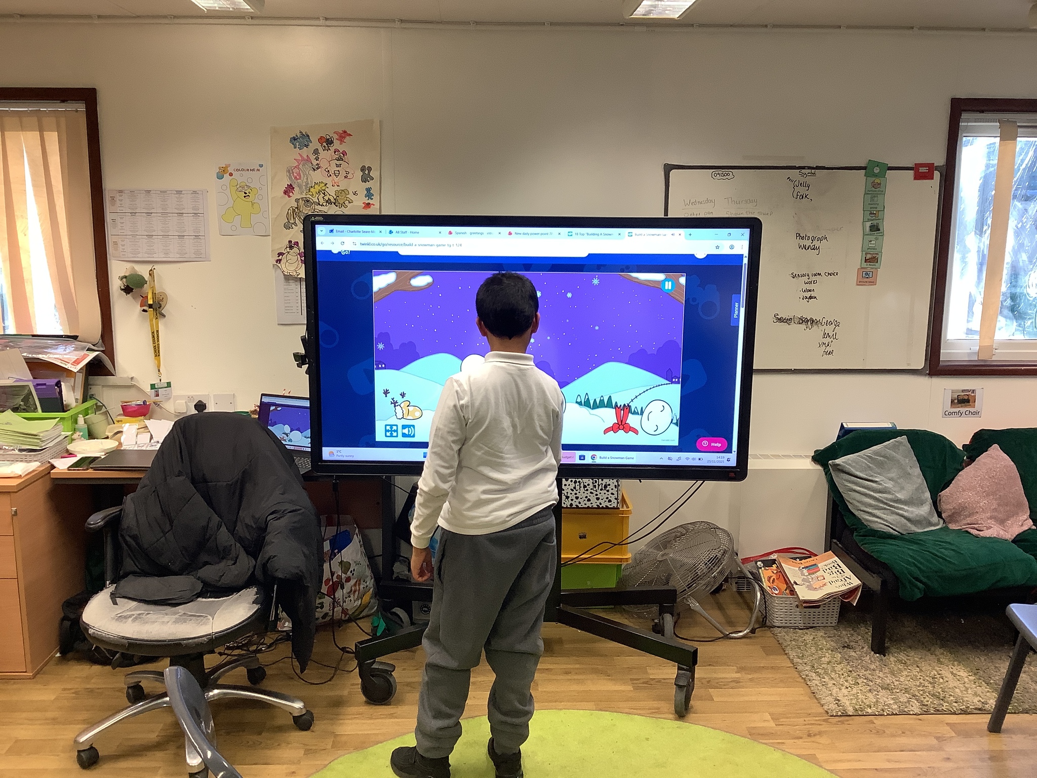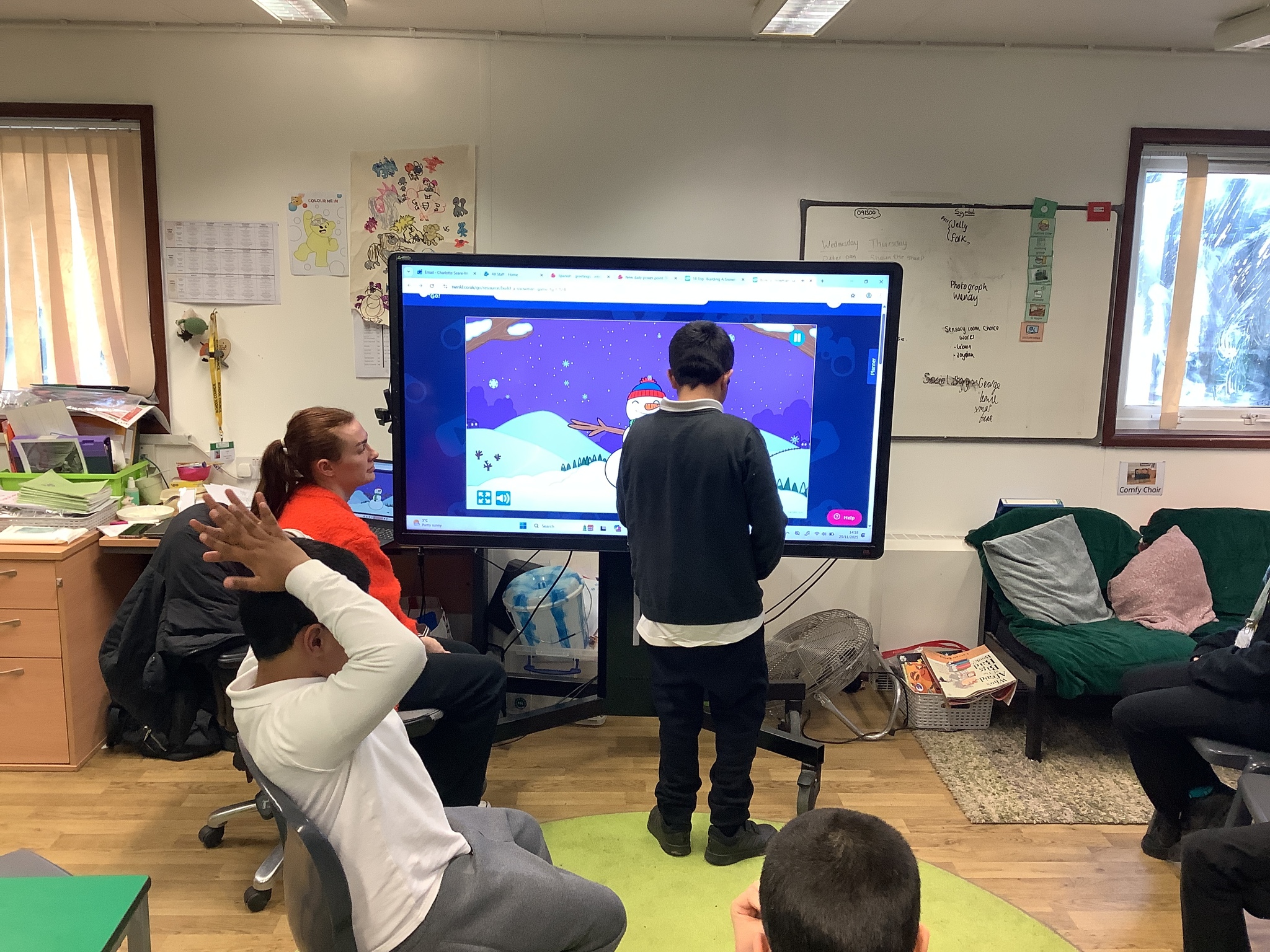 Thursday Morning saw our Phonics and Reading lesson returned to its usual morning slot, and in the afternoon we practiced our Christmas Song before enjoying a Christmas Story on the Interactive Whiteboard as well as playing some Christmas Games with our friends on the Interactive Whiteboard.