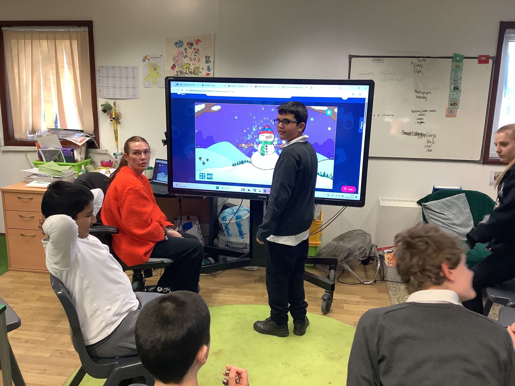 We enjoyed P.E. on Tuesday Morning and it’s been fantastic to see everyone working as hard as they can during our P.E. sessions, as well as always trying their best! On Tuesday Afternoon we had our Spanish lesson and we recapped our previous learning before talking about the weather in English. In the next few weeks we’re going to be learning about the weather in Spanish so we took the time to check what we know in English, and it’s fair to say that we’ve a number of budding meteorologists in class! We also continued our practicing for the Christmas Performance, as well as taking some photos in front of a green screen to use as Christmas Decorations for the Christmas Tree in the hall.