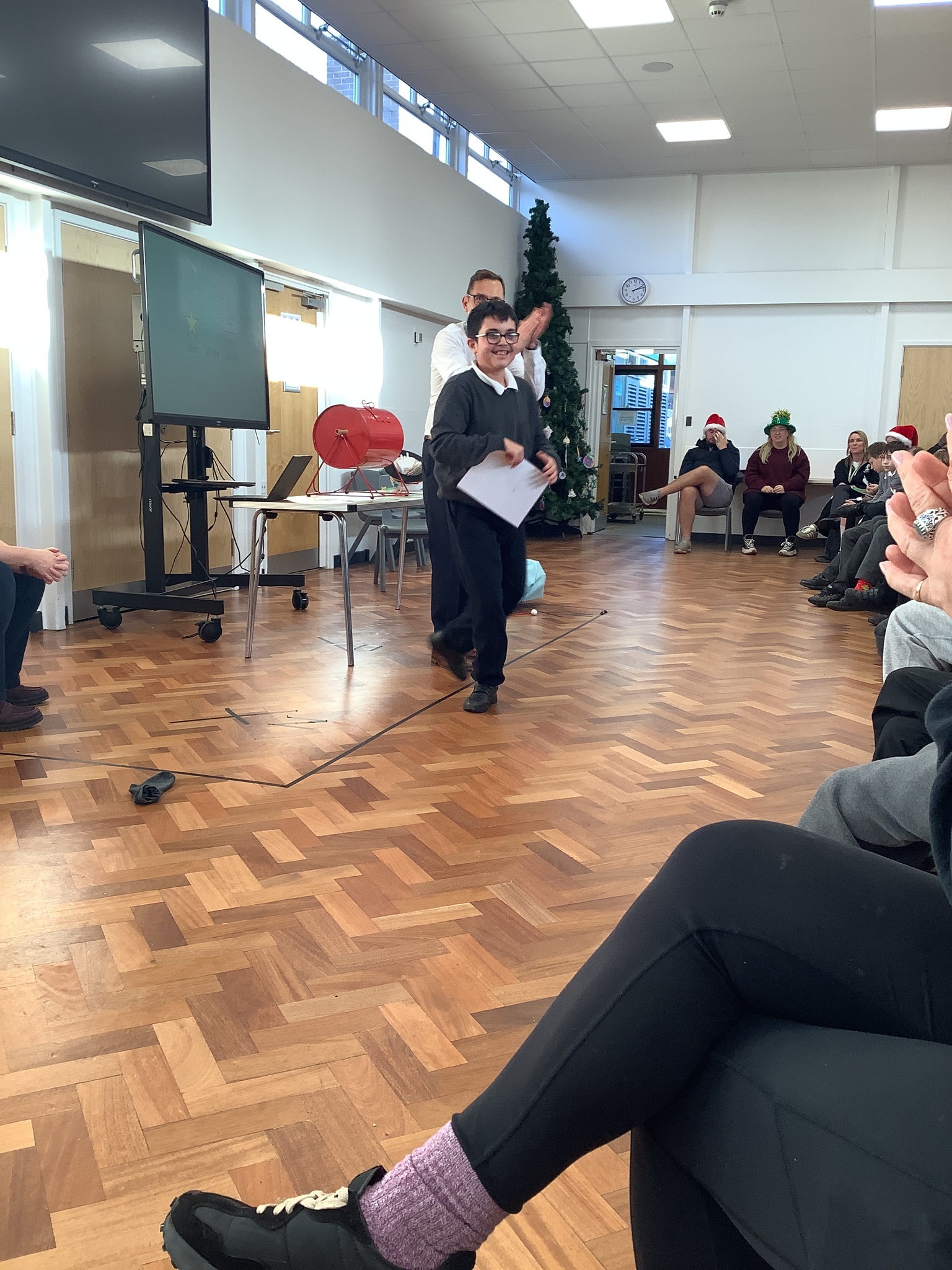 There was no Miss Molloy on Friday, so Mrs Smith started the day with lots of energy as she played “Friday-Dopamine” by Nightcrawlers and Riton, and the class enjoyed a dance! It was Phonics, Reading and Number work on Friday Morning before we had a practice of our Christmas Song prior to lunch, and in the afternoon we enjoyed Golden Time as a reward for all of our hard work this week! We’ve done super this week, and continue to show why we are a brilliant class! Finally, during assembly we all went up to the front of the hall to place our decorations on the Christmas Tree, and then Mr Welsh gave us our class Advent Calendar!
