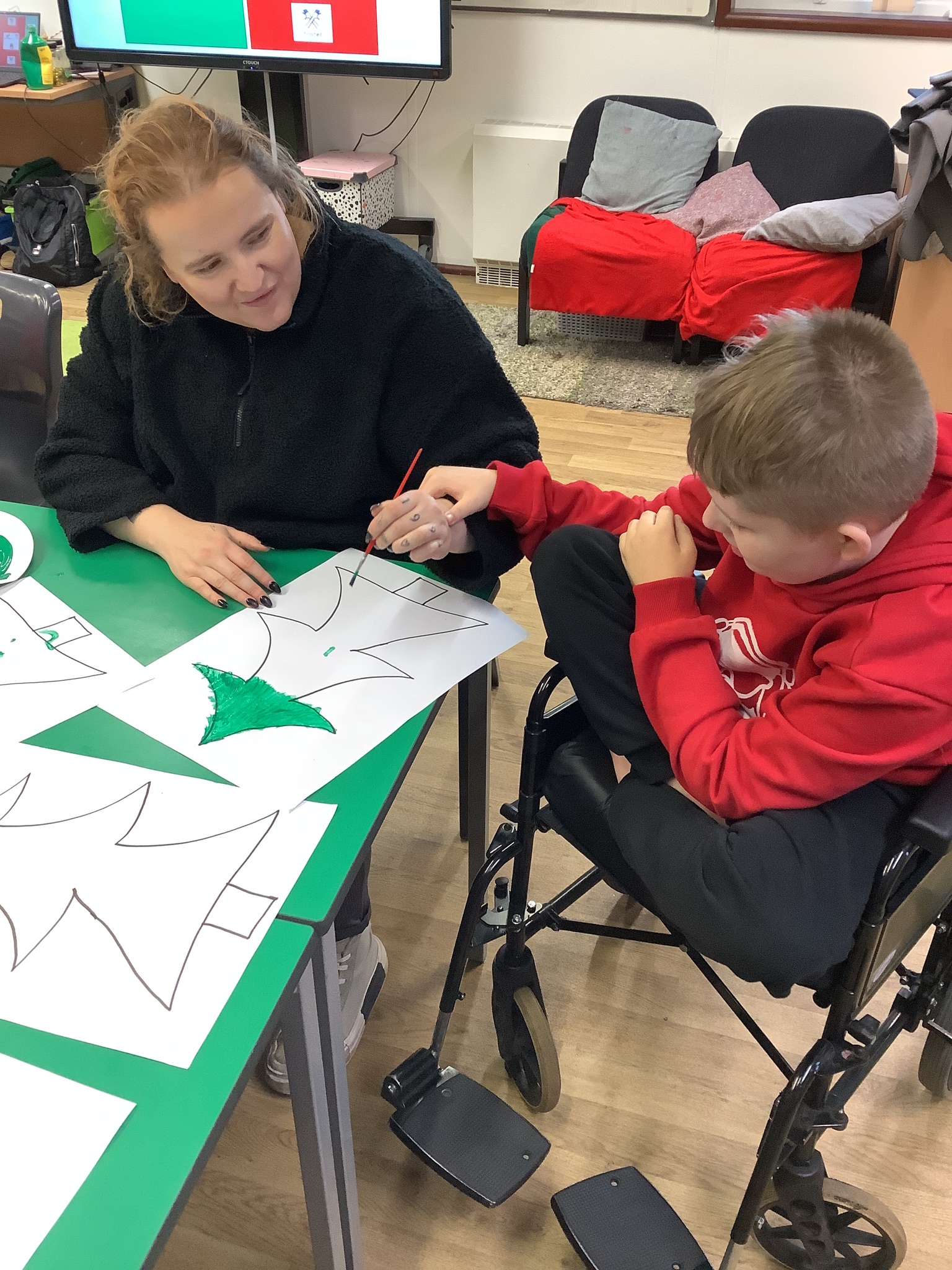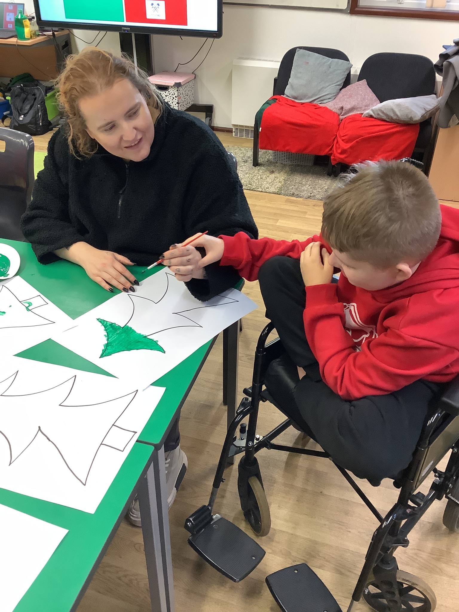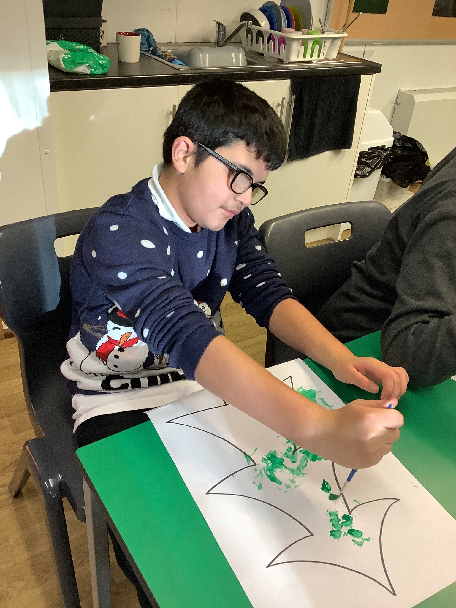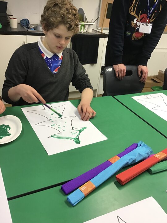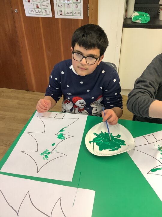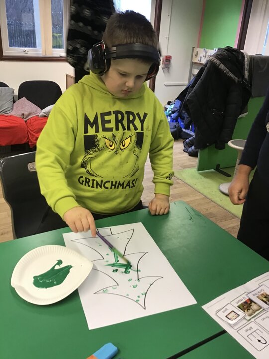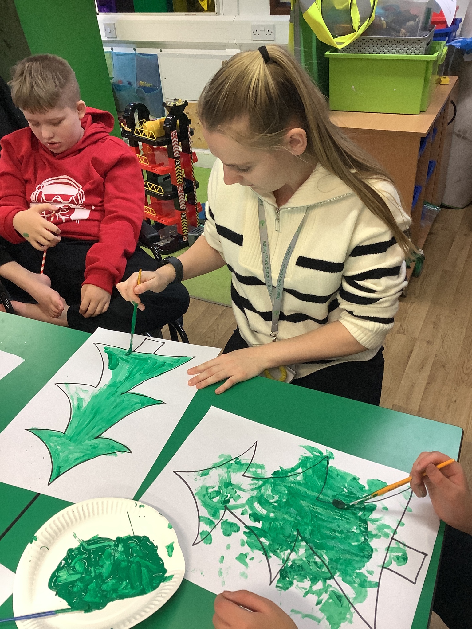 As Primary were having their Christmas Dinner in the hall on Thursday we had a buffet in class, and in the afternoon we painted Christmas Trees to decorate our classroom with, both staff and pupils enjoyed painting a Christmas Tree! We also had a number of fantastic Christmas jumpers on display!
