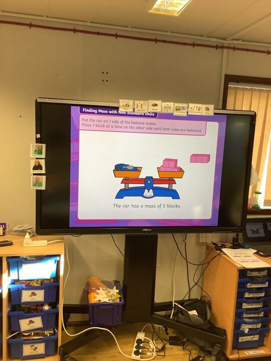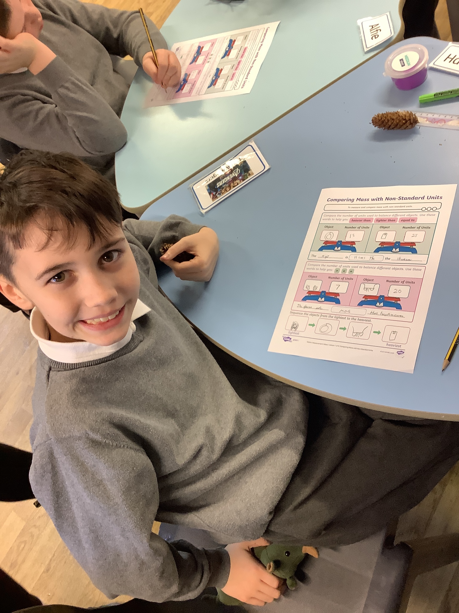 In Maths this week we have been learning about weight and measure, we used different resources around our class to work out the weight using scales to measure the weight of the items we had chosen.