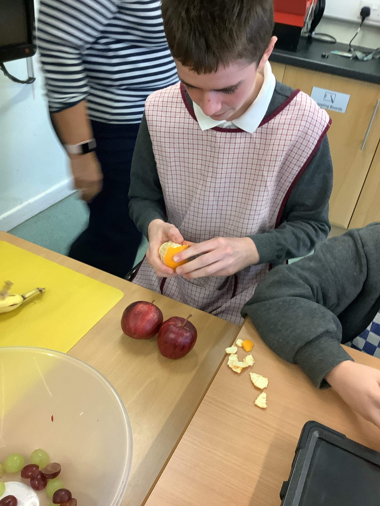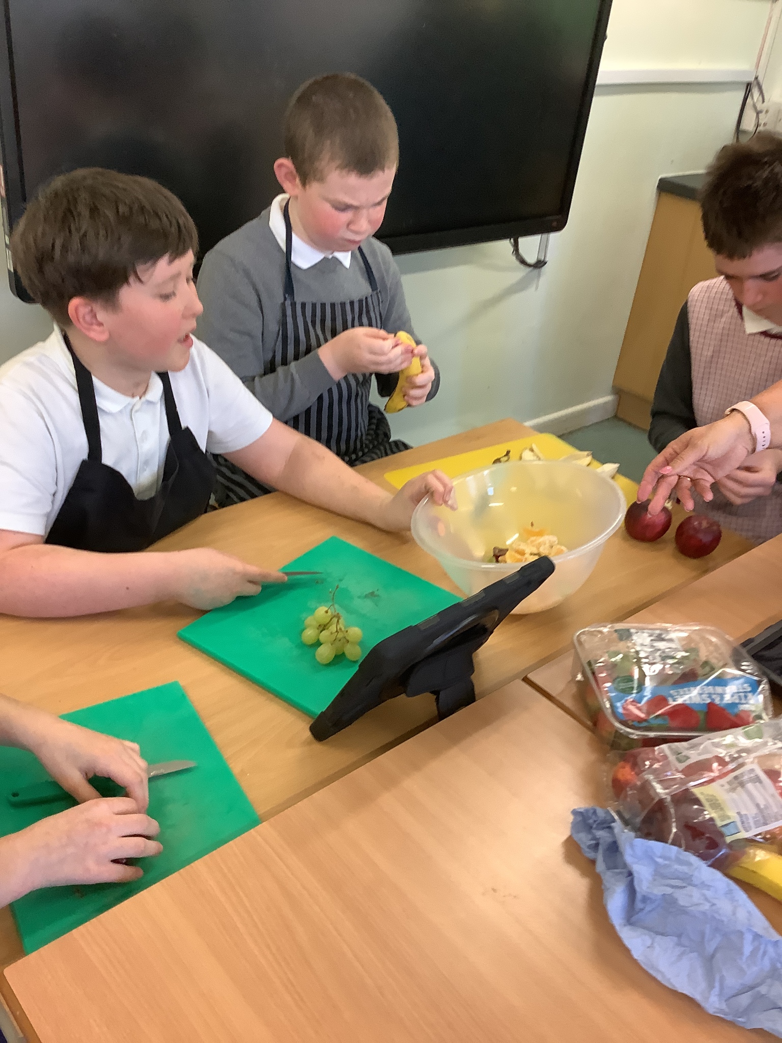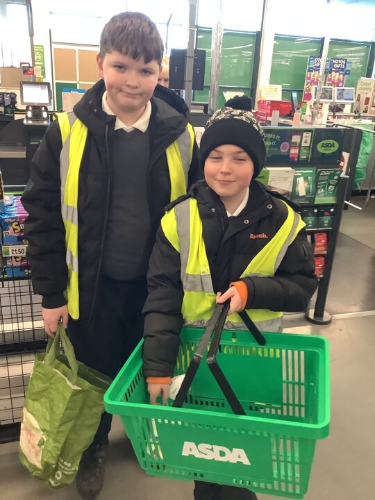 7A visited Asda to go shopping for the ingredients for our cooking lesson - We made fruit salad and Greek salad. 7A worked together preparing and making the salads, afterwards they all enjoyed eating the salads for afternoon snack.