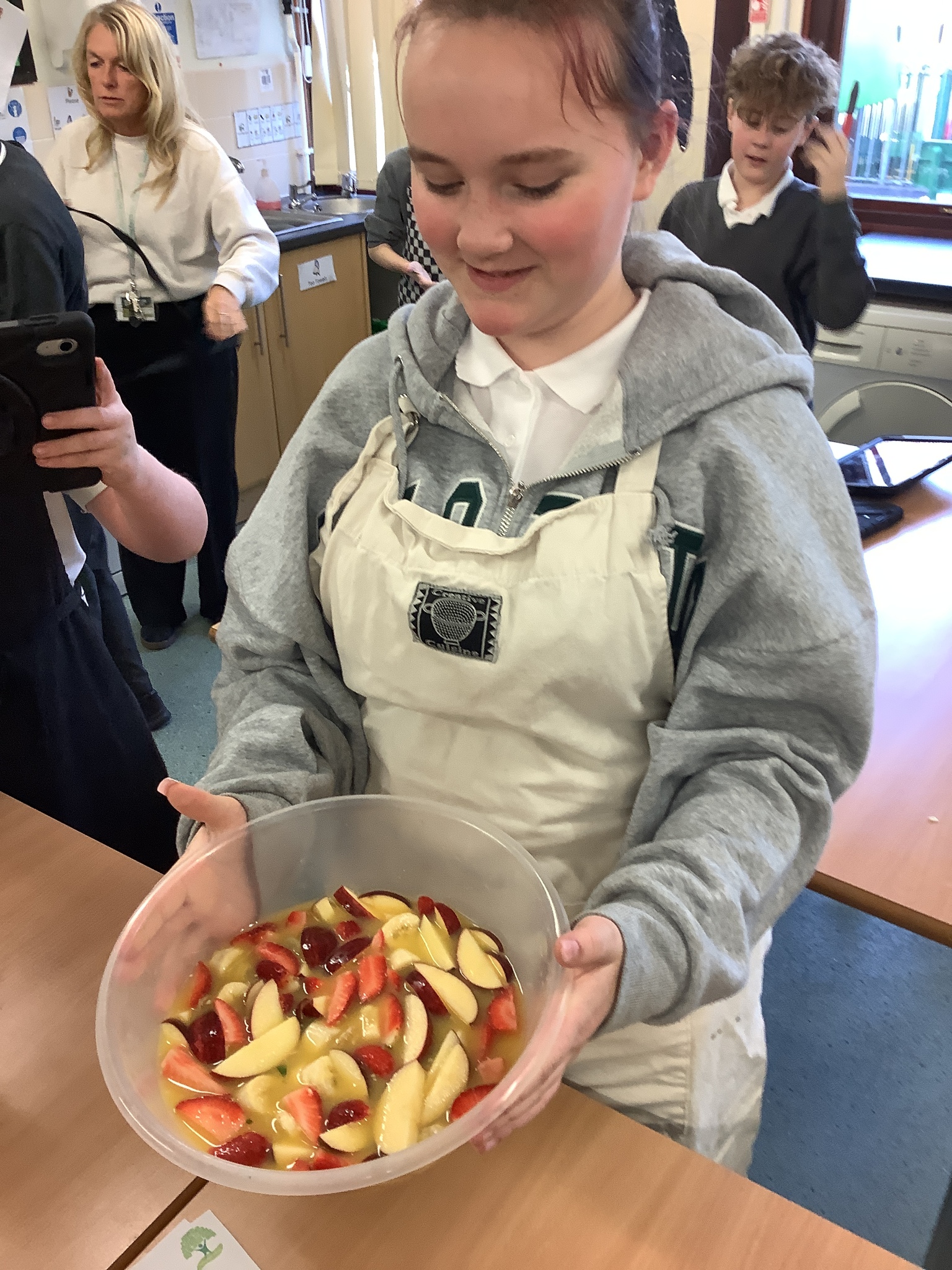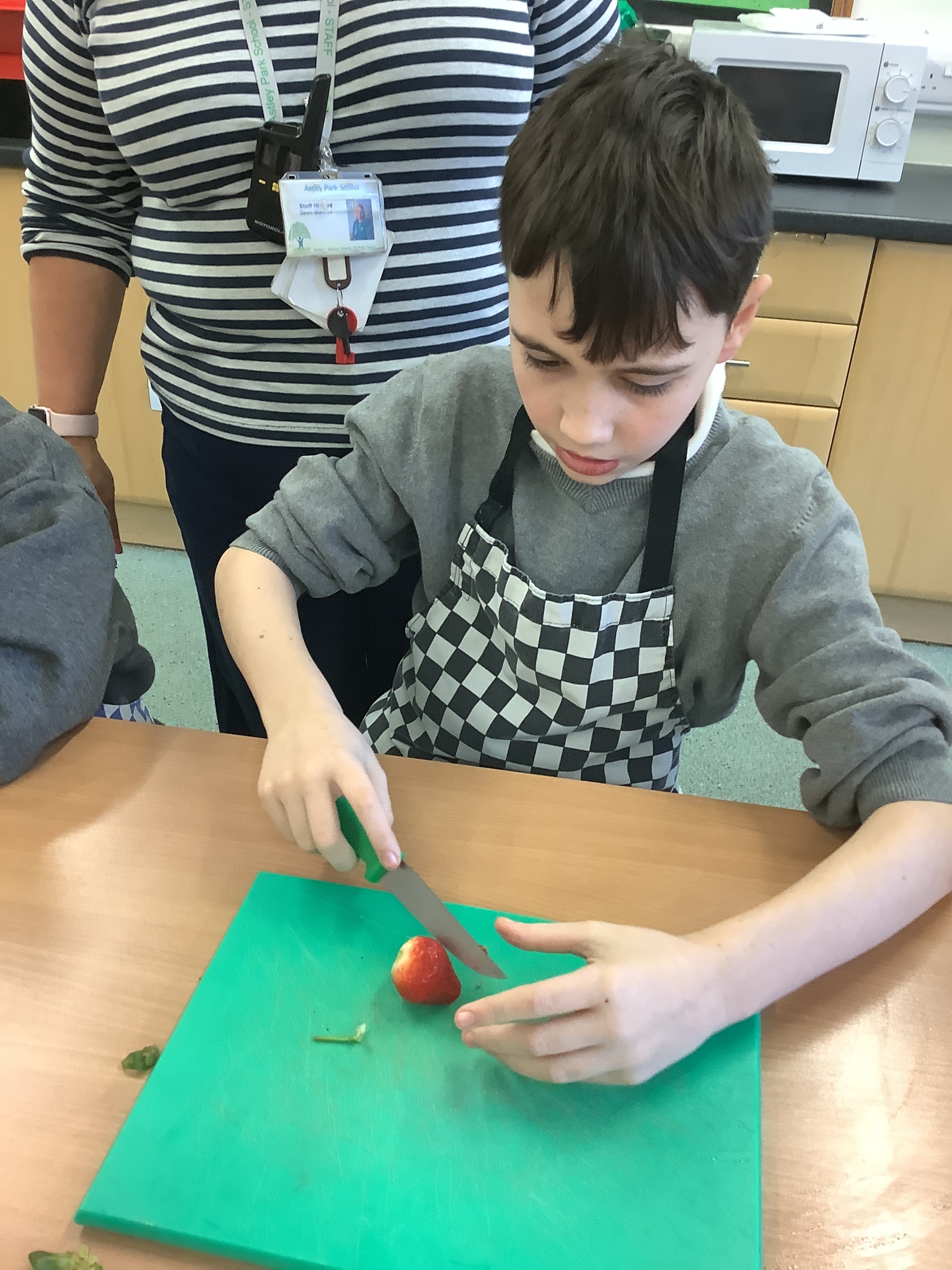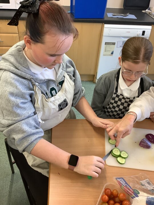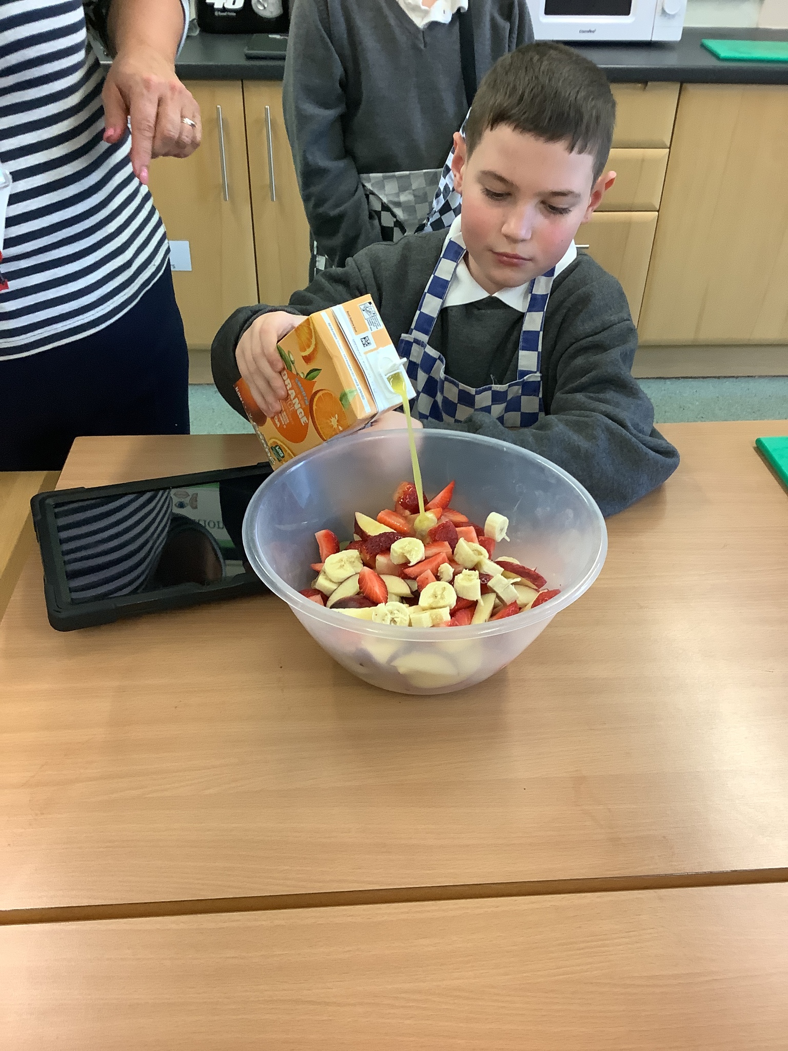 7A visited Asda to go shopping for the ingredients for our cooking lesson - We made fruit salad and Greek salad. 7A worked together preparing and making the salads, afterwards they all enjoyed eating the salads for afternoon snack.