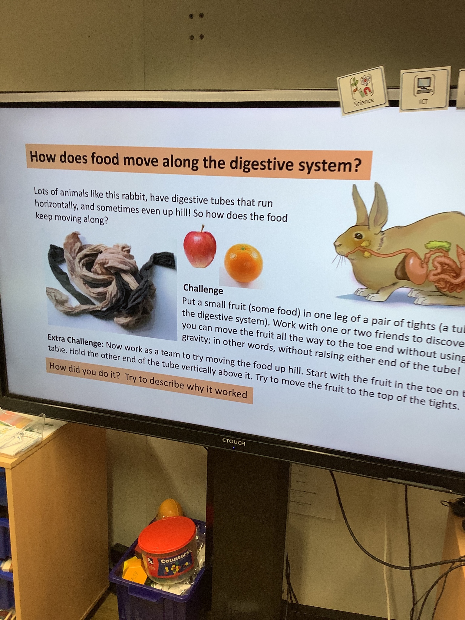 In science this week we have been learning all about the digestive system,We talked about the circle of life and the food journey. The children enjoyed investigating the journey of food through the intestines into the stomach, 7A enjoyed the practical activity to learn how the digestive system works, we had lots of fun exploring this.
