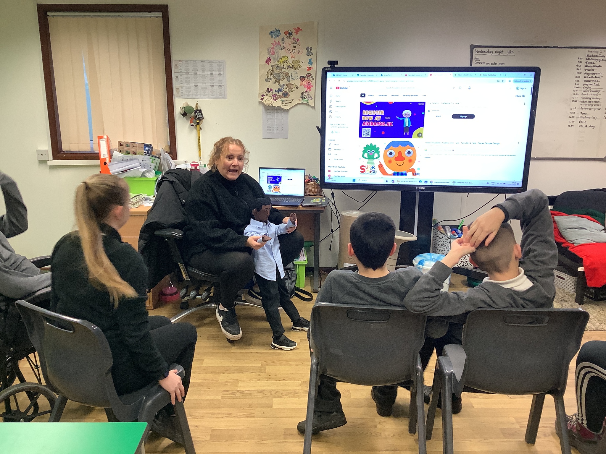 Tuesday morning was Art with Miss Troughton and we continued our work on statues as we looked at shadows, and had lots of fun with using torches to explore what shadows we could make in class. In the afternoon we did some further work on time and this time we saw how long it would take us to walk around the track, hop around the track and walk backwards around the track. We then had a PSHE lesson, and continued our work on body parts.