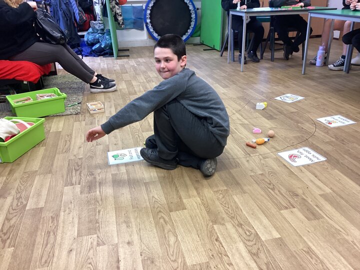 We all each took turns in choosing an item and found the right place for the item chosen in the circle. Some were quite easy to figure out and some quite tricky which required some help from a staff member. Everyone tried super hard.