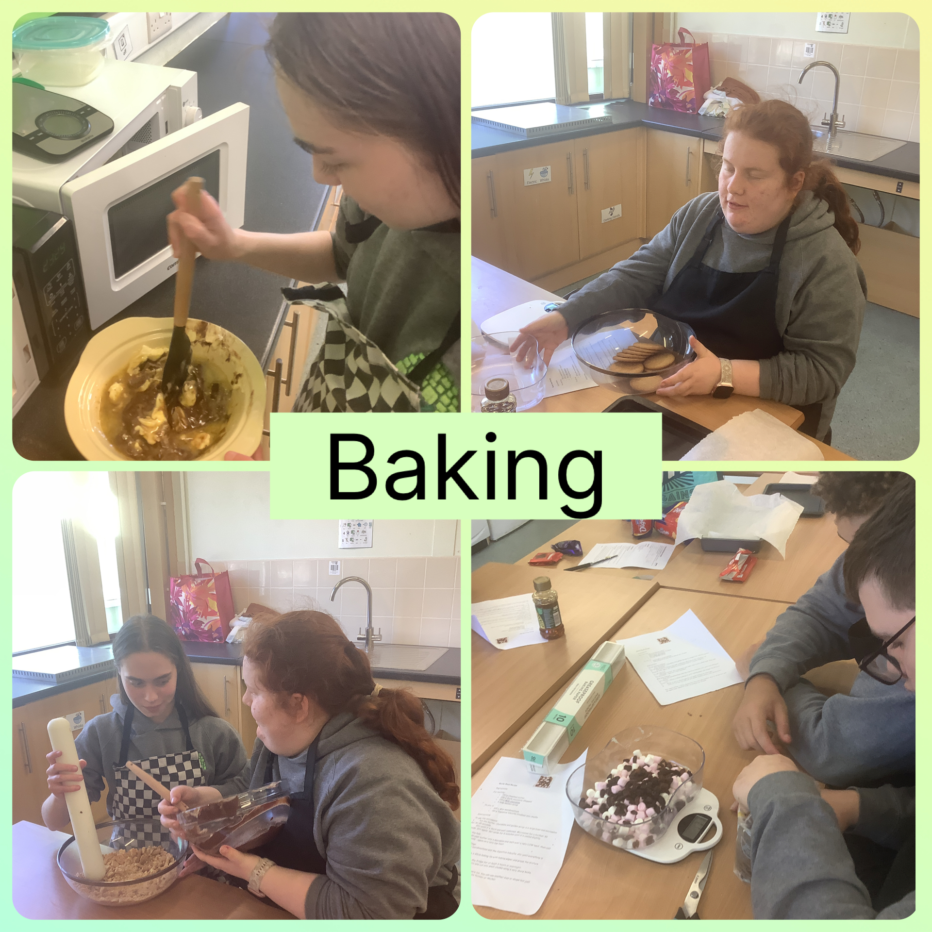 On Tuesday, in the morning, we continued working on mass and capacity in maths. After maths we had English, where we looked at writing our CVs. We spoke about what needs to be included in our CVs and then started writing their CVs, everyone worked really hard to create their CV. In the afternoon, half of us did baking, we made rocky road to sell to our staff to raise money for our prom. The other half of us made a start on weeding the area outside our classroom.