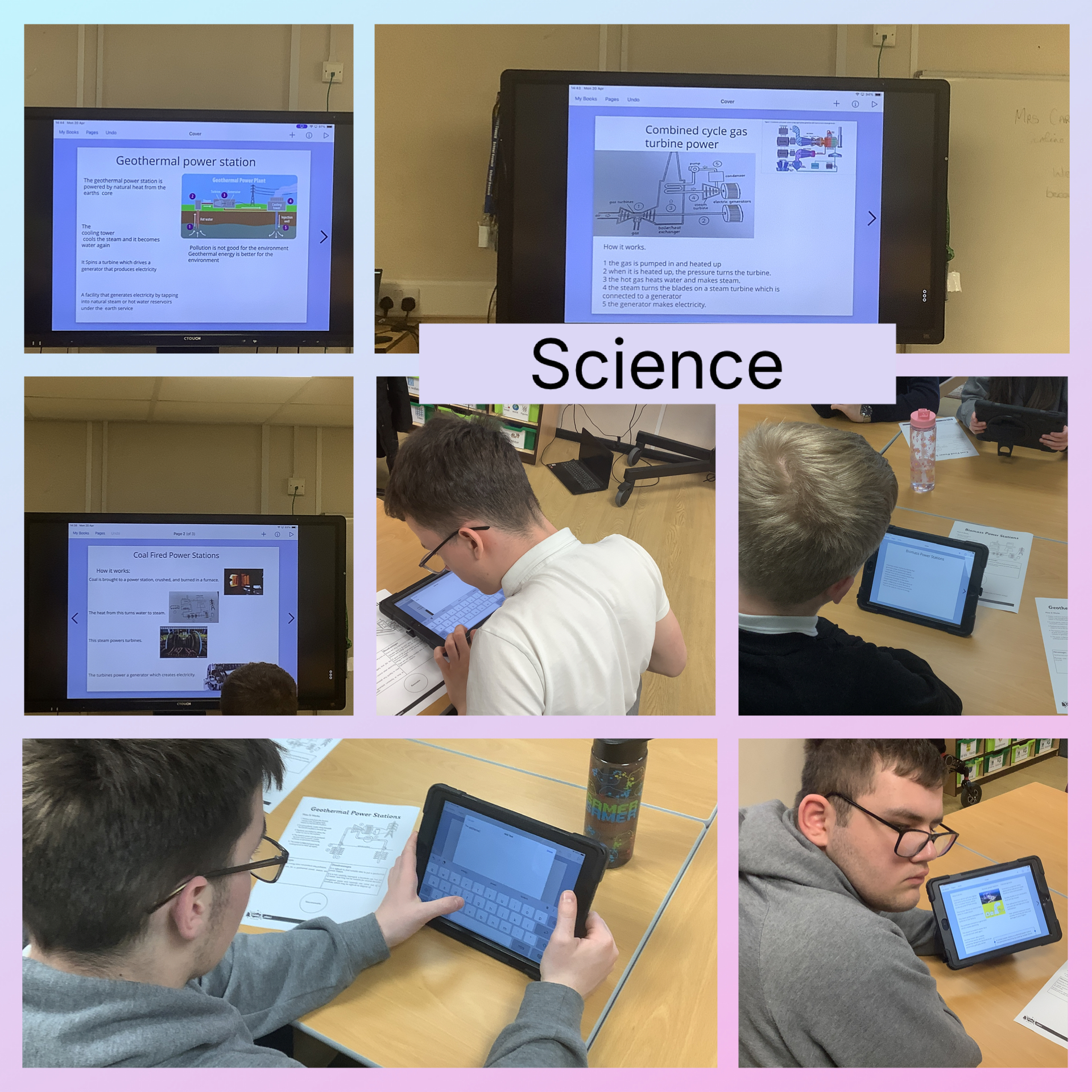 This afternoon we did science, we looked at where are power comes from. We looked at renewable energy and non renewable energy. We looked at different types of power stations and we looked at the different types of power stations and looked at information sheets and made a document on nook creator to explain what our power station does.