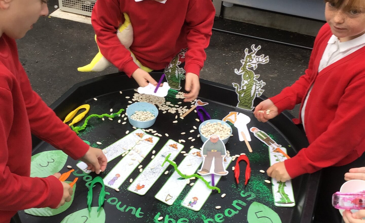 In maths we have looked at bigger and smaller, looking around class for things that are bigger and smaller than our giants foot! We also looked at some ‘more than’ and ‘less than’ questions.