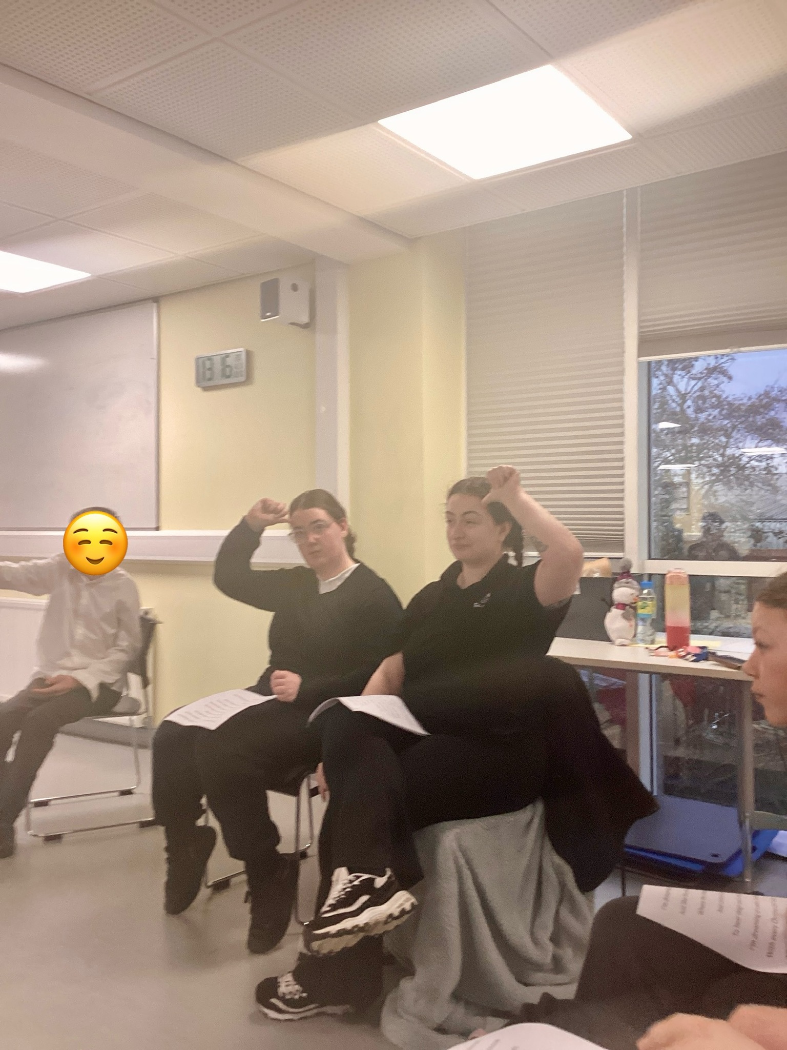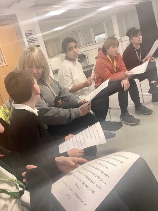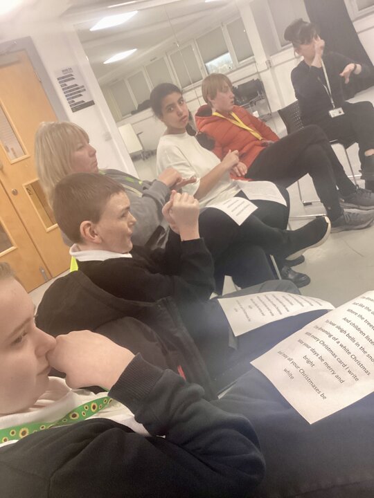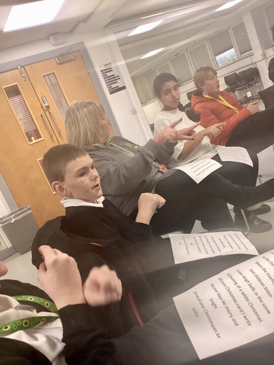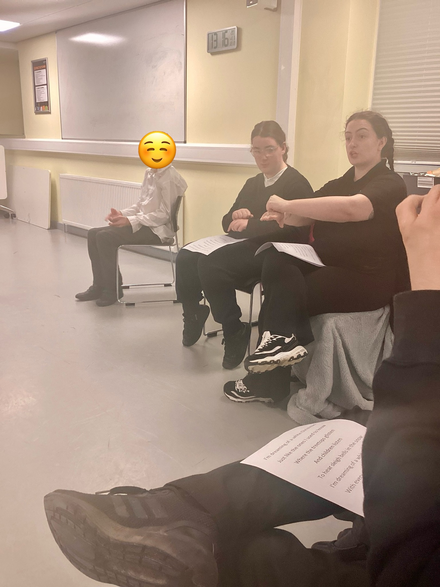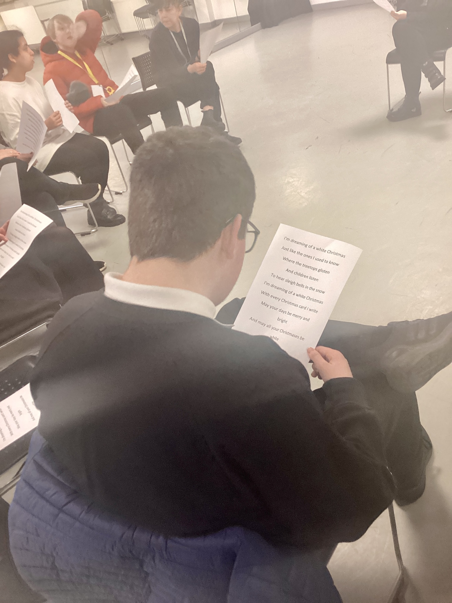 They learnt the words of A White Christmas, and then introduced Makaton signs alongside their singing! After this they spent time exploring drama techniques such as showing emotions without saying anything. The learners did great at guessing what emotion each of their peers was showing! Then they moved on to some dance moves! They completed a warm up and then danced along to another Christmas song.