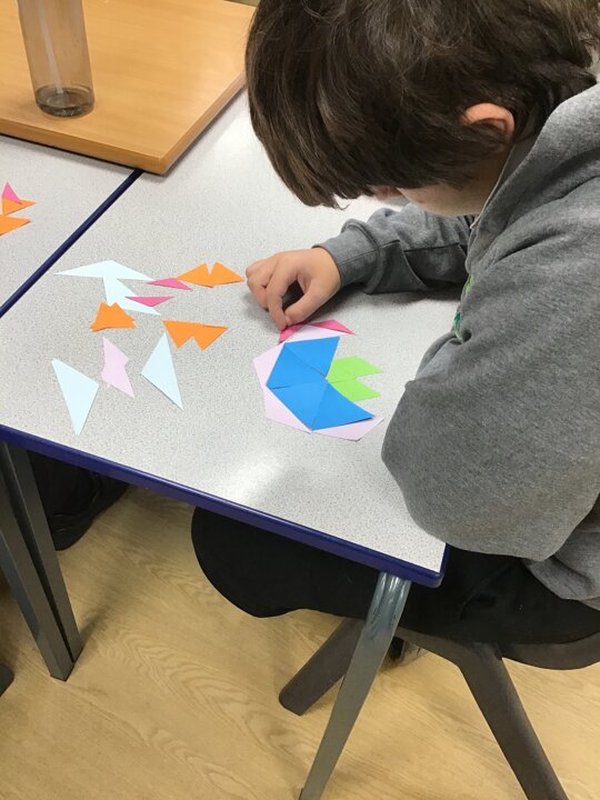Wednesday morning maths is our problem solving lesson and this week we focused on pattern making. We used a variety of triangles and thought about what repeating patterns we could make. Some of us even make pictures out of the triangles. We also took part in an unplanned fire drill, where we all behaved brilliantly! We then continued with our dictionary work in English. In the afternoon we continued with online safety. We created our own online profiles and then shared them with the class, judging them from 1-10 on how safe they would keep us online. We did a really good job and scored lots of 10s, showing that we understand what personal information we should and shouldn't share online! We then had a go at creating a profile that we would rate as a 1 - it was interesting to see the difference in the profiles we made!