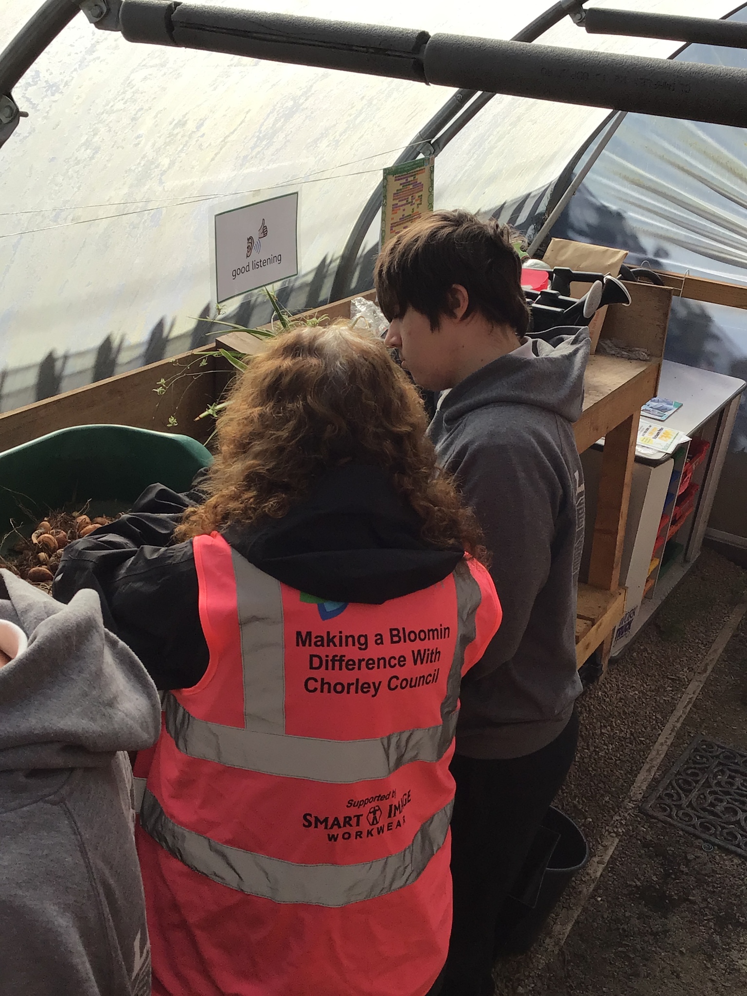 Thankfully it was lovely and sunny on Thursday morning, as we were back at Chorley in Bloom. Everyone worked hard on the job they were given - some of us were planting lillies, some of us were planting bluebells, some of us were clearing areas and some of us were creating mulch from dying leaves. In the afternoon, some of us went shopping, whilst the rest of us completed some ASDAN work.