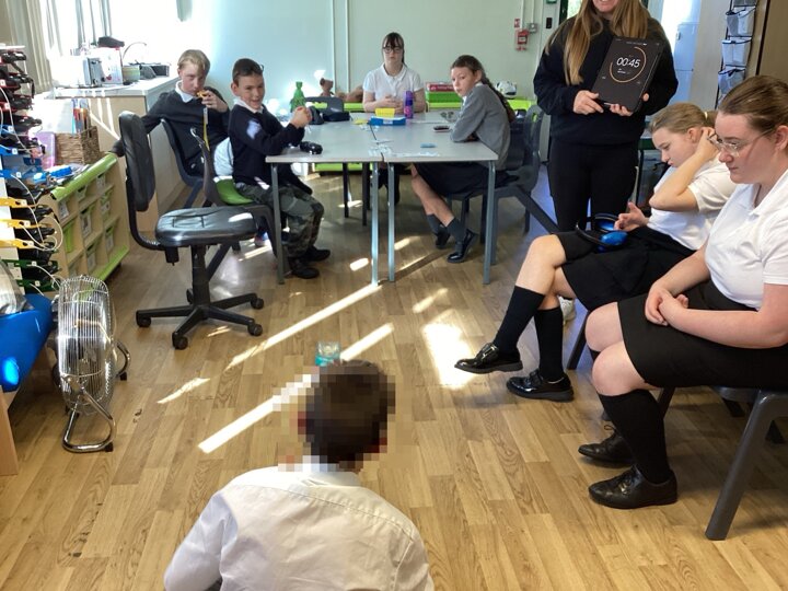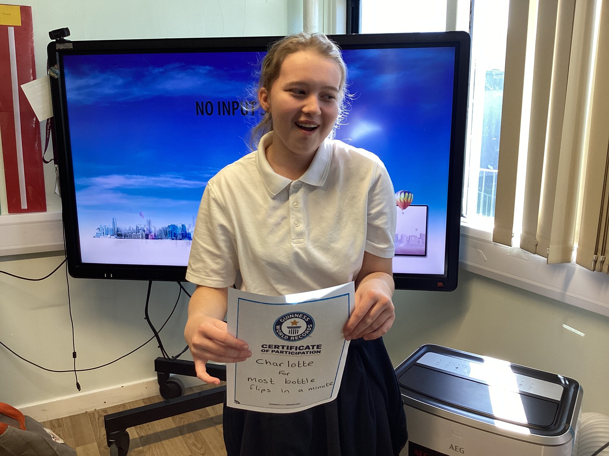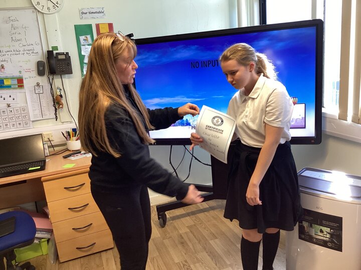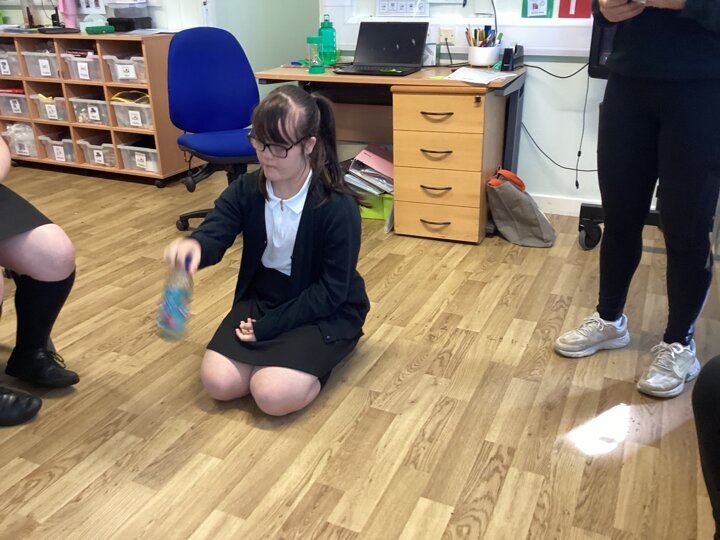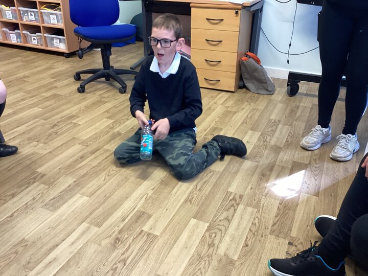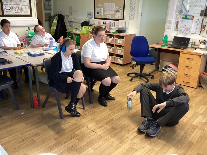 In our English lesson today we looked at our ‘Picture News’ where we learned about world records, because this year it is the 70th birthday of the Guinness Book of World Records. Key stage 4 are soon going to attempt to break a record by trying to complete the most amount of Makaton signs in 1 minute. We decided to set our record in class for the most bottles flipped in a minute. Charlotte was the winner and received a certificate!
