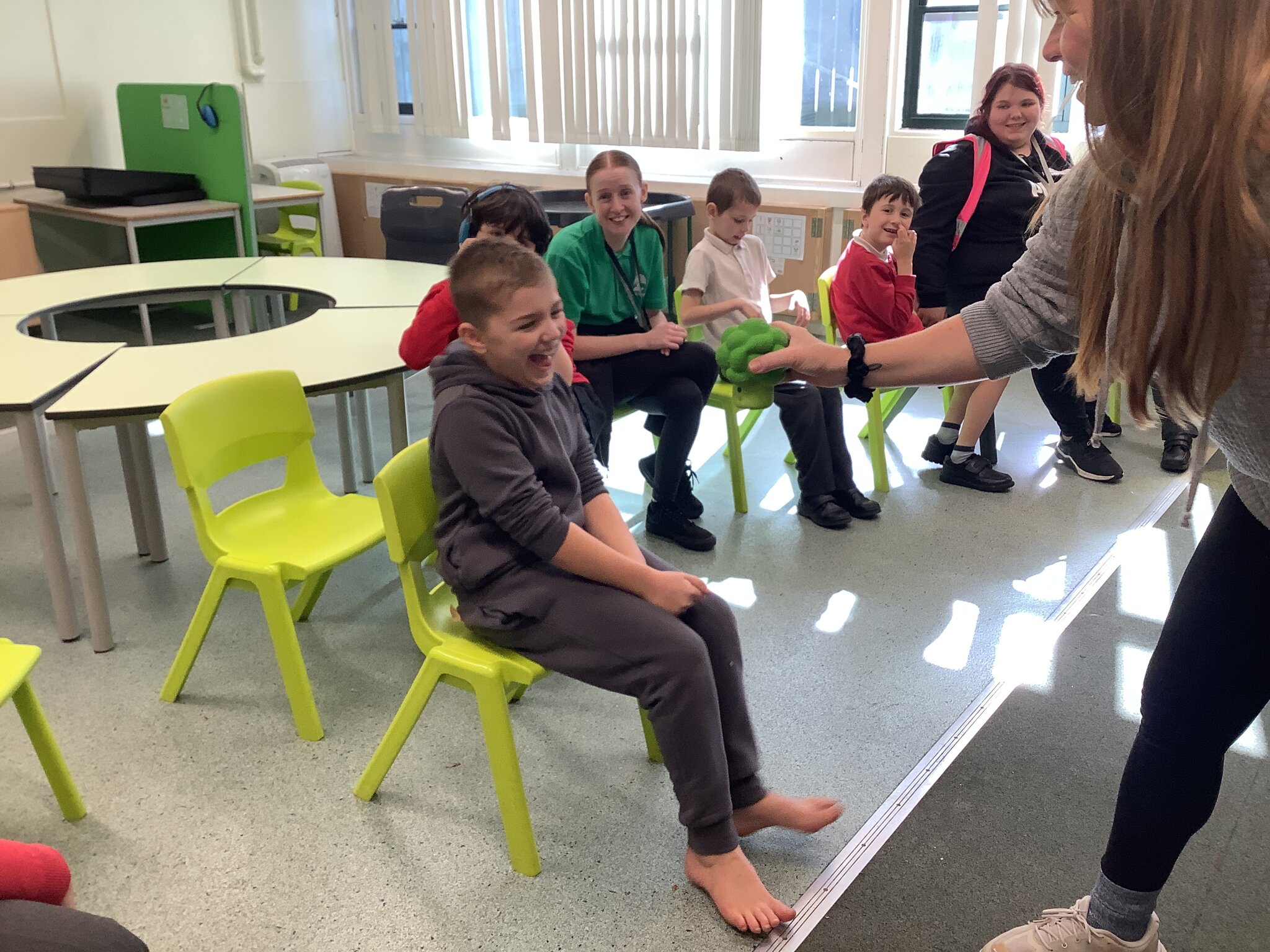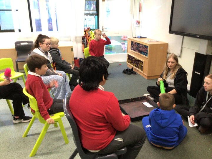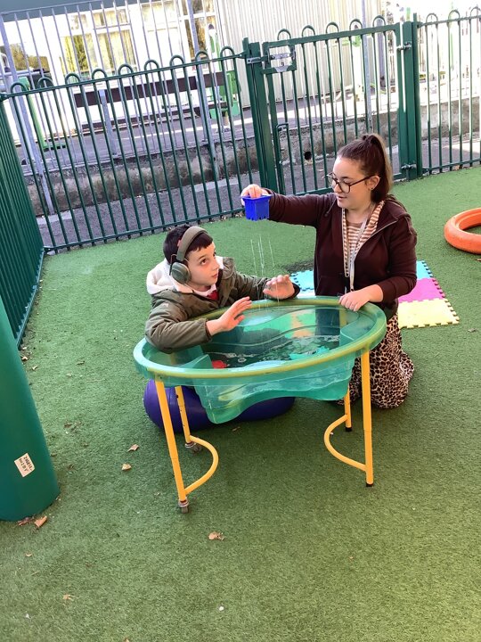 This week we have been learning our rhymes for the rhyme bag and joining in singing along, such as “10 green bottles”, “10 fat sausages” and “5 little speckled frogs”. We’ve been joining in with Attention Autism, including what’s in the box and making some beautiful flowers, we have been enjoying intensive interaction in the rainbow room and sensory room and making the most of the dry weather on the circuits.