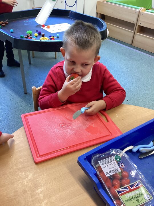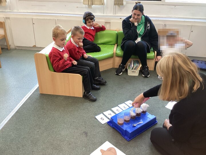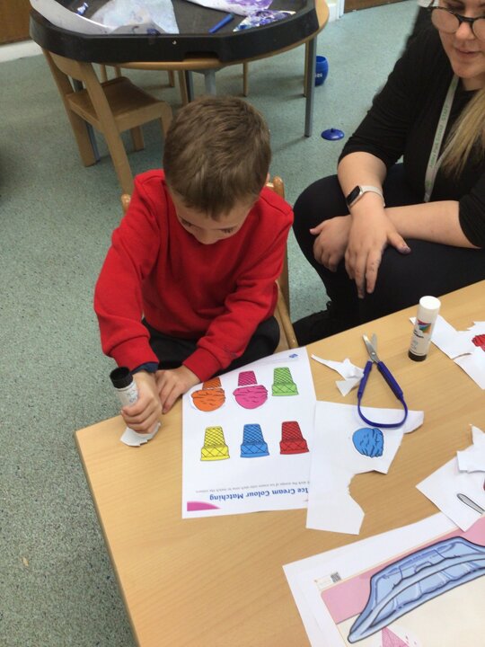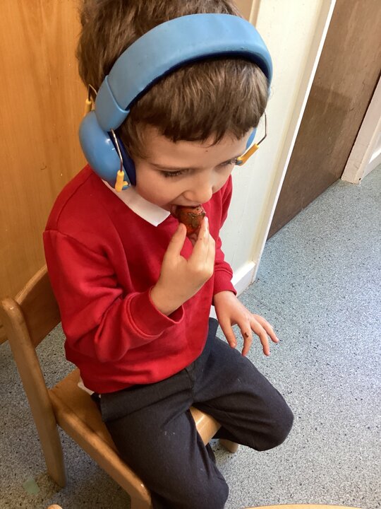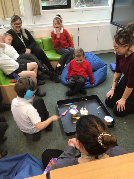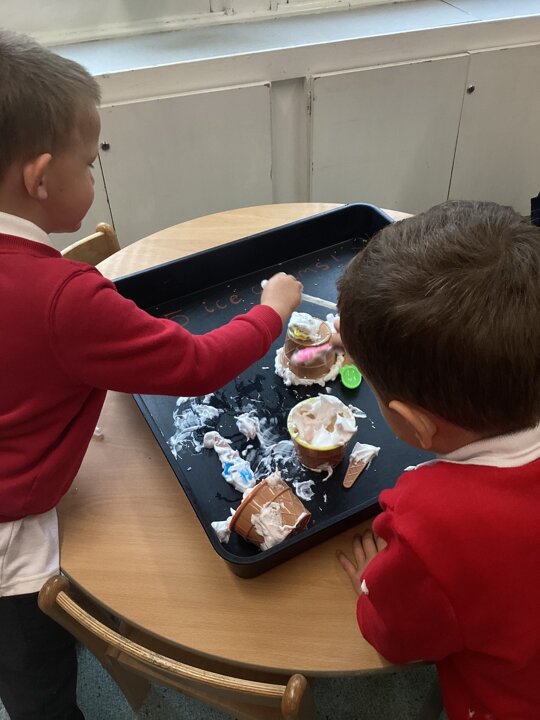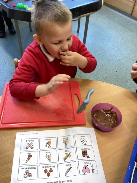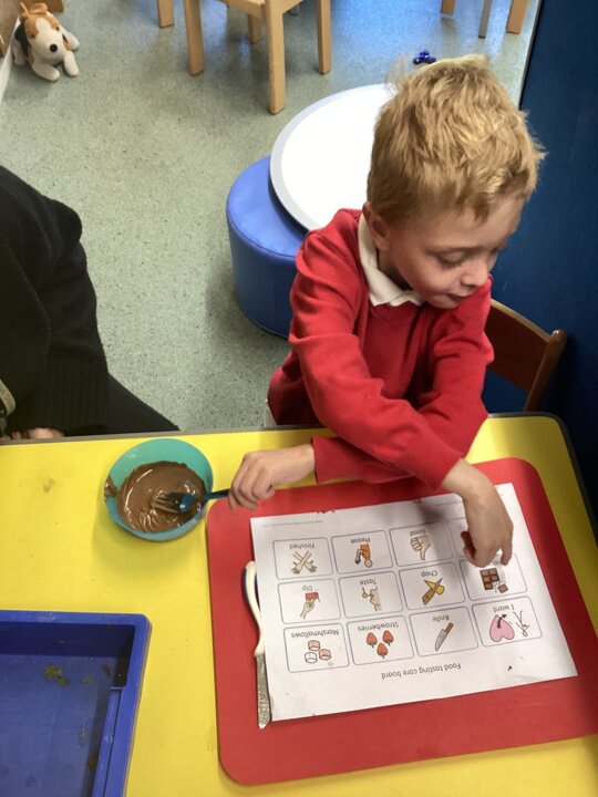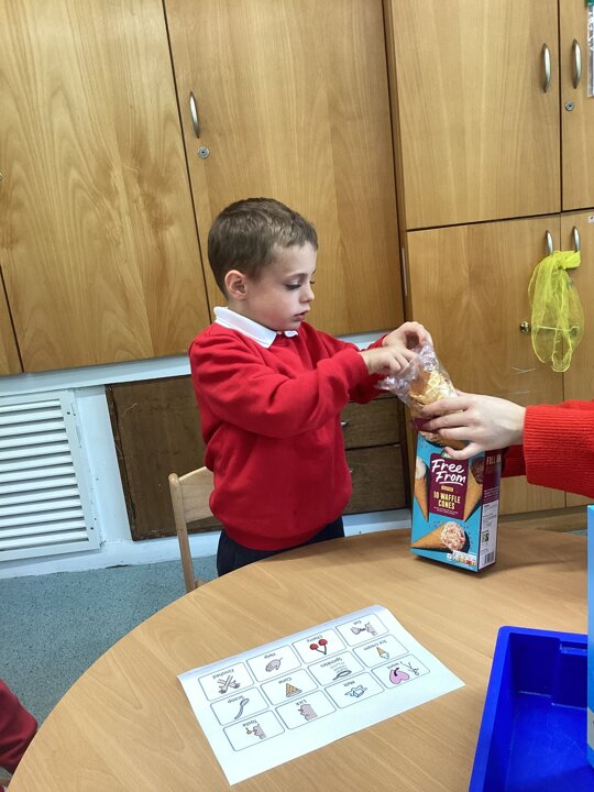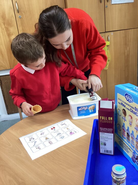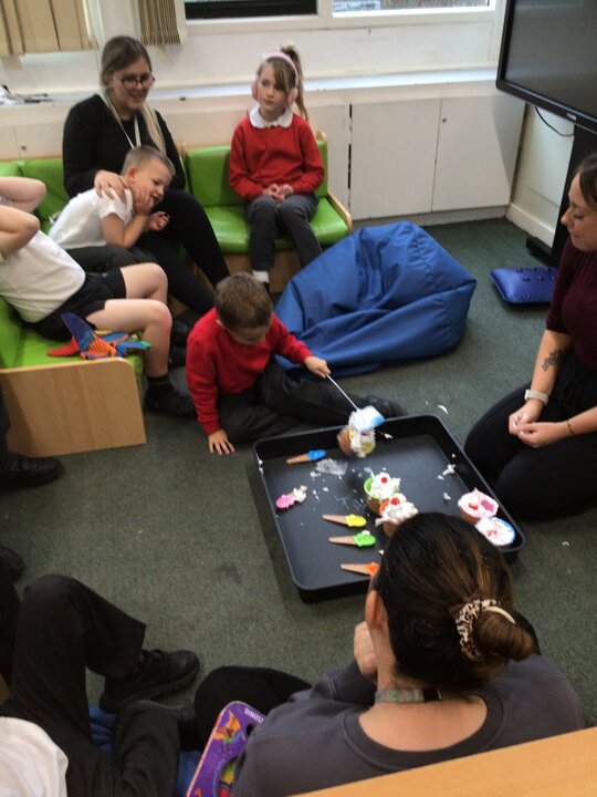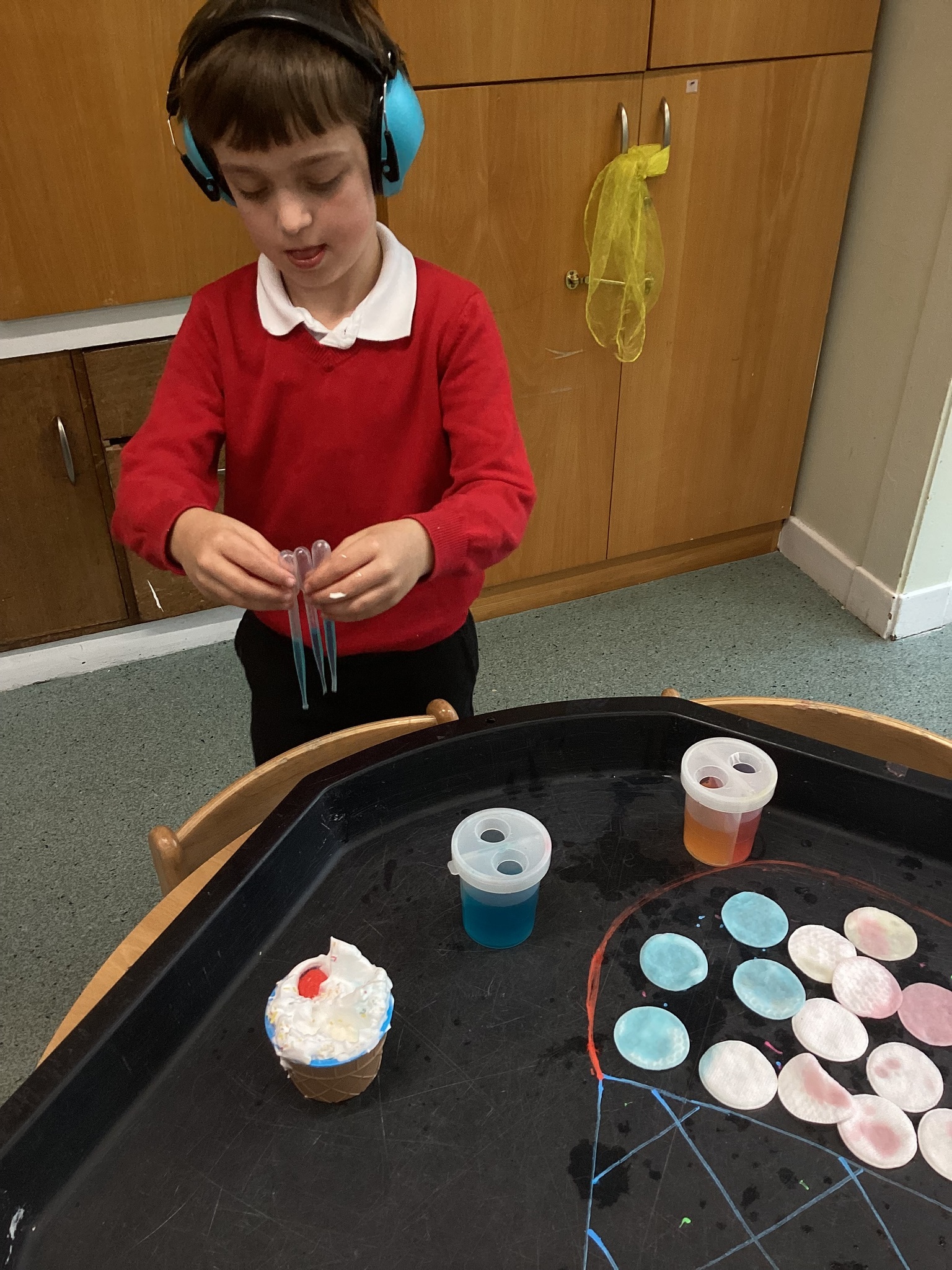 We enjoyed exploring lemons by having a taste, smell and feel. We also enjoyed painting with our hands, feeling the shaving foam and making a colourful ice cream with water colours! We did amazing turn taking in splatting ice creams and hot chocolates and had a turn at making own real ice creams! We used the core boards to request and loved having a taste.