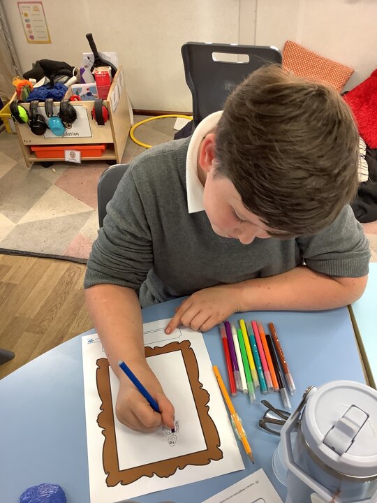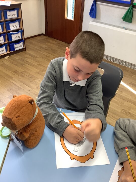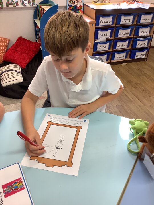 In English we drew pictures of ourselves and the qualities we see in ourselves, we labelled these and shared them with our class.