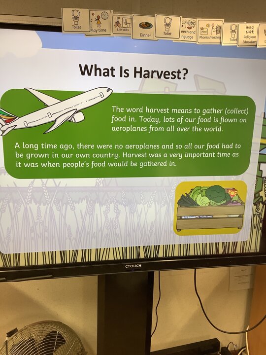 We have been spending some time learning about Harvest this week and discussing our local farmers. We also talked about making a class scarecrow for the scarecrow festival in school next week.