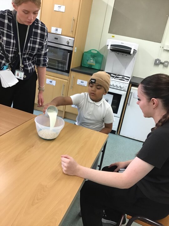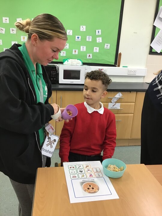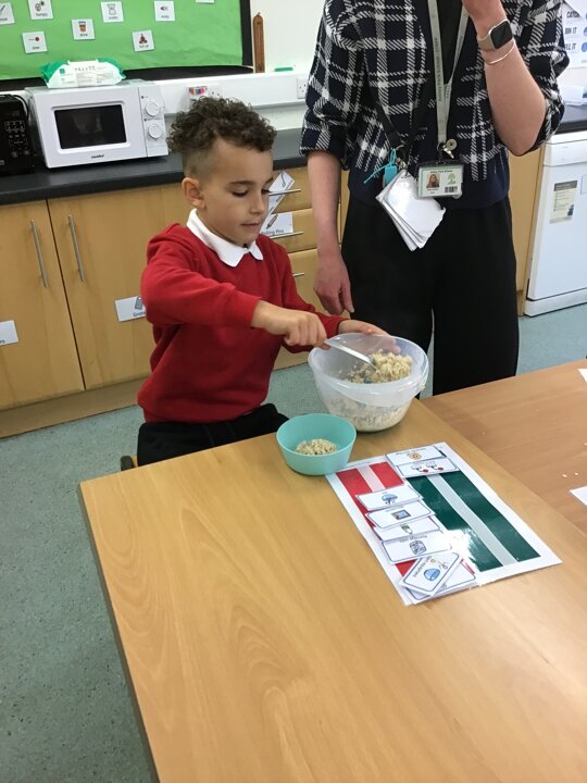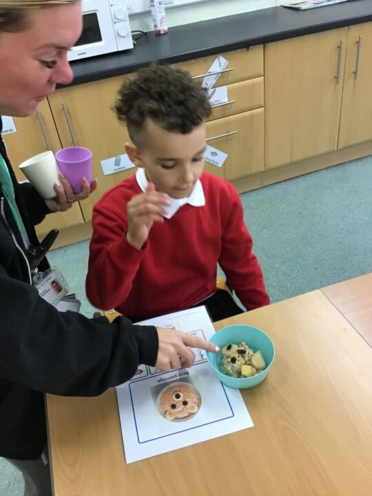 This week in chestnut class, we have continued learning about the story of Goldilocks and the three bears. We have made our own porridge in food tech and even decorated it to look like a bear face using different fruit. We have shown amazing turn taking and waiting when following the steps to make our porridge bowls.