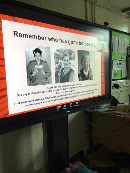 She also told us about some famous Black people like, Rosa Parks, a Black woman who dared to say “NO!” when she was asked to give up her seat on the bus. And Hamza Yassin who is known for being a Park Ranger on CBeebies and a Strictly Come Dancing finalist in 2022 and how he has made being dyslexic his Superpower, remaining resilient and ambitious and showing great kindness and empathy towards others, always ready to help someone who may be struggling.
