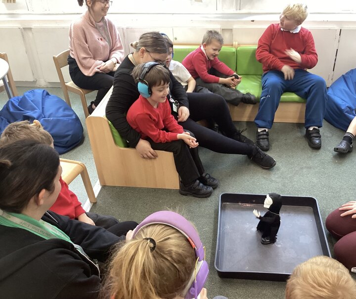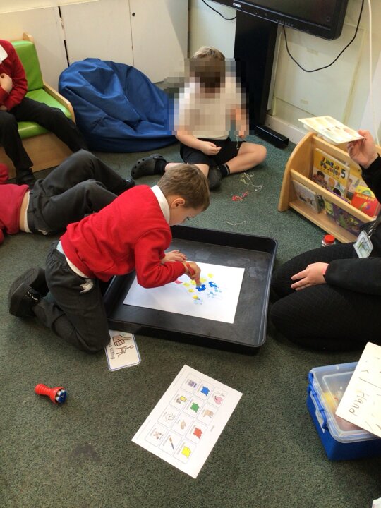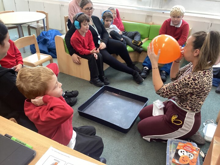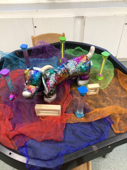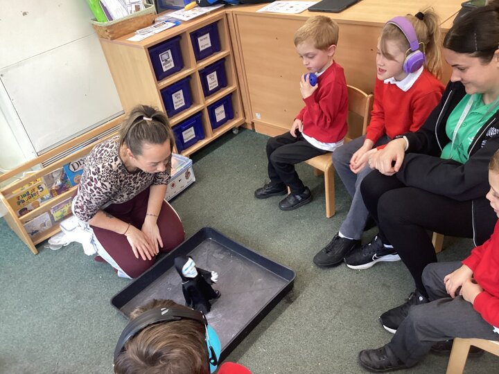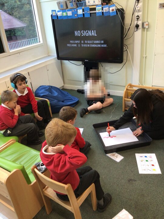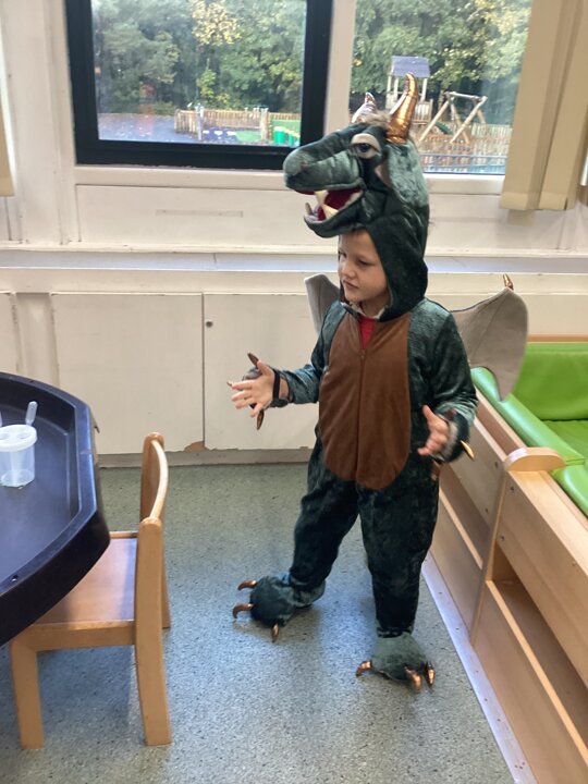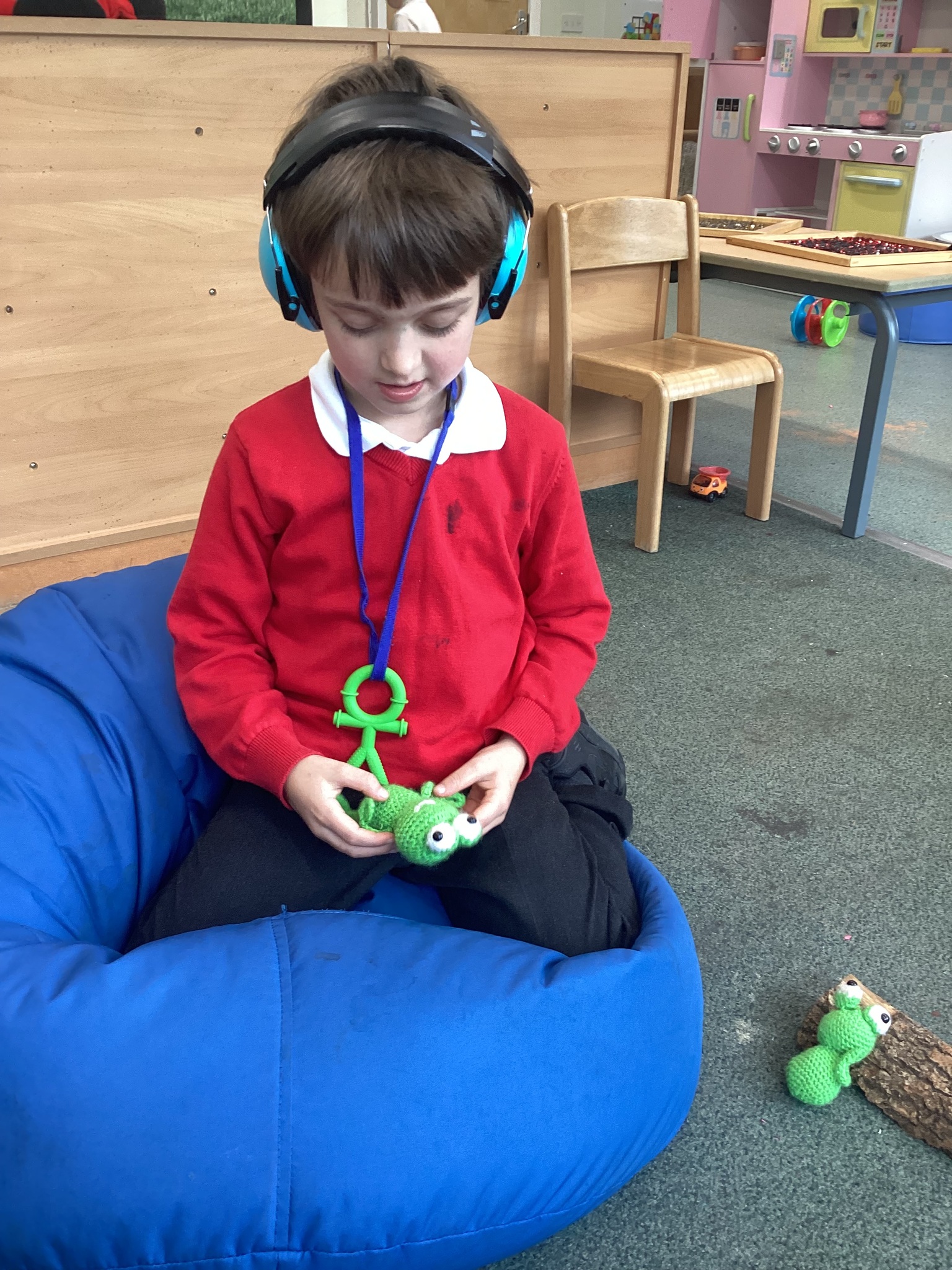 During the rest of the week, we loved exploring Halloween. We all had a turn at dressing up and practised our ‘scary’ faces. We also watched Miss Melling engage us in a fun and exciting attention autism. We watched the Halloween toys, a pumpkin flour shake and then took turns to hammer pegs in the pumpkin.