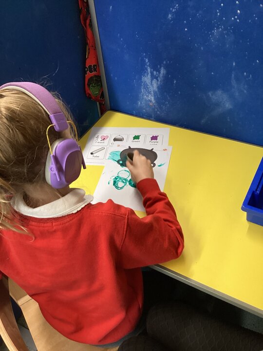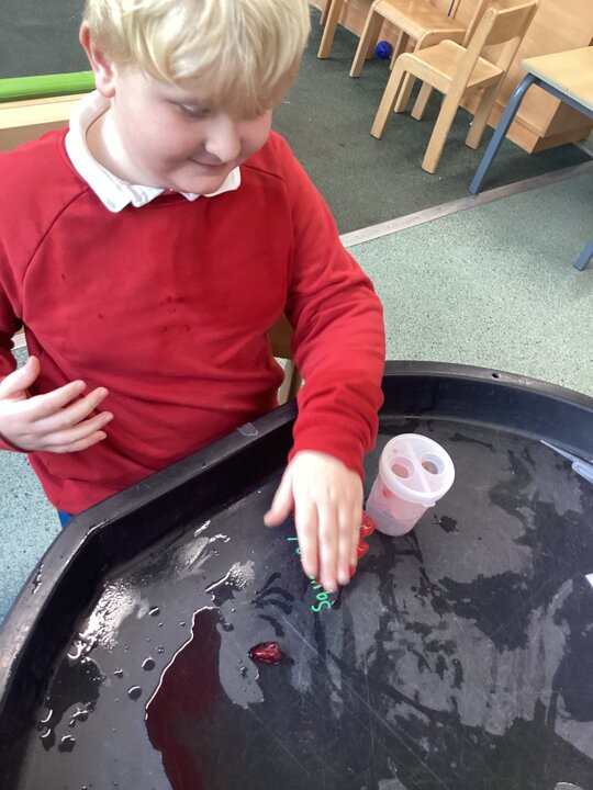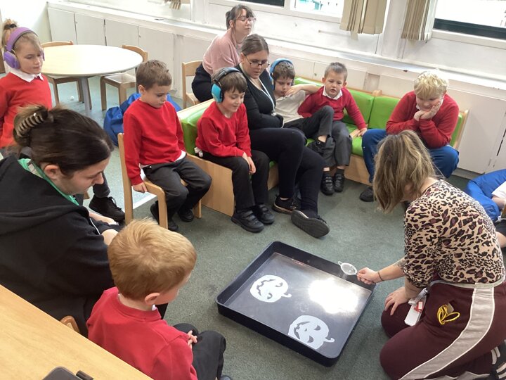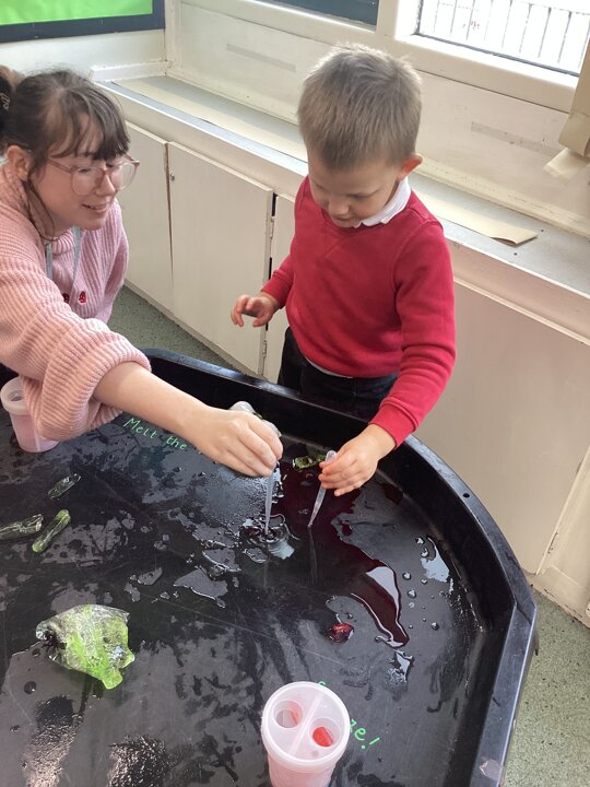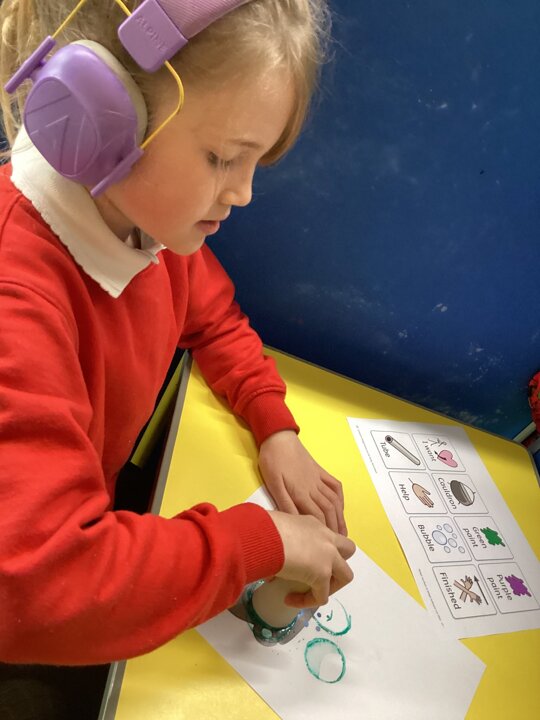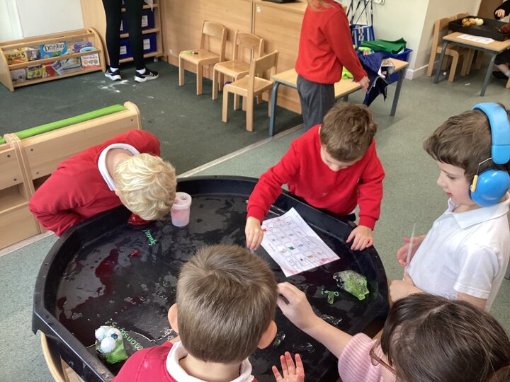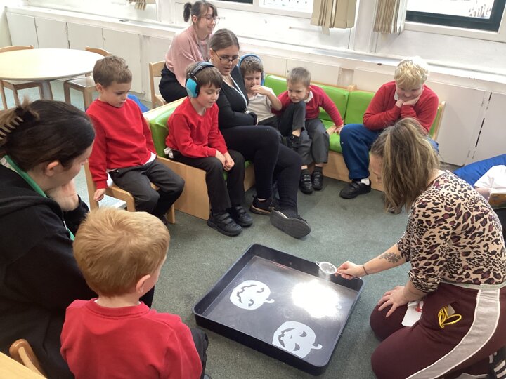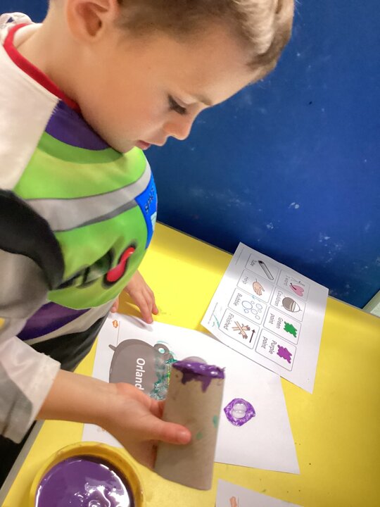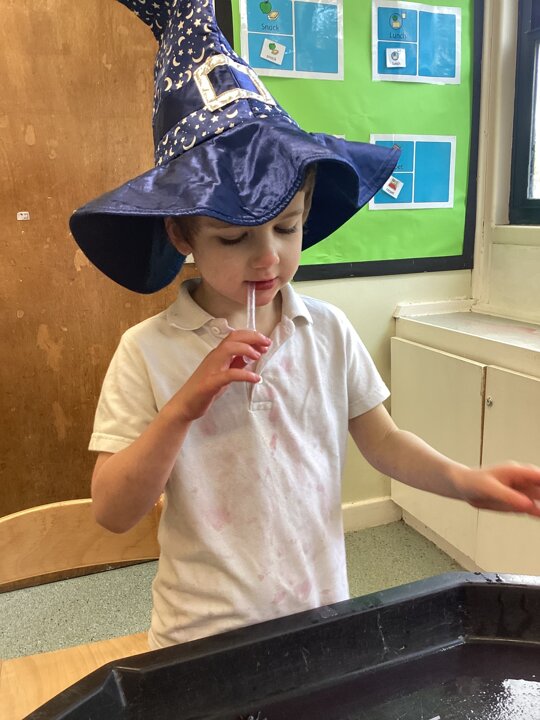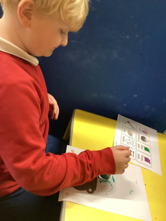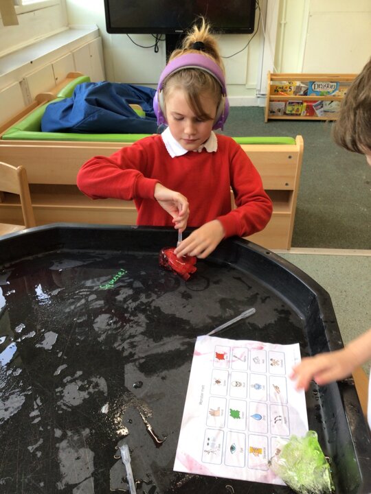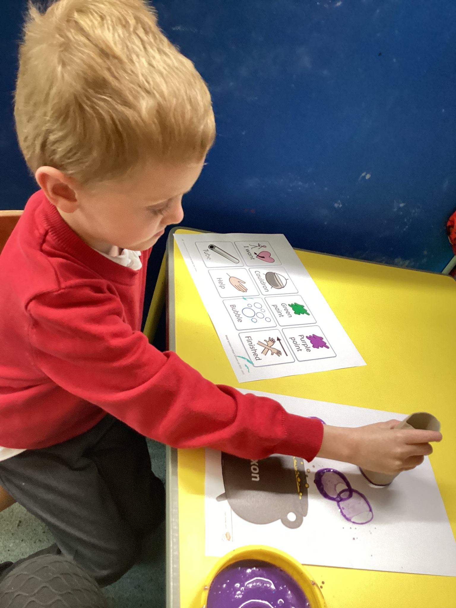 During adult led, we found spooky items in ice, melted the monsters with water and used bubble paint to make witches cauldrons.