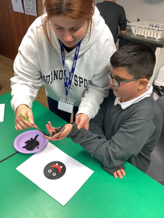 On Monday we had our weekly music lesson with Miss Troughton before doing some Halloween Arts and Crafts in the afternoon, which all the children enjoyed as did some of the teachers as you’ll see in the photos!