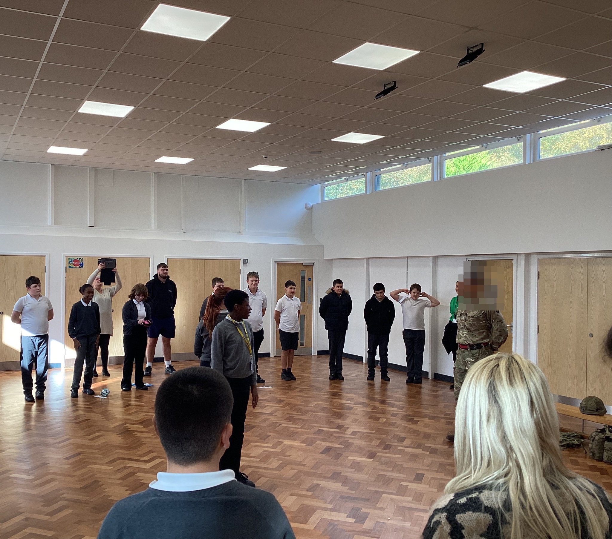 He had everyone working together to get in a horse shoe shape so that everyone could see each other. The learners had to work as a team to direct each other, teachers weren’t allowed to help. Everyone worked together and were able to get into position.