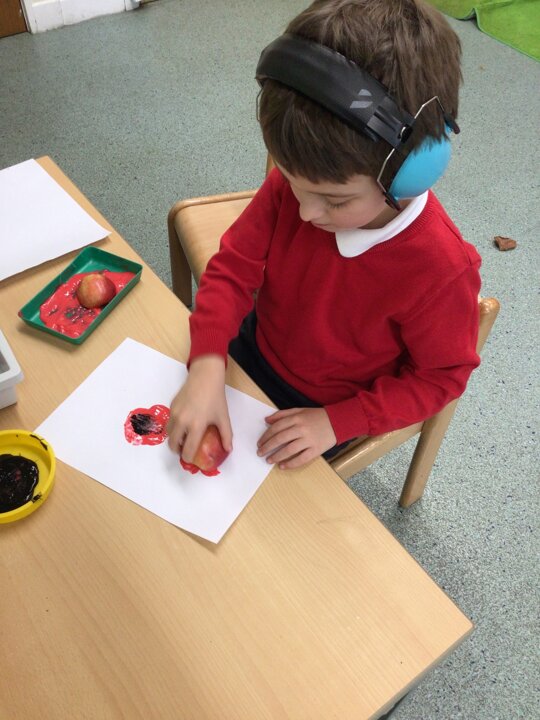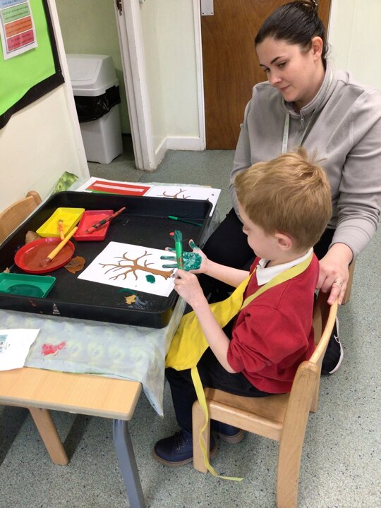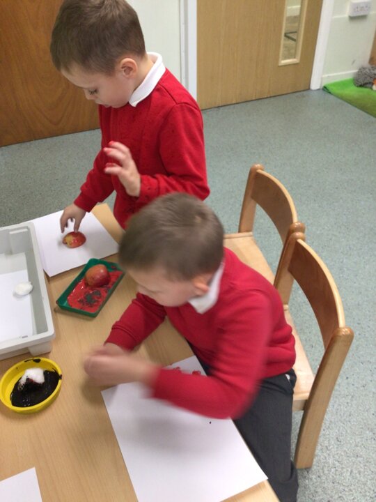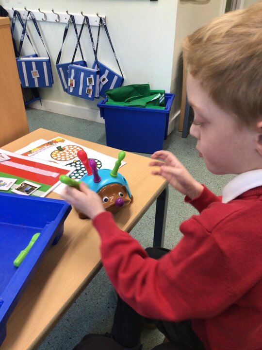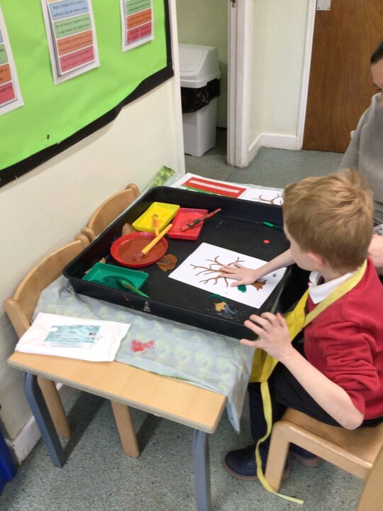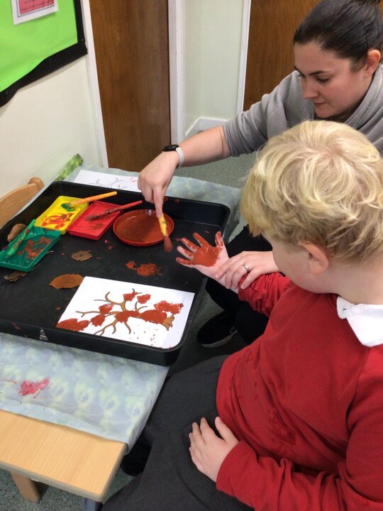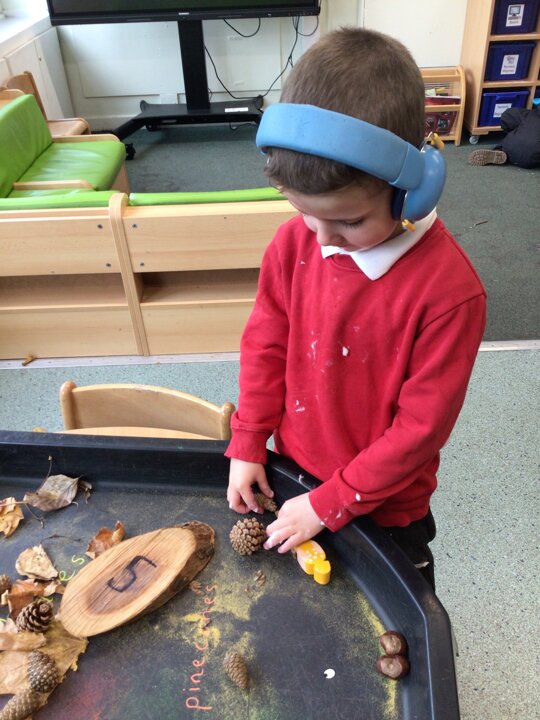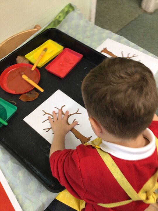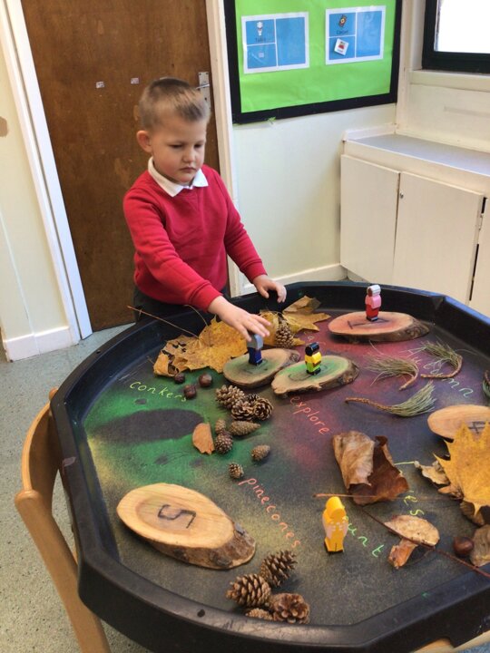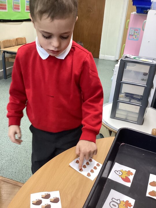 We continued to look at autumn by rolling conkers, leaf printing, made hand prints on a tree and made hedgehogs with natural materials. We also did amazing counting and matching the autumn pictures.
