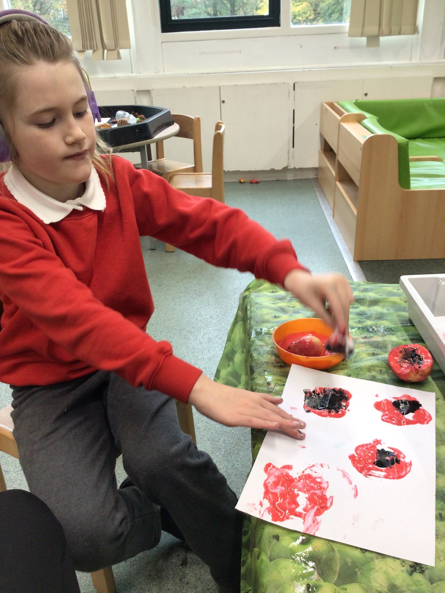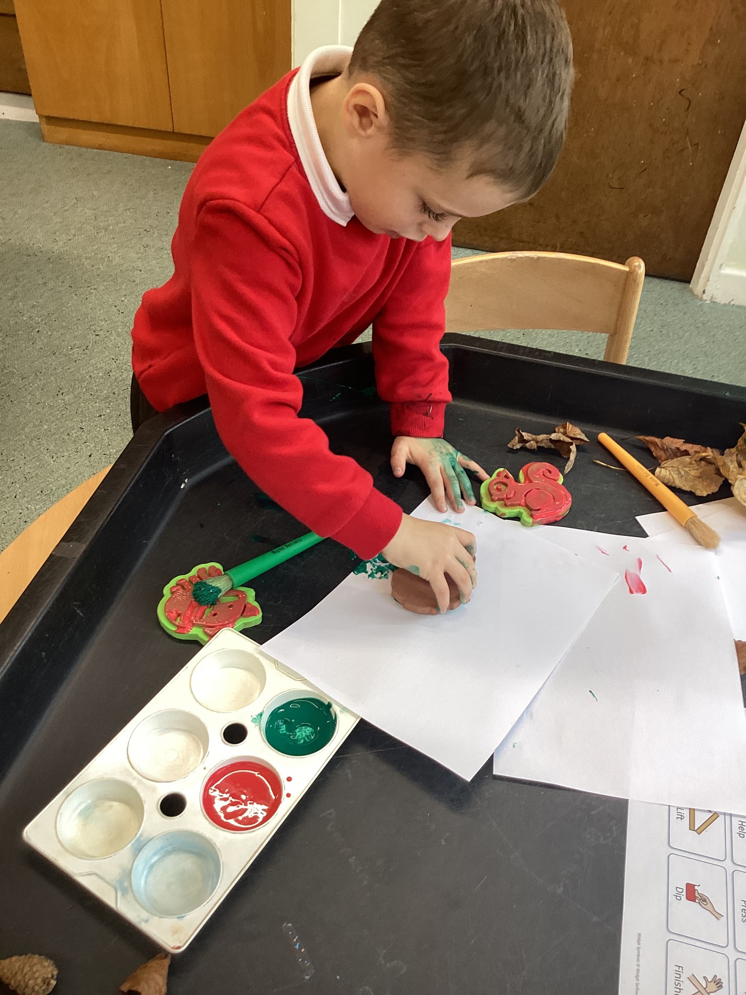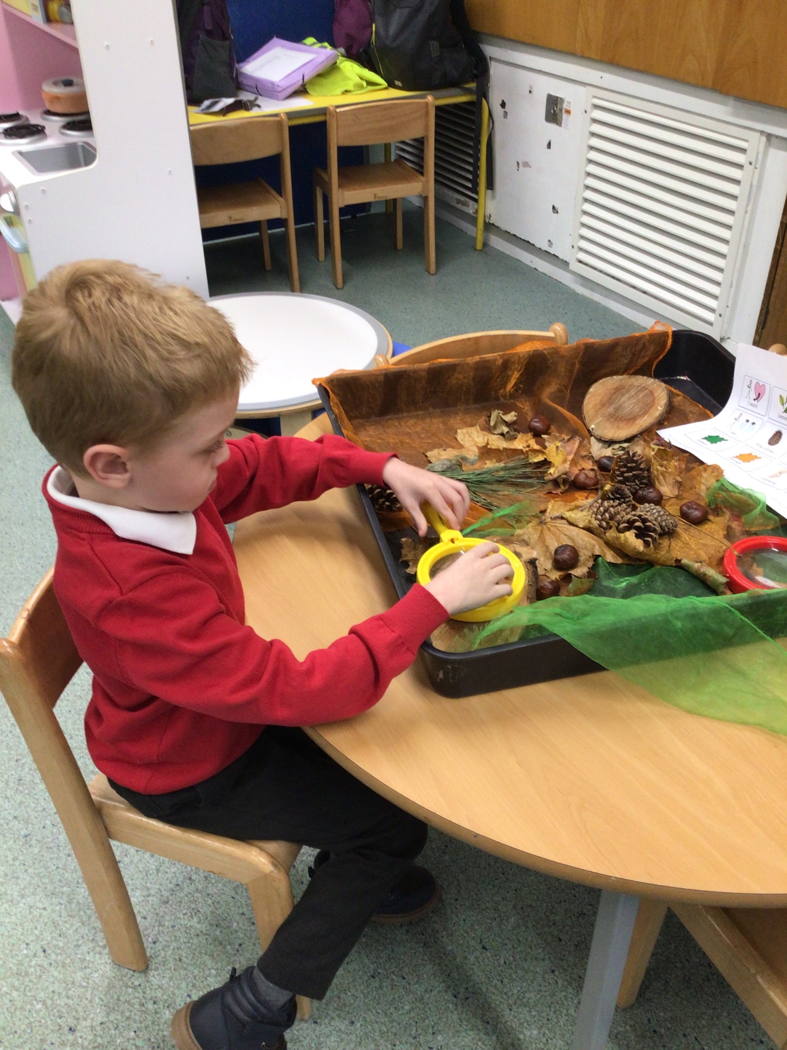 We continued to look at autumn by rolling conkers, leaf printing, made hand prints on a tree and made hedgehogs with natural materials. We also did amazing counting and matching the autumn pictures.