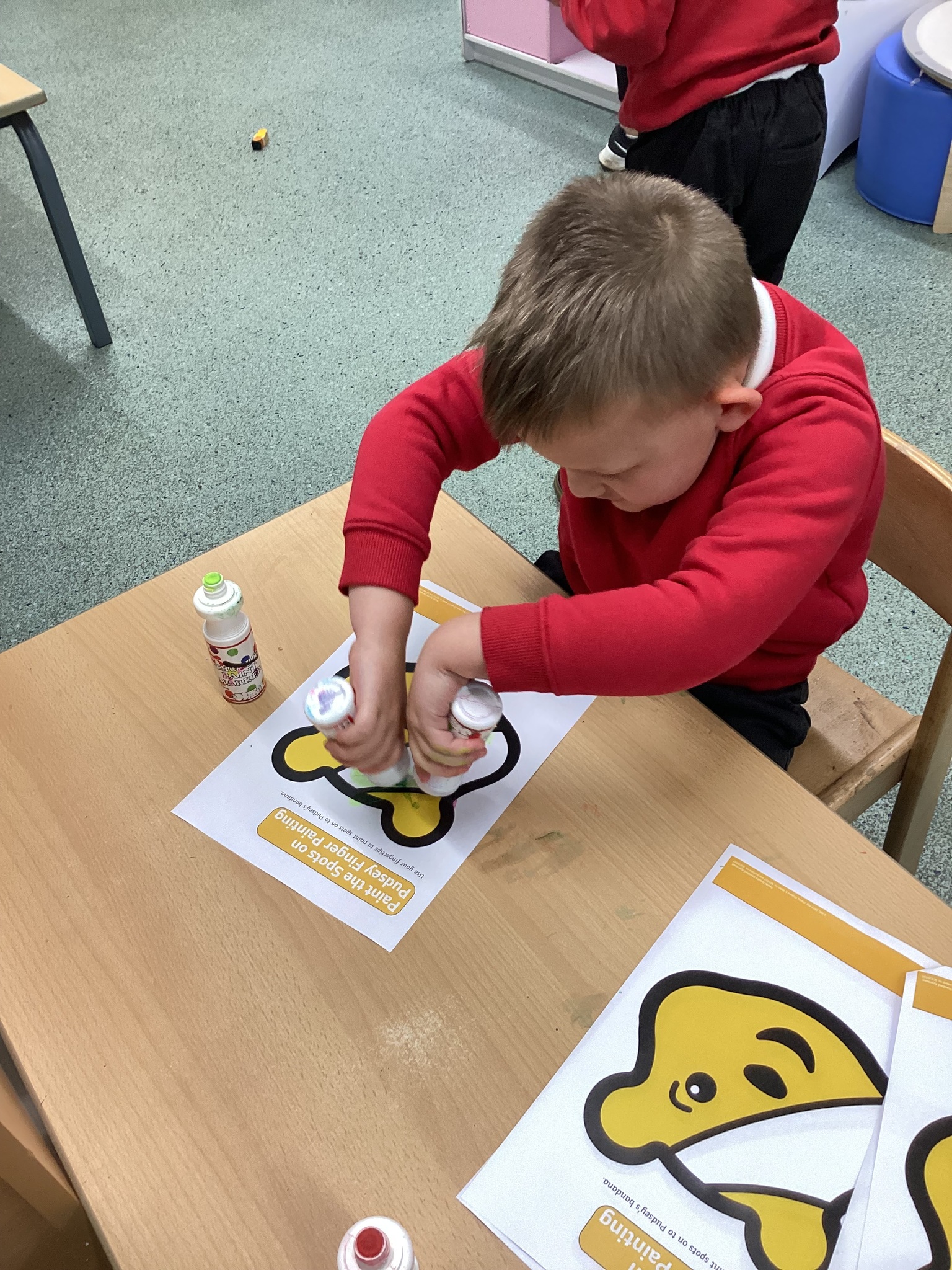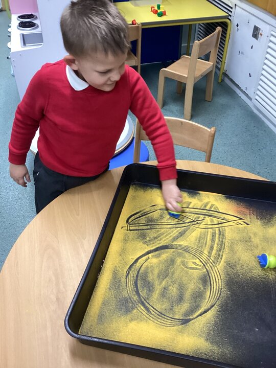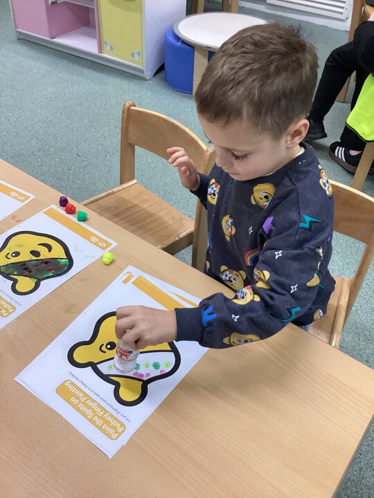 On Friday, we explored ‘children in need’. We decorated Pudsey the bear pictures, created his bandana with counters and made marks in sand.