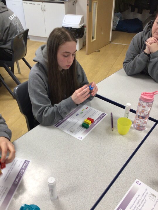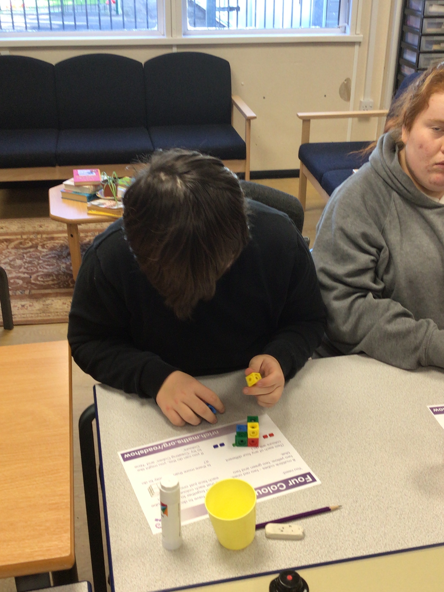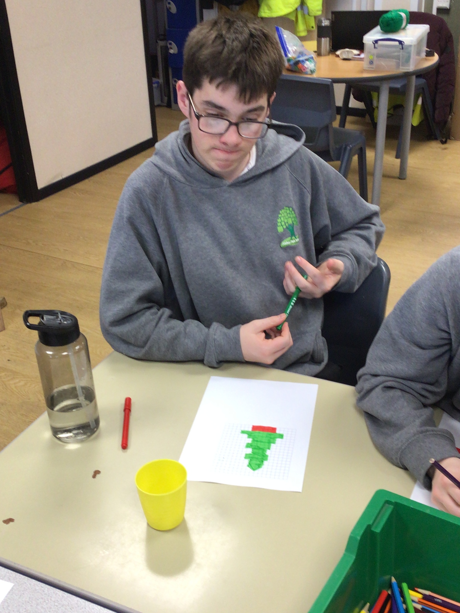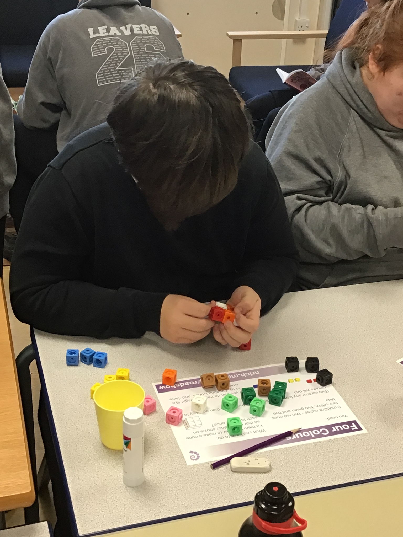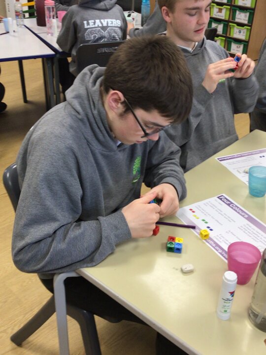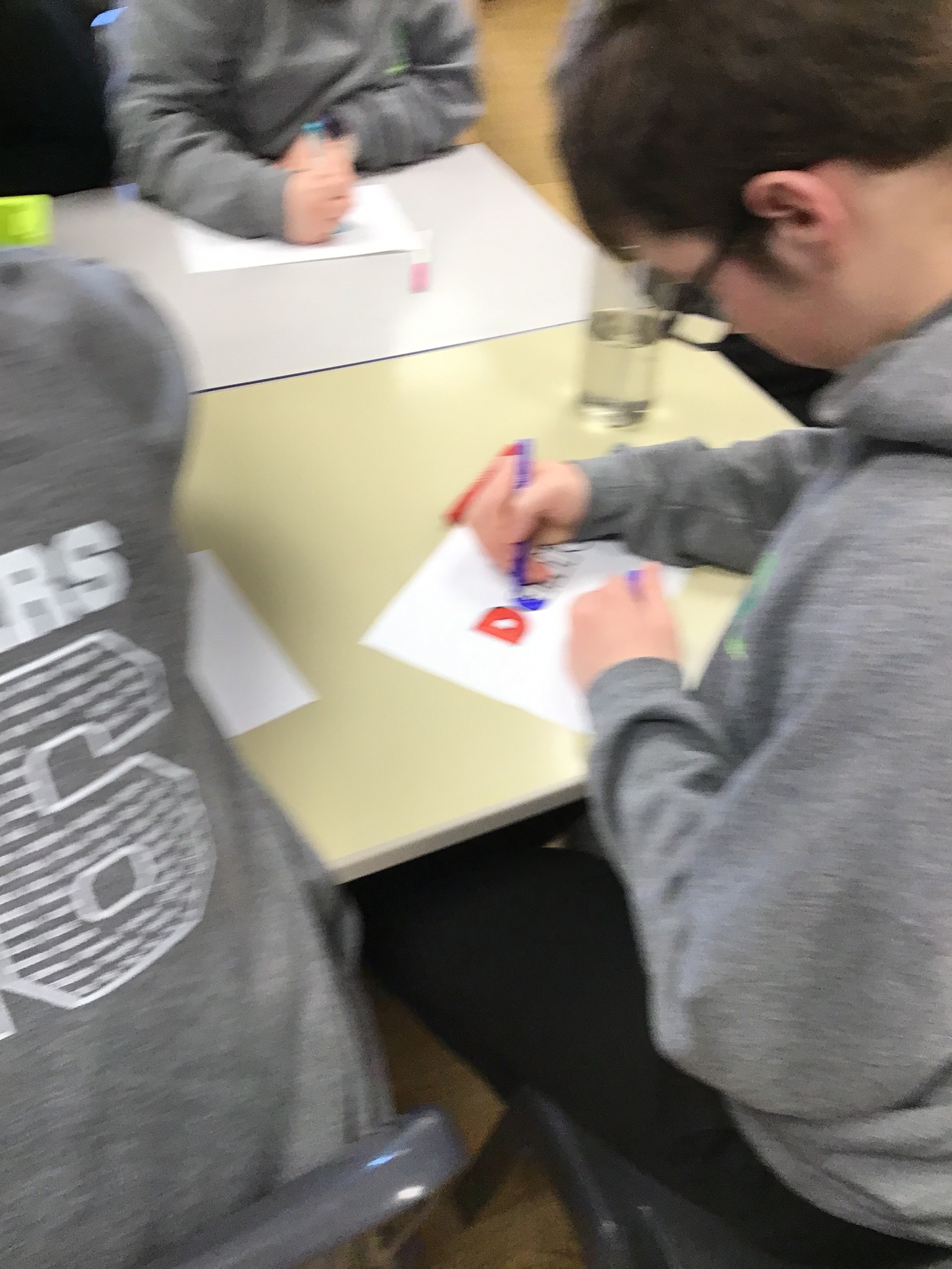 On Tuesday, we did Picture News. The question this week was 'What are the different ways we can express ourselves?'. We talked about the different ways we can express ourselves, thinking about our facial expressions, colouring, singing and dancing. We then created a poster, all about ourselves and the things that we do to tell others how we are feeling. We then did maths. For this lesson we tackled a problem called 'Four Colours'. For this problem we needed to use 4 colours of multilink cubes to make a cube that had 1 of each colour on each face. We all tackled it the same way, making one face first, then deciding where to place the other multilink to make the cube. It was quite tricky to make sure we had followed all the rules but we all got there in the end. Some of us then went onto making a 3x3x3 cube, using 9 different colours! This one was so hard and some of the staff even got involved to help (which we actually weren't)! We ended up finding a solution to use hints to complete it! Shout out to Ollie for persevering with this for 2 whole days, before he finally completed it!! In the afternoon, we designed our Christmas cards that we will begin sewing next week, for our Duke of Edinburgh.