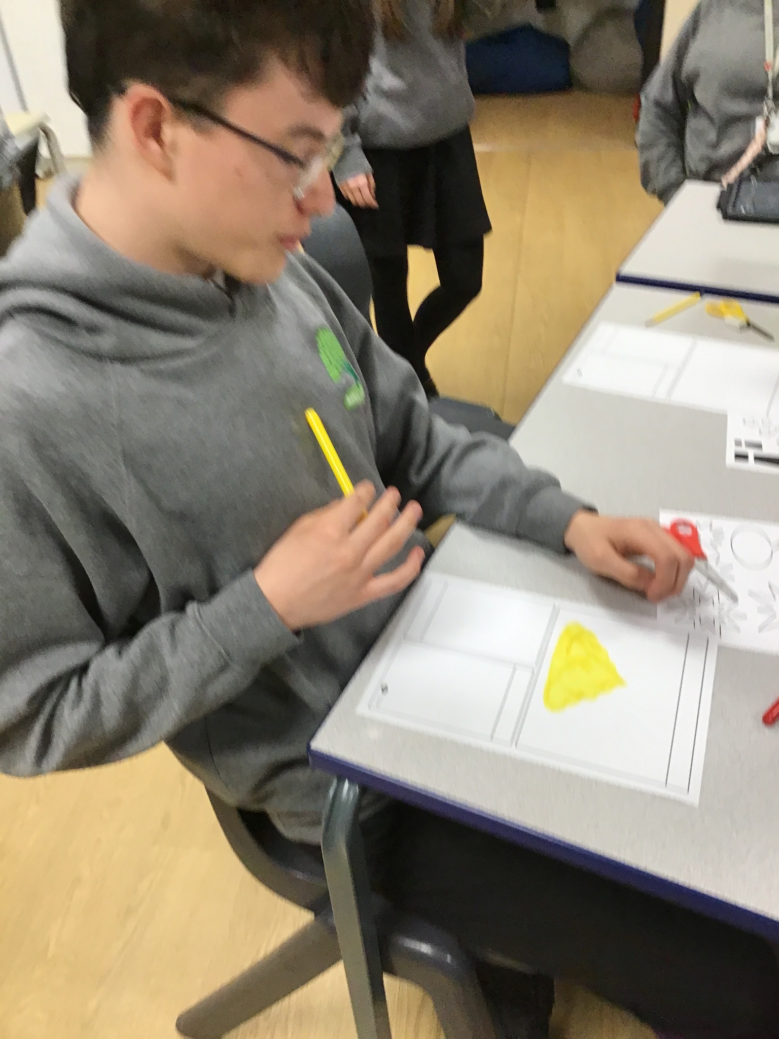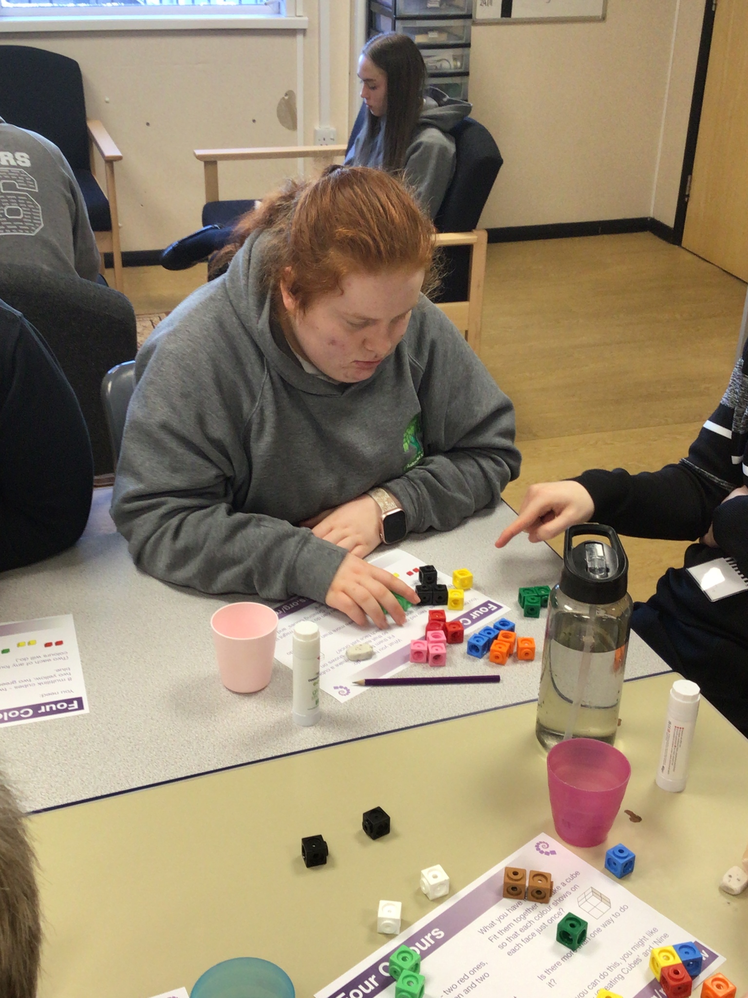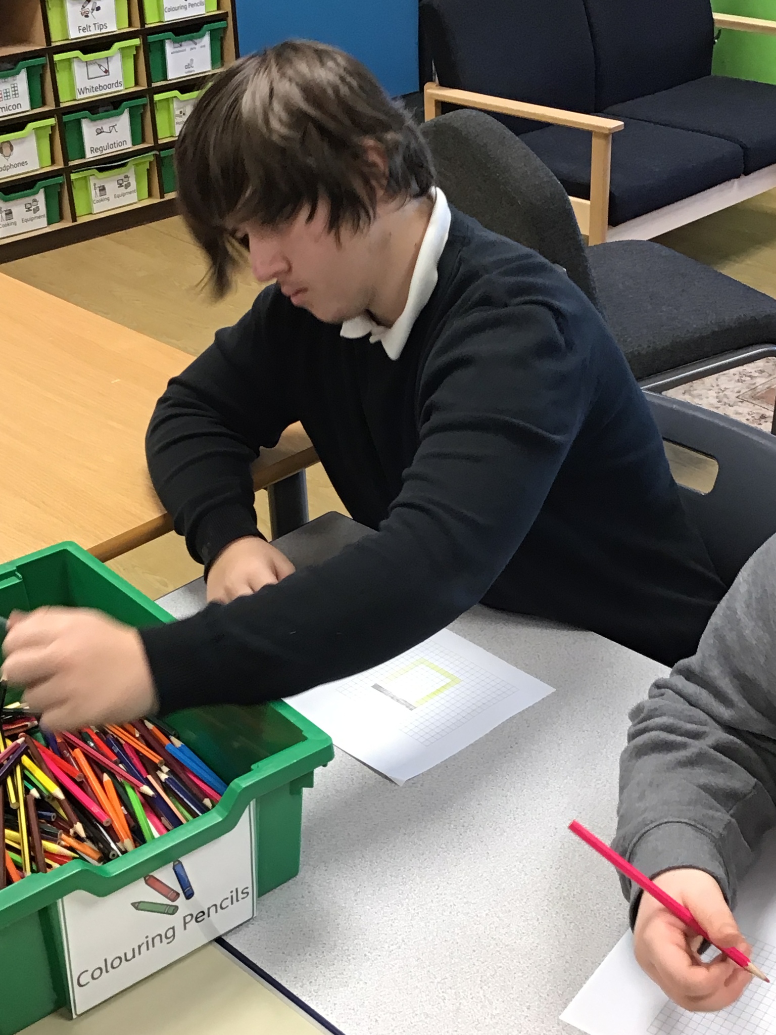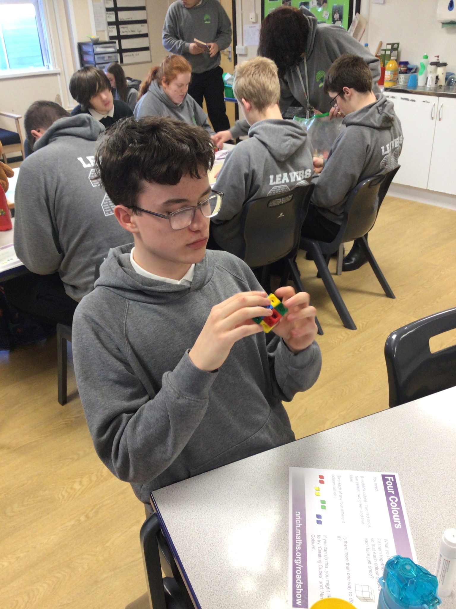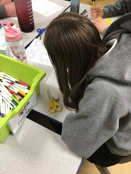 On Tuesday, we did Picture News. The question this week was 'What are the different ways we can express ourselves?'. We talked about the different ways we can express ourselves, thinking about our facial expressions, colouring, singing and dancing. We then created a poster, all about ourselves and the things that we do to tell others how we are feeling. We then did maths. For this lesson we tackled a problem called 'Four Colours'. For this problem we needed to use 4 colours of multilink cubes to make a cube that had 1 of each colour on each face. We all tackled it the same way, making one face first, then deciding where to place the other multilink to make the cube. It was quite tricky to make sure we had followed all the rules but we all got there in the end. Some of us then went onto making a 3x3x3 cube, using 9 different colours! This one was so hard and some of the staff even got involved to help (which we actually weren't)! We ended up finding a solution to use hints to complete it! Shout out to Ollie for persevering with this for 2 whole days, before he finally completed it!! In the afternoon, we designed our Christmas cards that we will begin sewing next week, for our Duke of Edinburgh.
