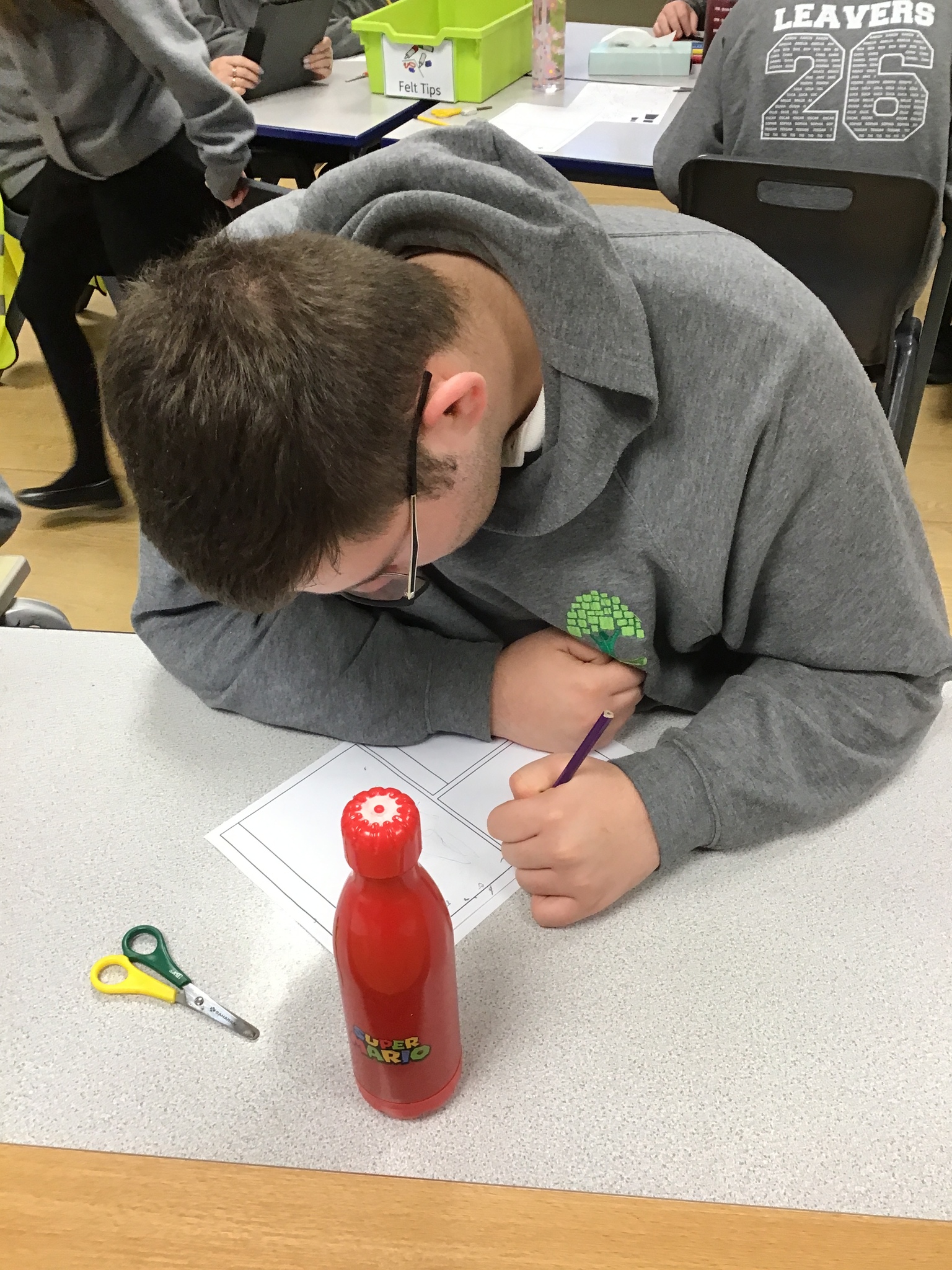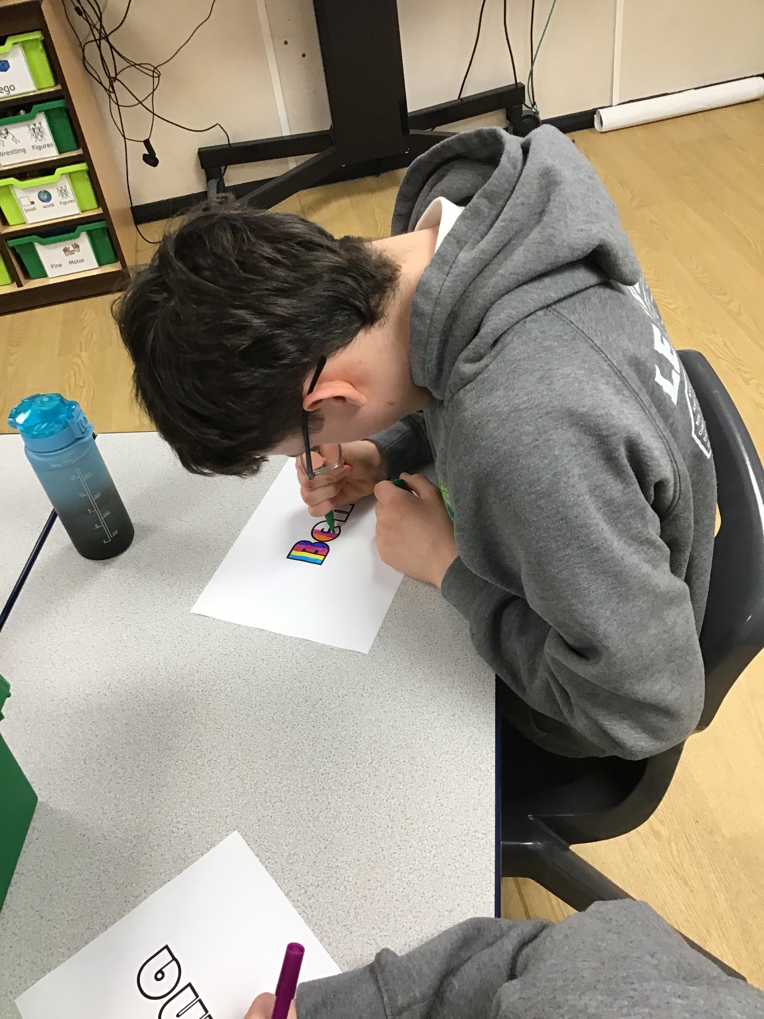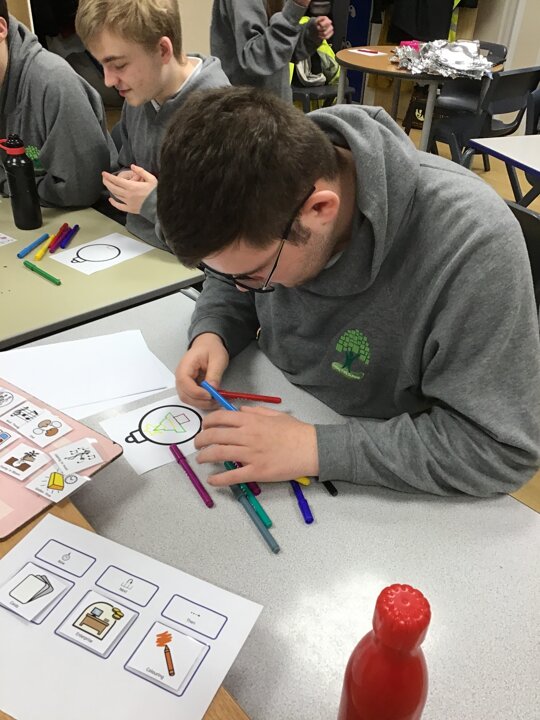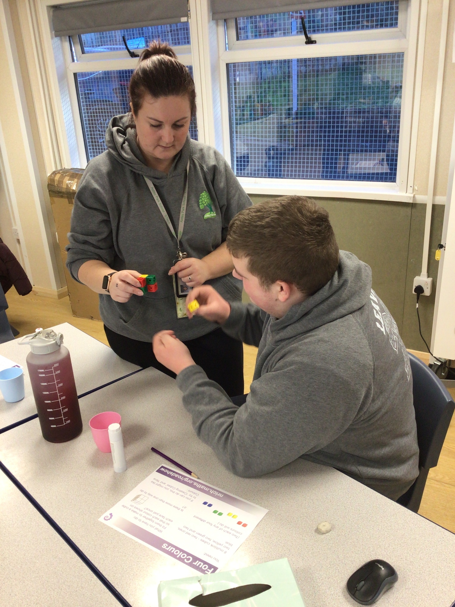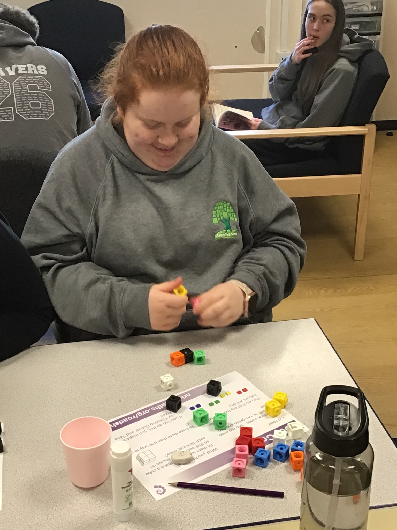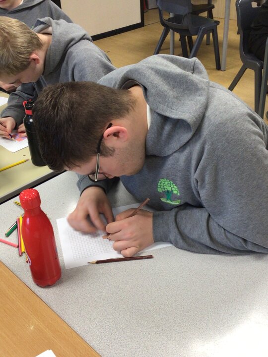 On Tuesday, we did Picture News. The question this week was 'What are the different ways we can express ourselves?'. We talked about the different ways we can express ourselves, thinking about our facial expressions, colouring, singing and dancing. We then created a poster, all about ourselves and the things that we do to tell others how we are feeling. We then did maths. For this lesson we tackled a problem called 'Four Colours'. For this problem we needed to use 4 colours of multilink cubes to make a cube that had 1 of each colour on each face. We all tackled it the same way, making one face first, then deciding where to place the other multilink to make the cube. It was quite tricky to make sure we had followed all the rules but we all got there in the end. Some of us then went onto making a 3x3x3 cube, using 9 different colours! This one was so hard and some of the staff even got involved to help (which we actually weren't)! We ended up finding a solution to use hints to complete it! Shout out to Ollie for persevering with this for 2 whole days, before he finally completed it!! In the afternoon, we designed our Christmas cards that we will begin sewing next week, for our Duke of Edinburgh.