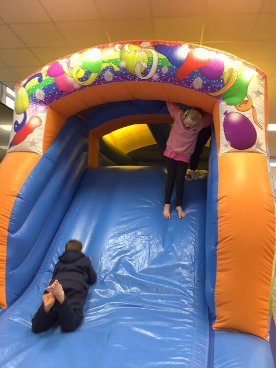 Welcome to the final Holiday Club blog of the Christmas holidays. Today was a much quieter day with less children booked in as there were only a few members of staff available to work. Nevertheless, we still managed to pack in lots of fun activities including bouncing and climbing on the inflatable assault course, sensory room and sensory integration room sessions, outdoor fun on the adventure playground, arts and crafts and a slime making workshop.