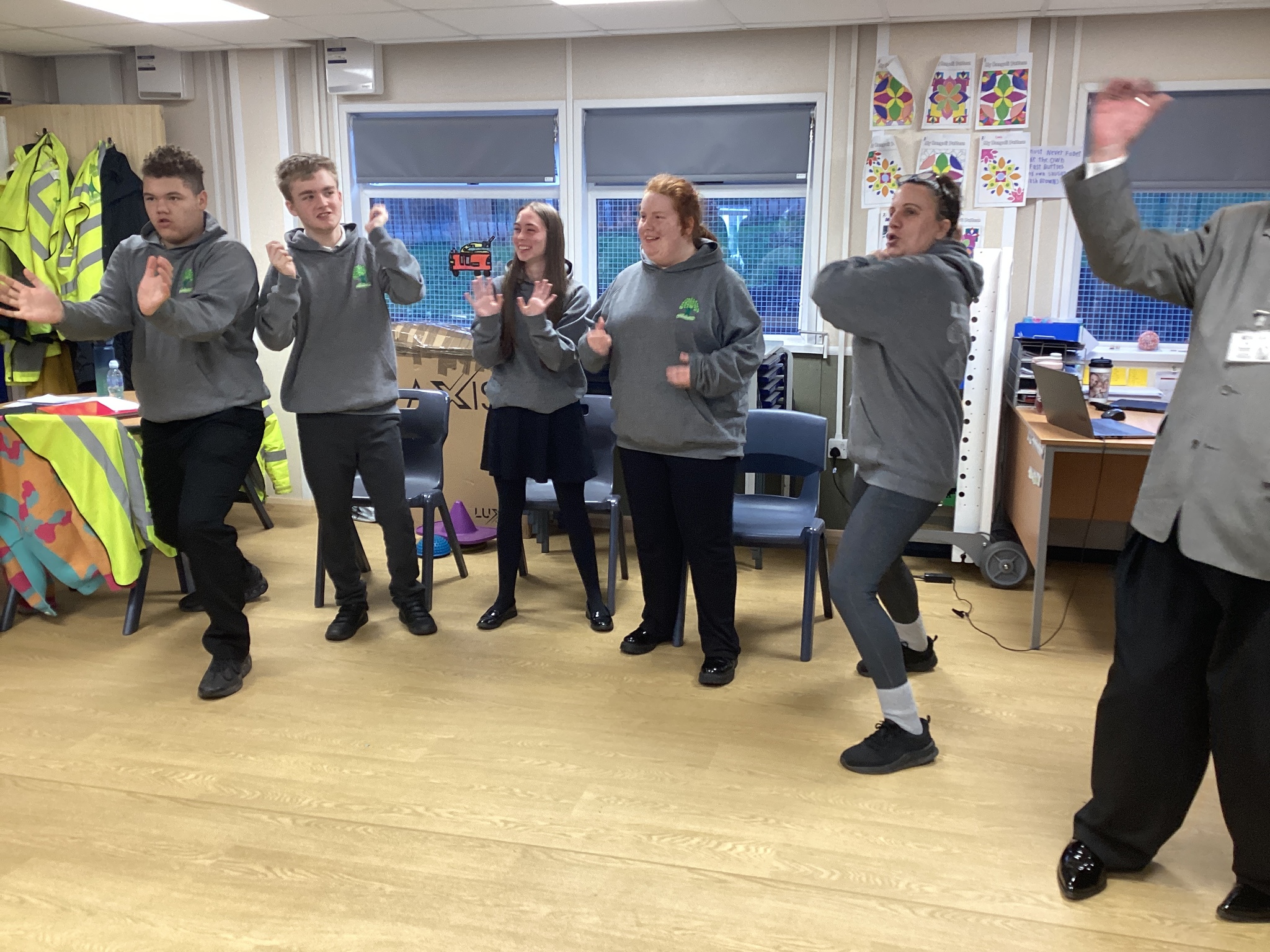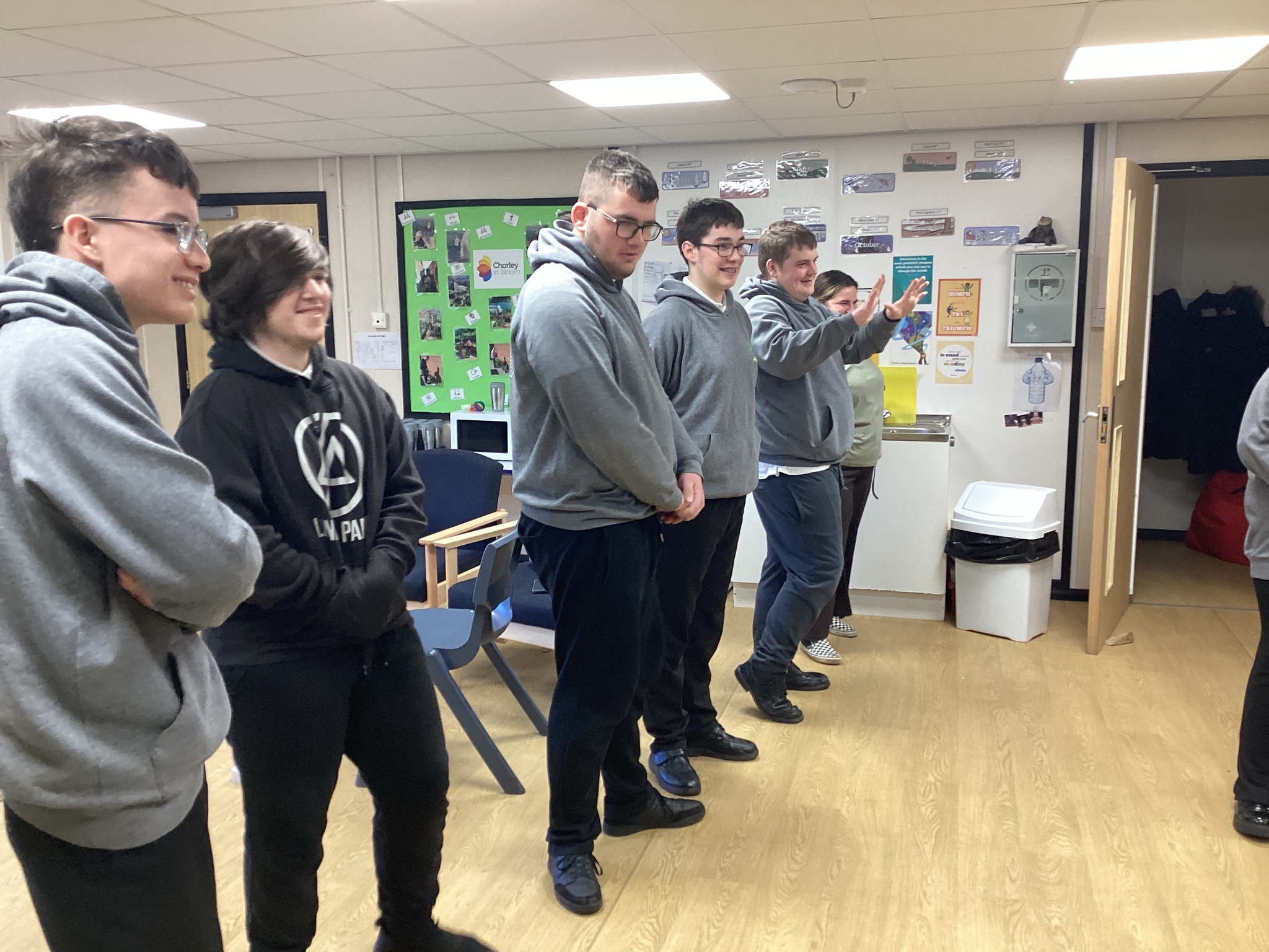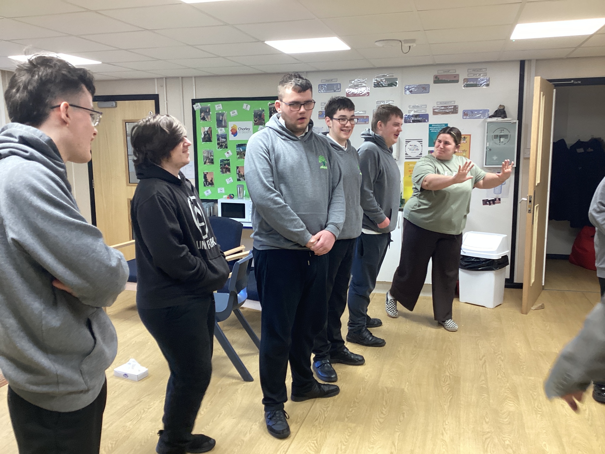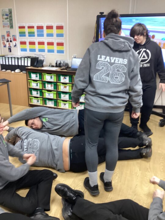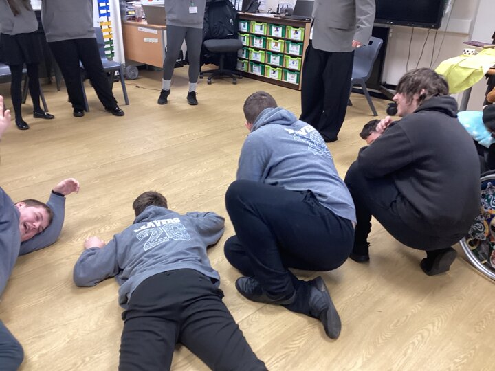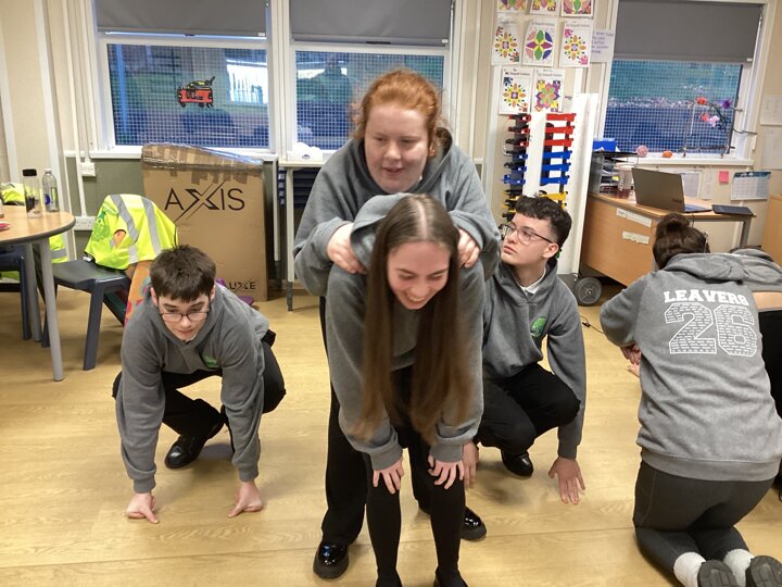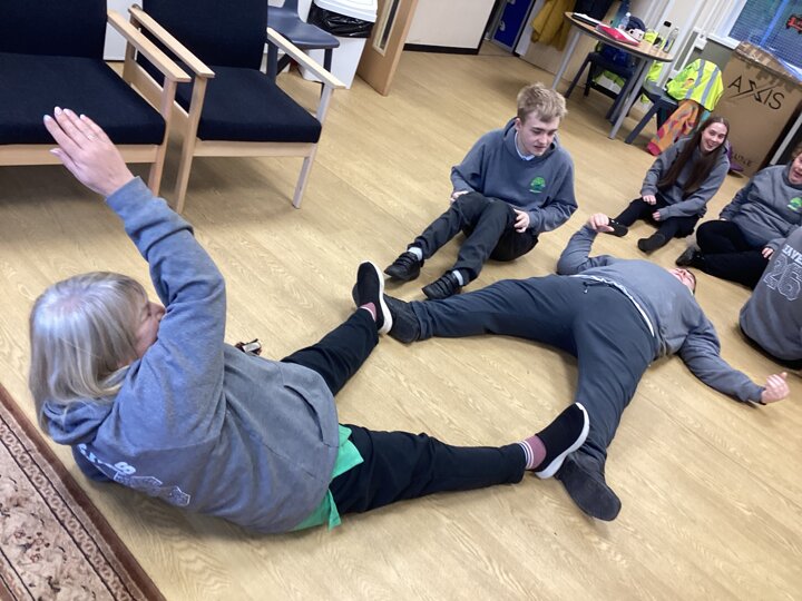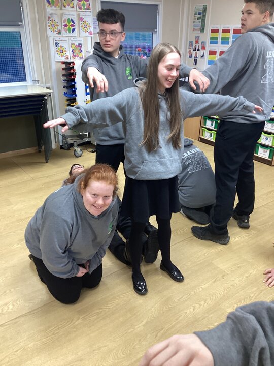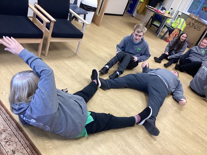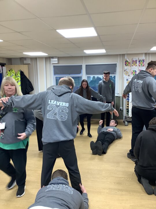 On Thursday we had a gentleman called Rob came in from a theatre company to come and do a session with us. He introduced himself and we had to go round the circle and say our name someone said bing, then bong and then we had to say our name. Rob explained we are linking this to our ASDAN work and we spoke about the environment. We spoke about different means of transport and what is good for the environment. Rob then told us to get into groups and in our groups we had to act out different means of transport using our bodies.