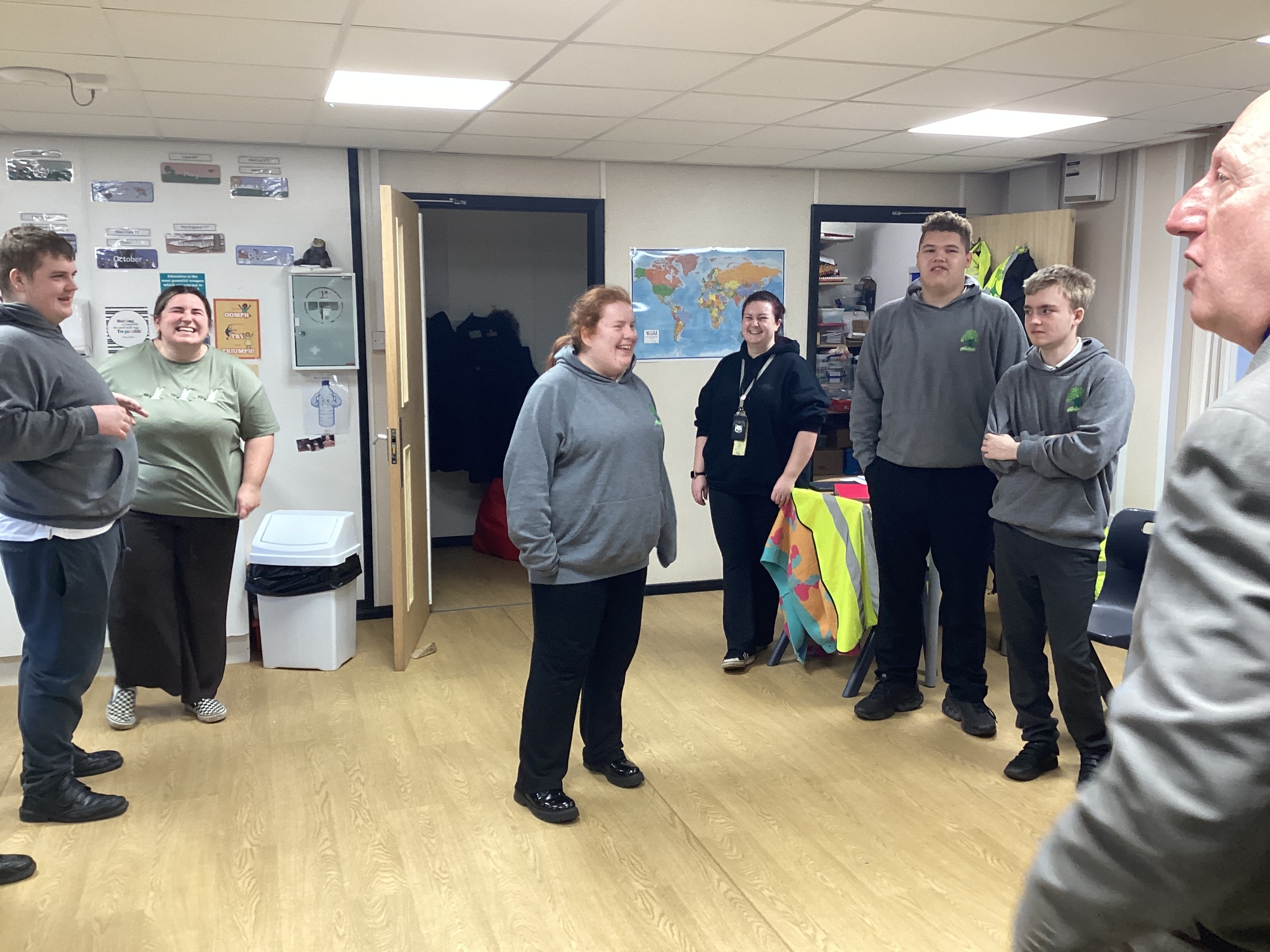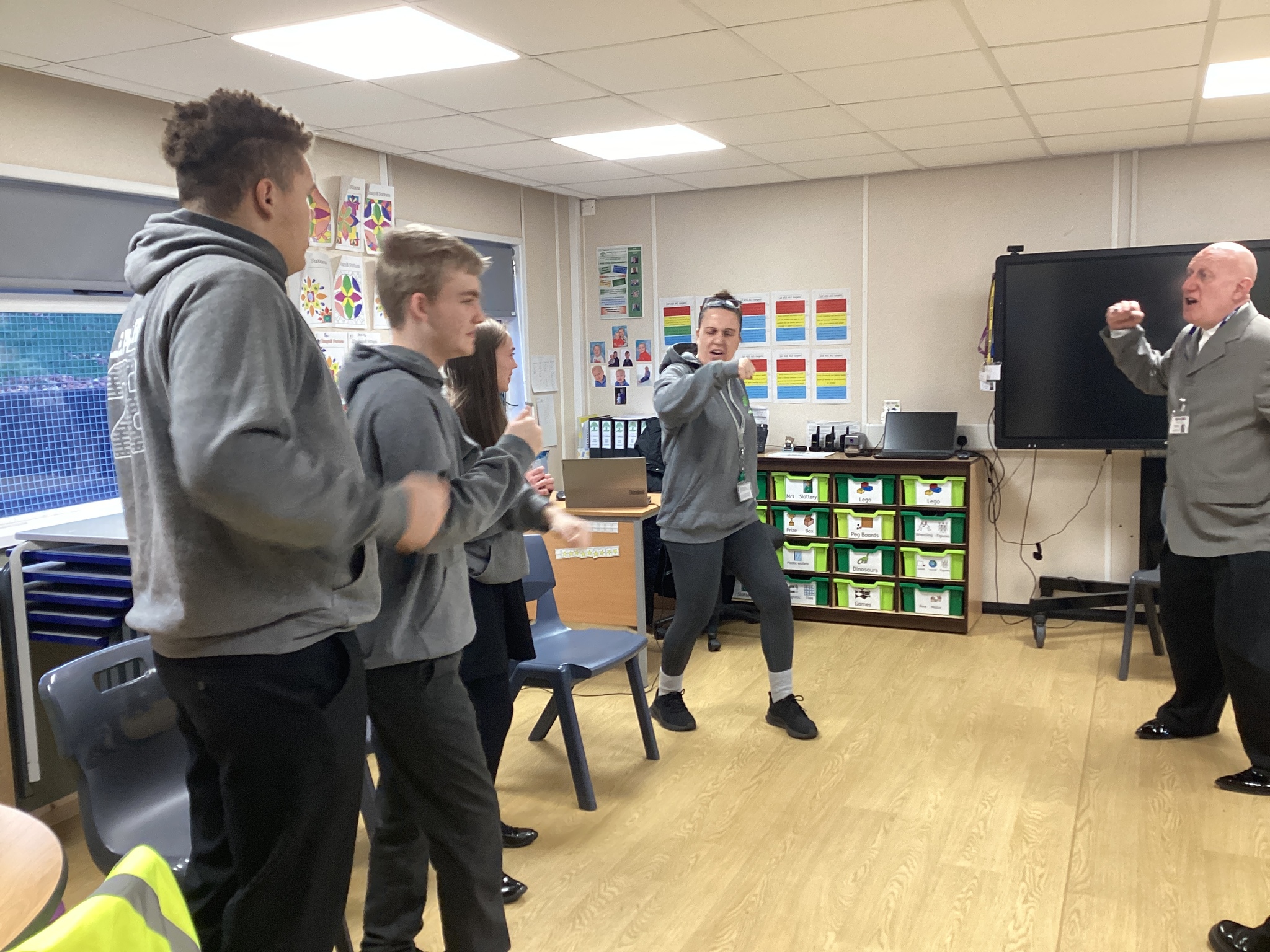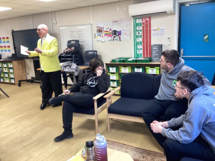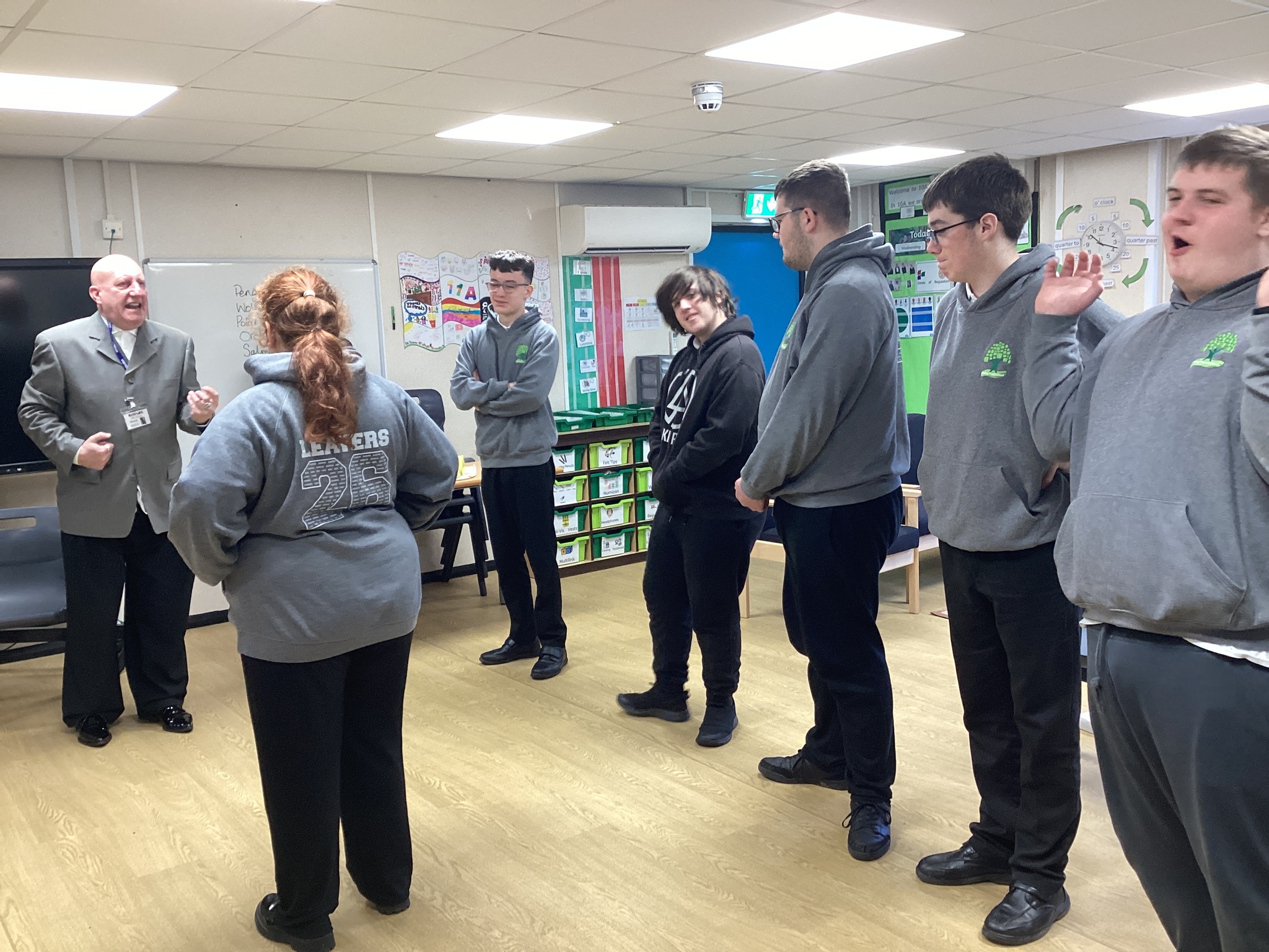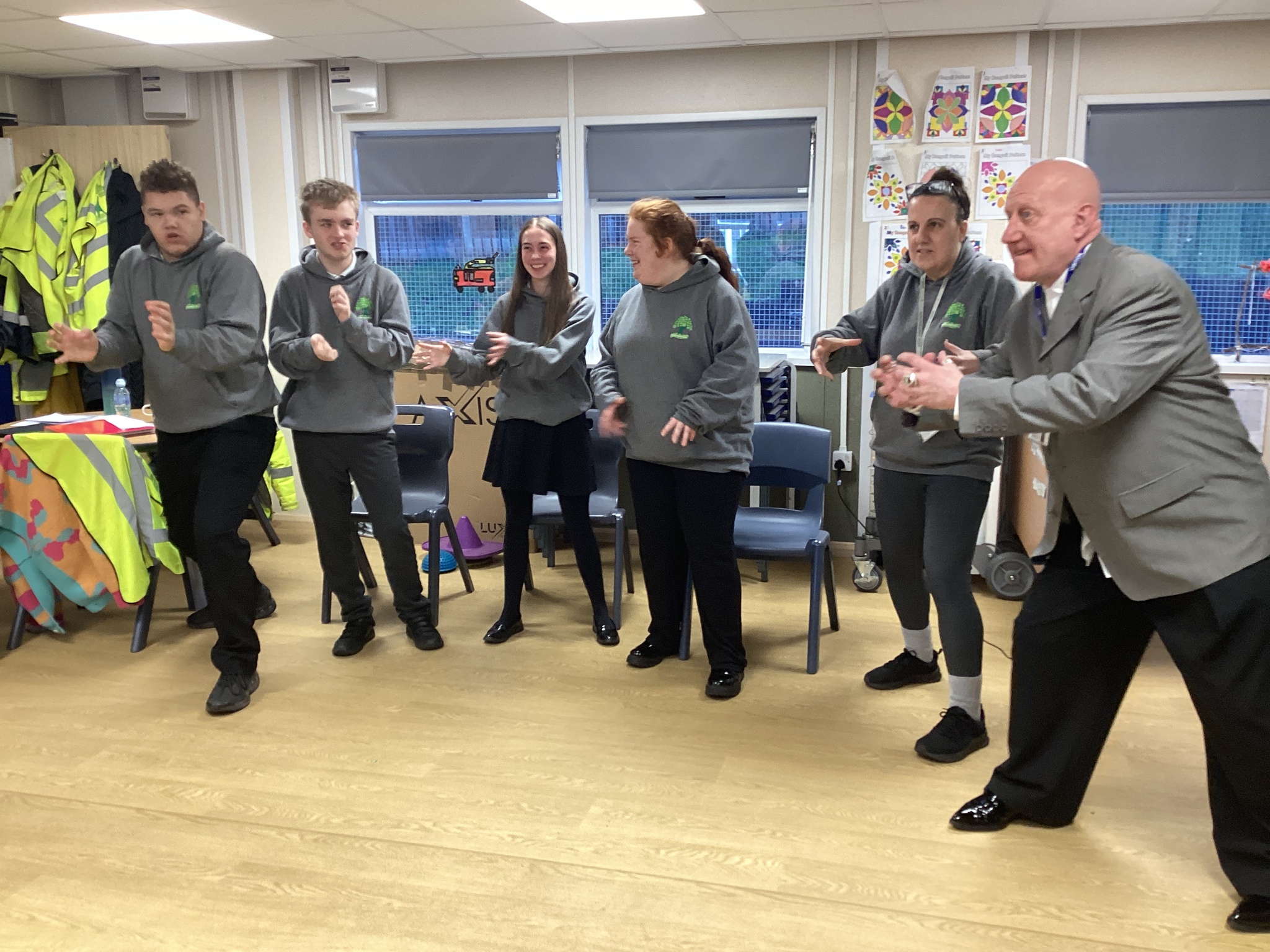 On Thursday we had a gentleman called Rob came in from a theatre company to come and do a session with us. He introduced himself and we had to go round the circle and say our name someone said bing, then bong and then we had to say our name. Rob explained we are linking this to our ASDAN work and we spoke about the environment. We spoke about different means of transport and what is good for the environment. Rob then told us to get into groups and in our groups we had to act out different means of transport using our bodies.