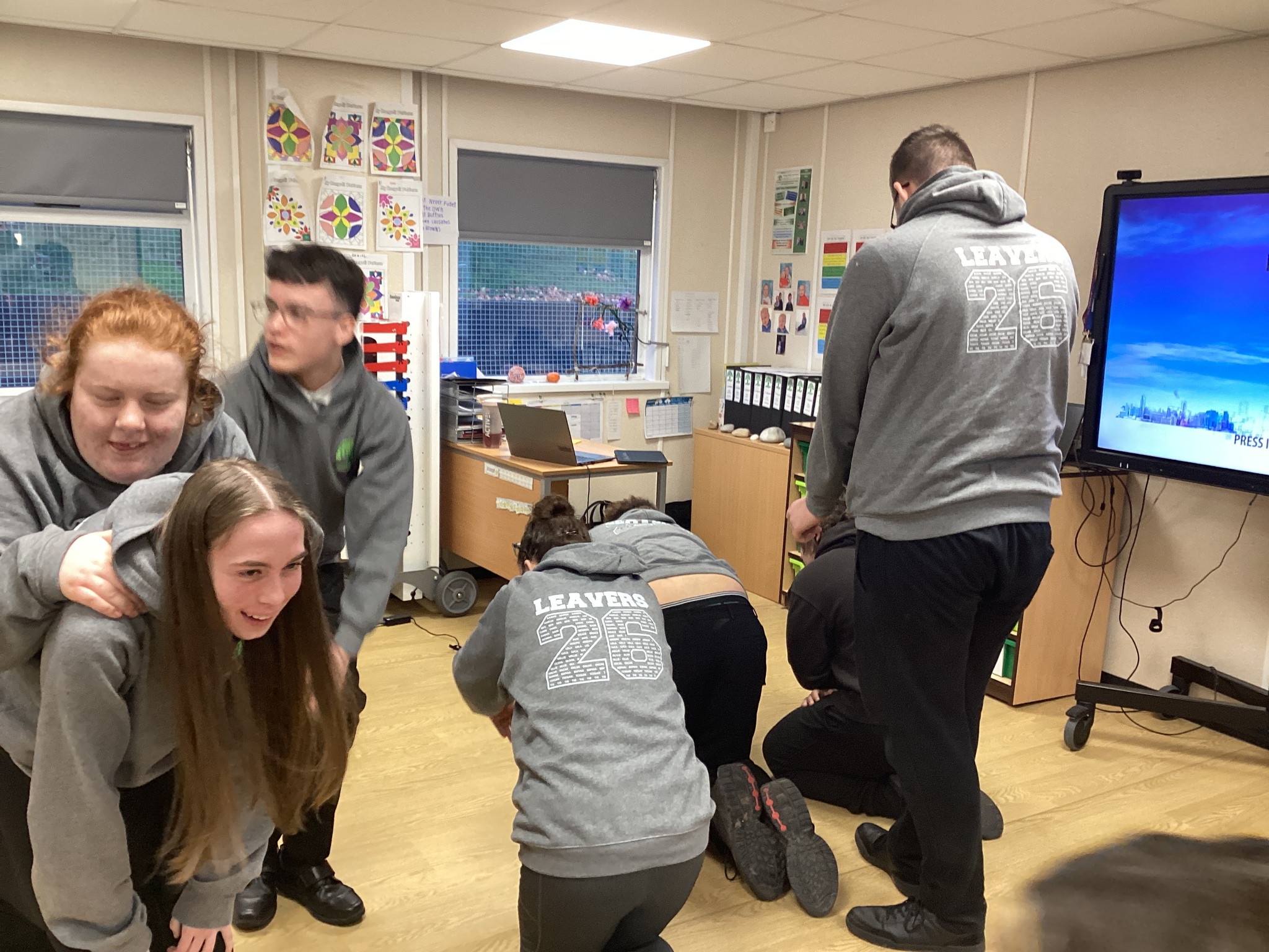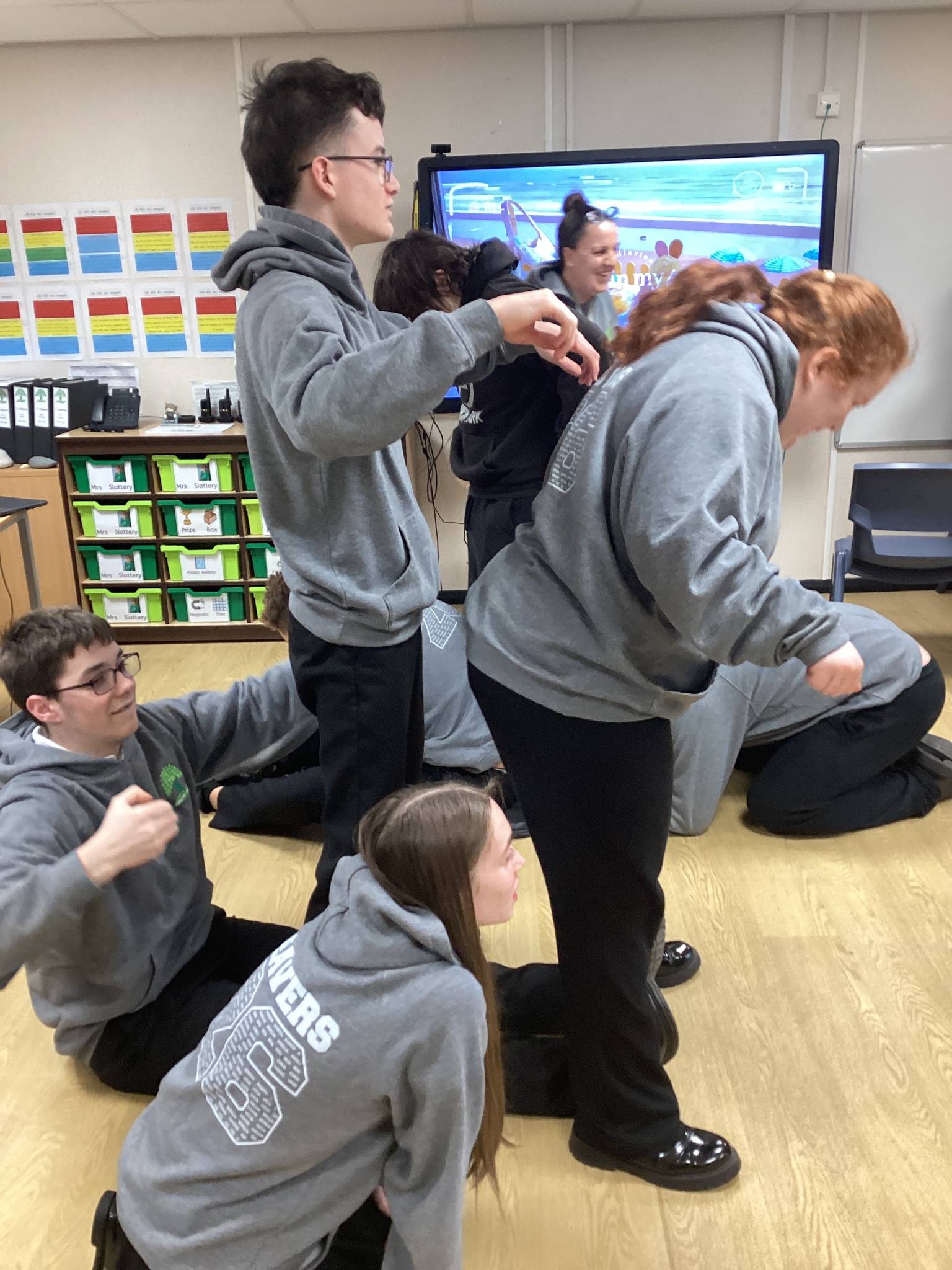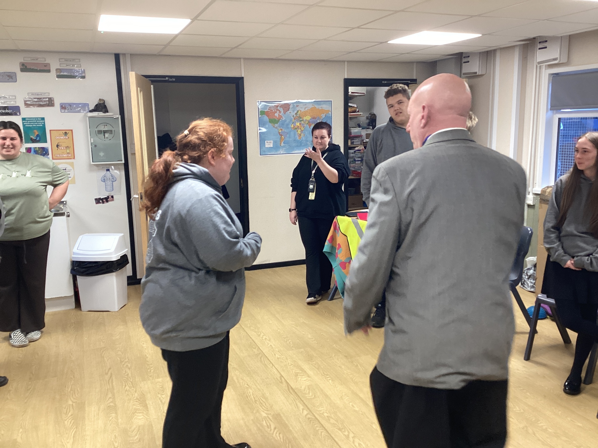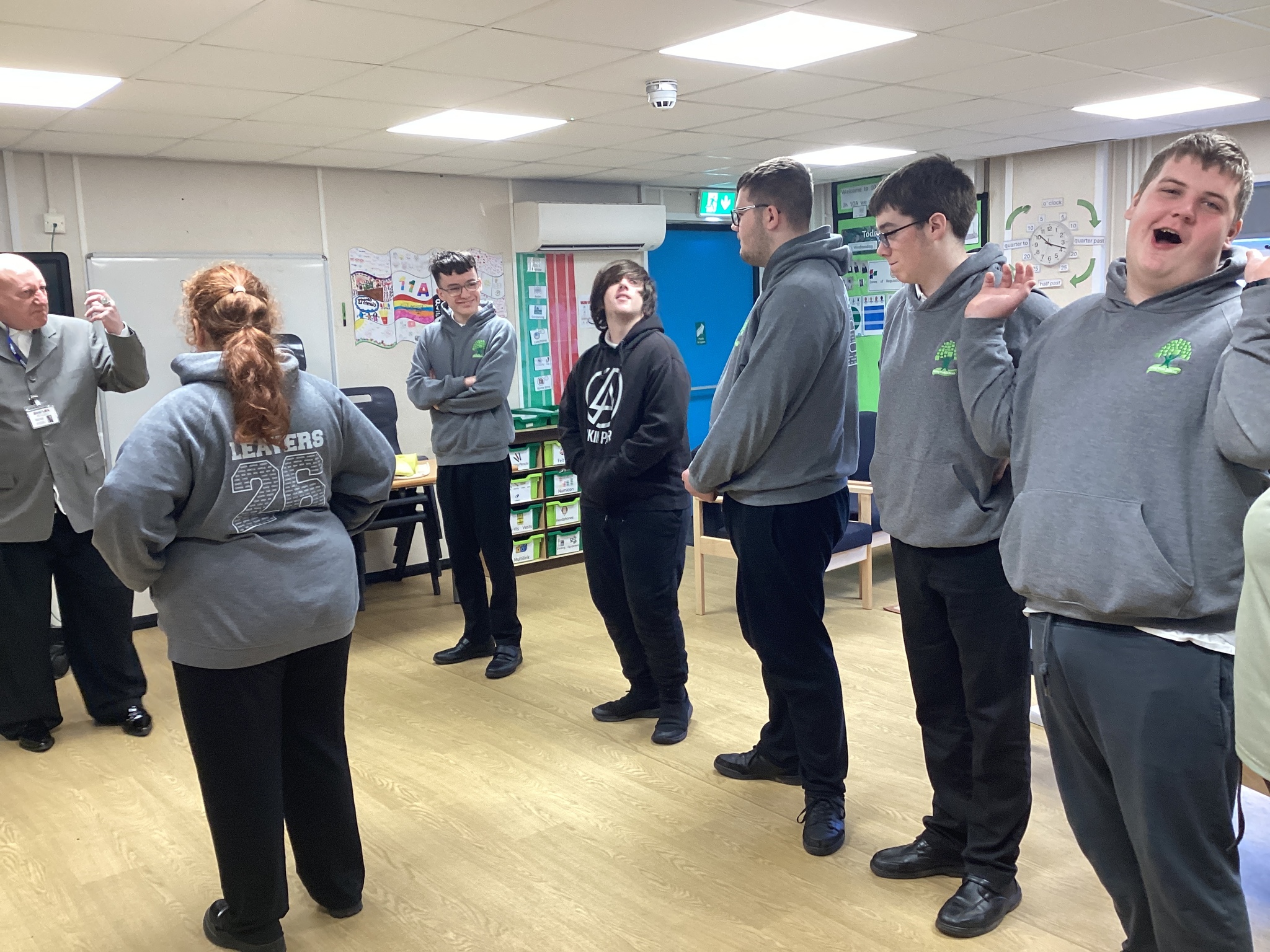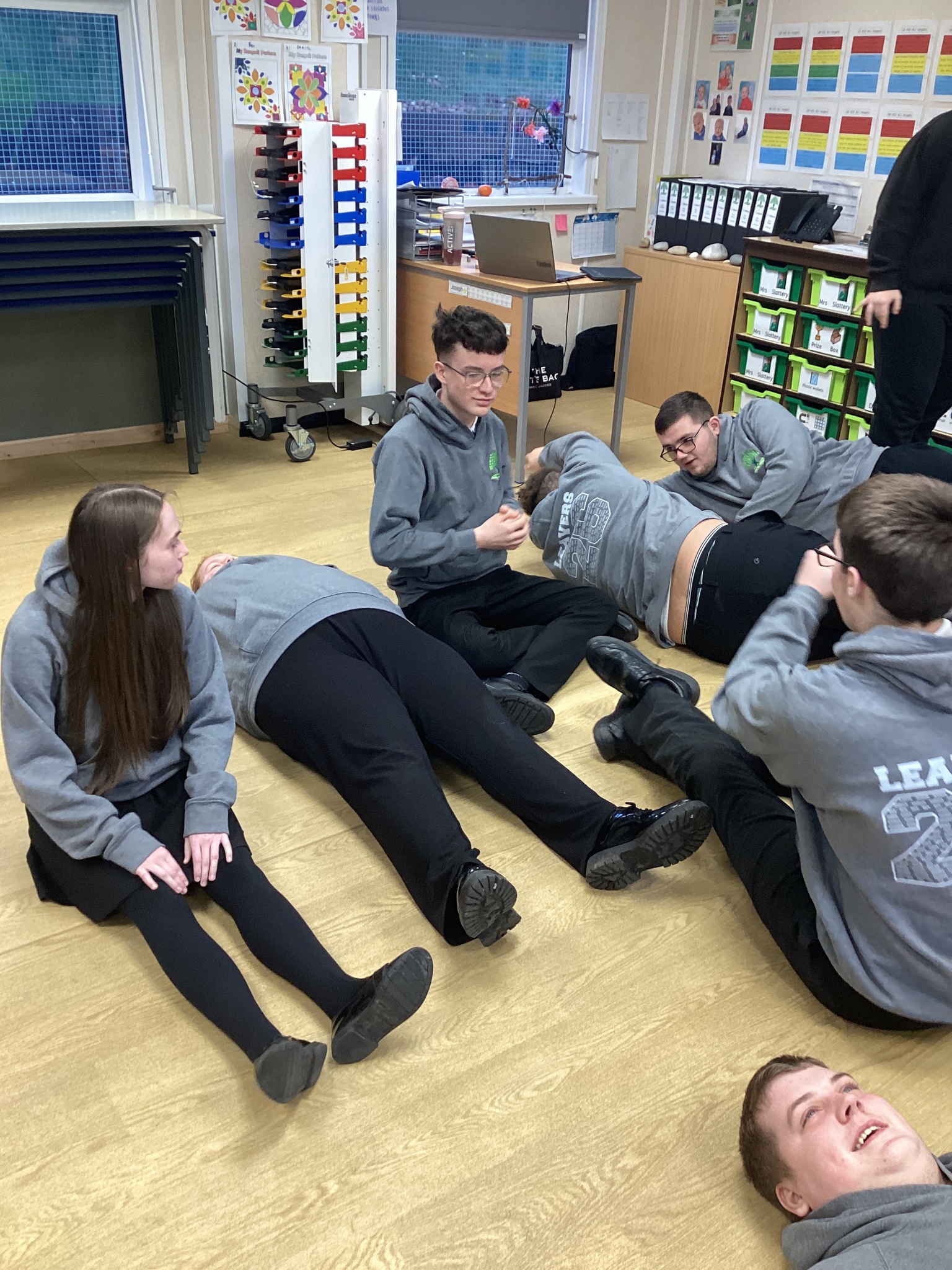 On Thursday we had a gentleman called Rob came in from a theatre company to come and do a session with us. He introduced himself and we had to go round the circle and say our name someone said bing, then bong and then we had to say our name. Rob explained we are linking this to our ASDAN work and we spoke about the environment. We spoke about different means of transport and what is good for the environment. Rob then told us to get into groups and in our groups we had to act out different means of transport using our bodies.