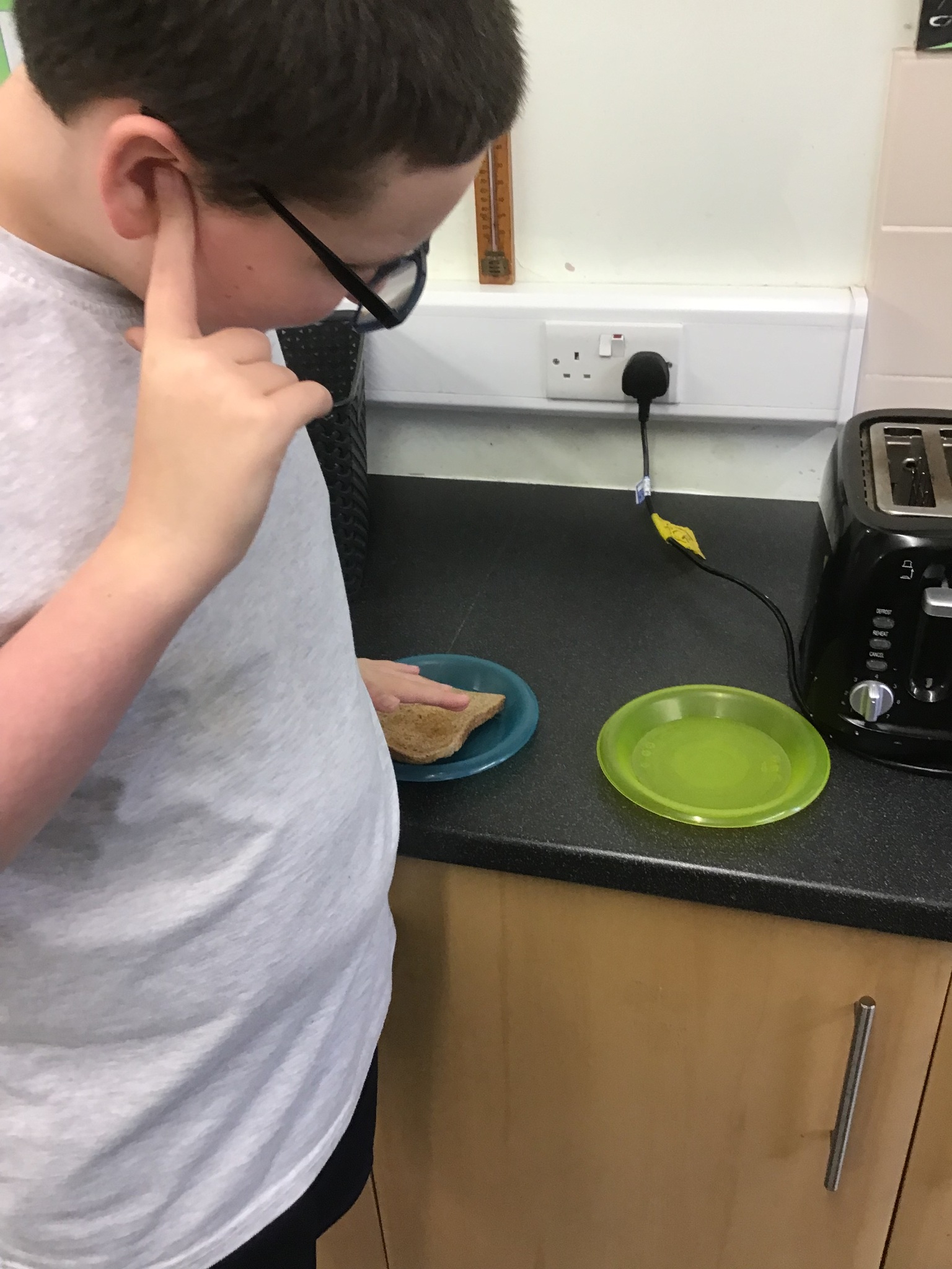 Our Explorers continued with our cooking unit, and they are becoming more independent with making their own toast. They are taking it out of the toaster, buttering it, and even adding jam.
