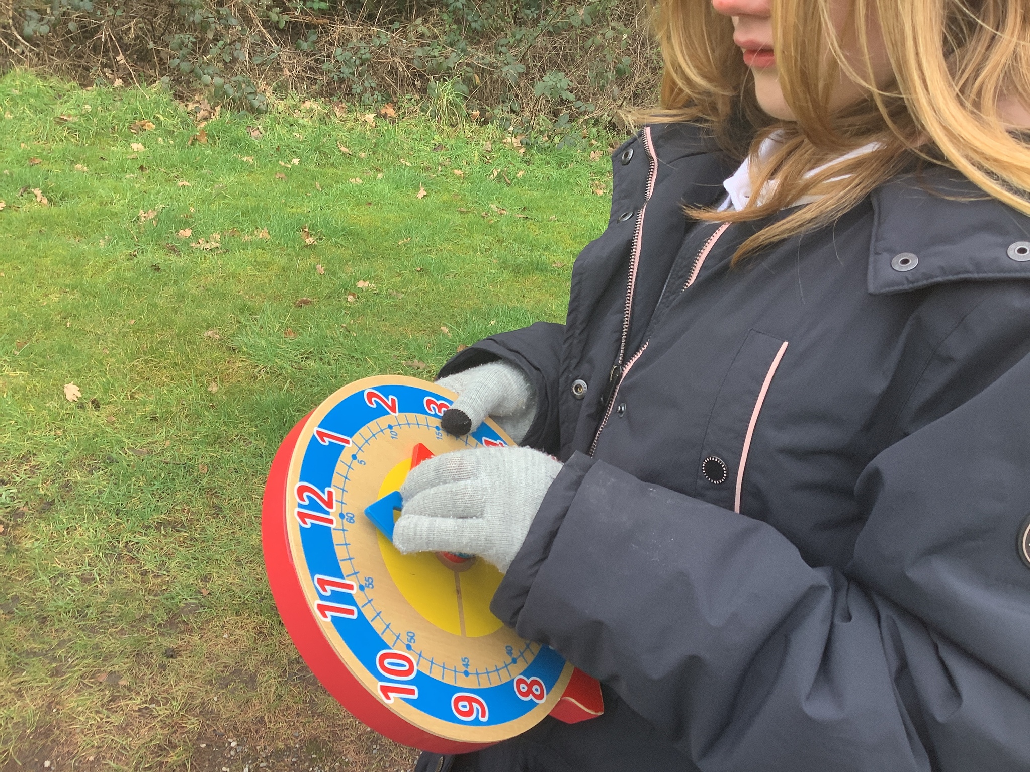Our Adventures have been learning all about hours and o’clock and amazed Miss Townson with how much they already knew about time. They then cemented their learning with a game of ‘What Time is it Mr Wolf?’ on the track using our giant clock.