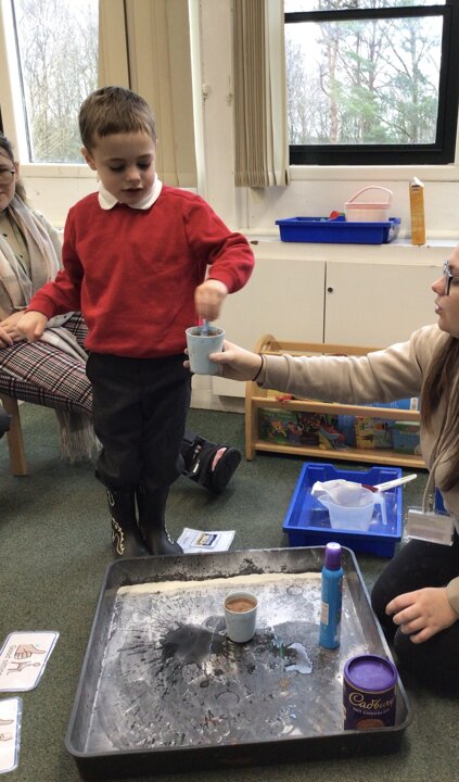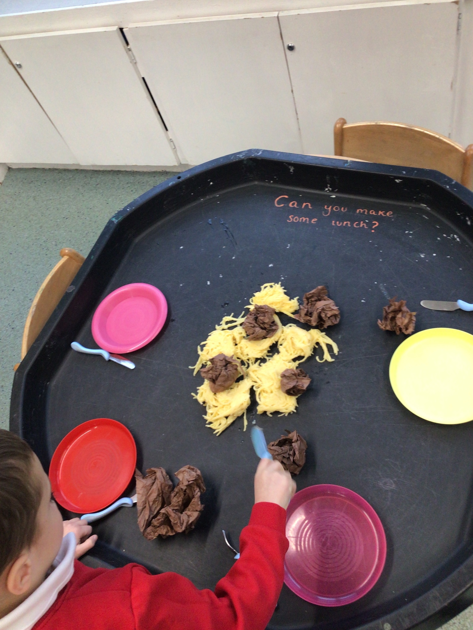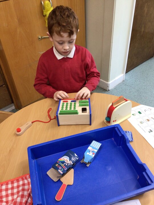 During continuous provision we explored hot chocolate, spaghetti, pancakes and eggs. We also enjoyed role playing with the shopping and pretended we were shop keepers.