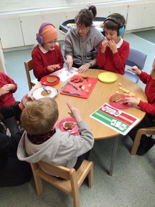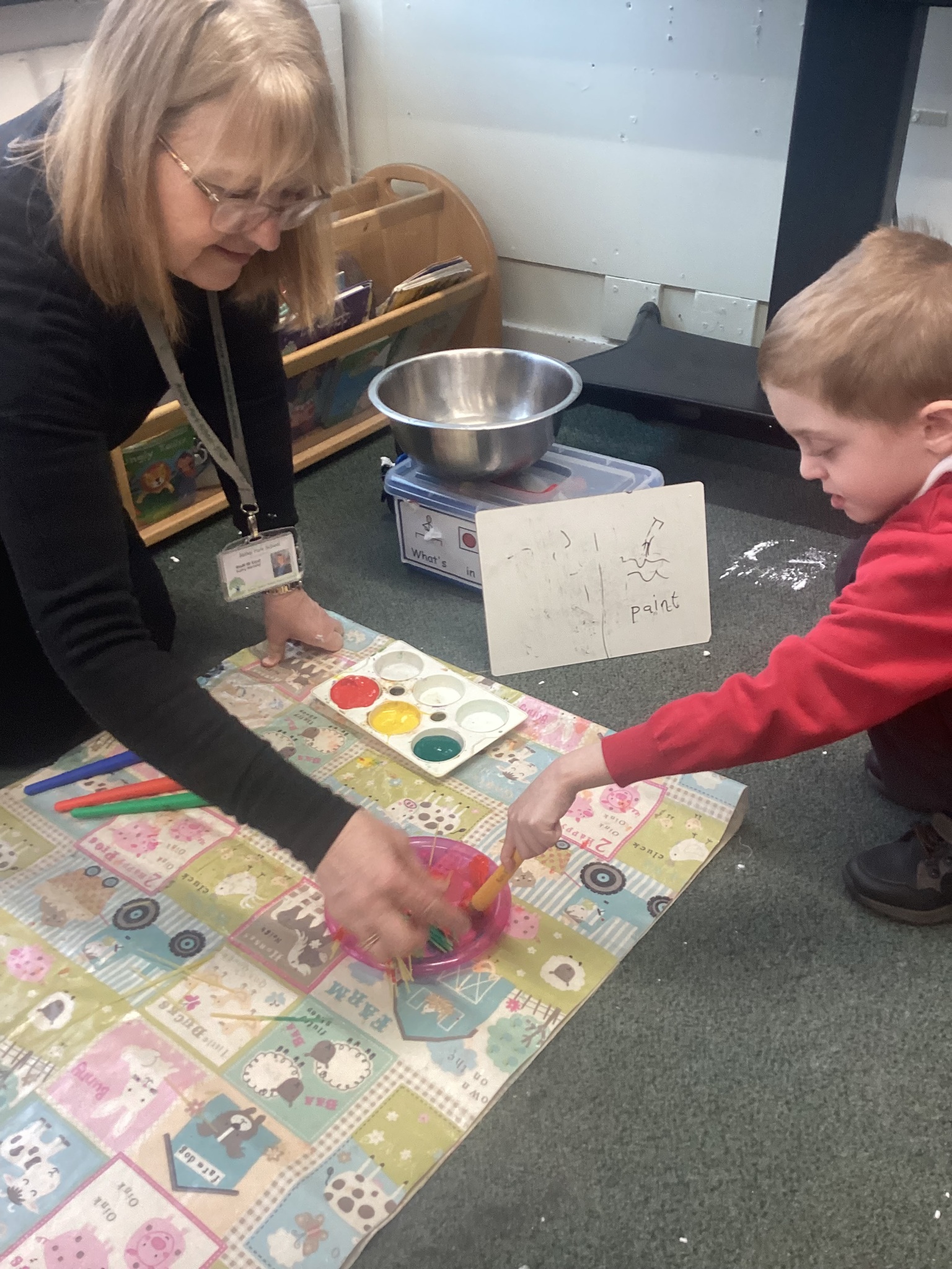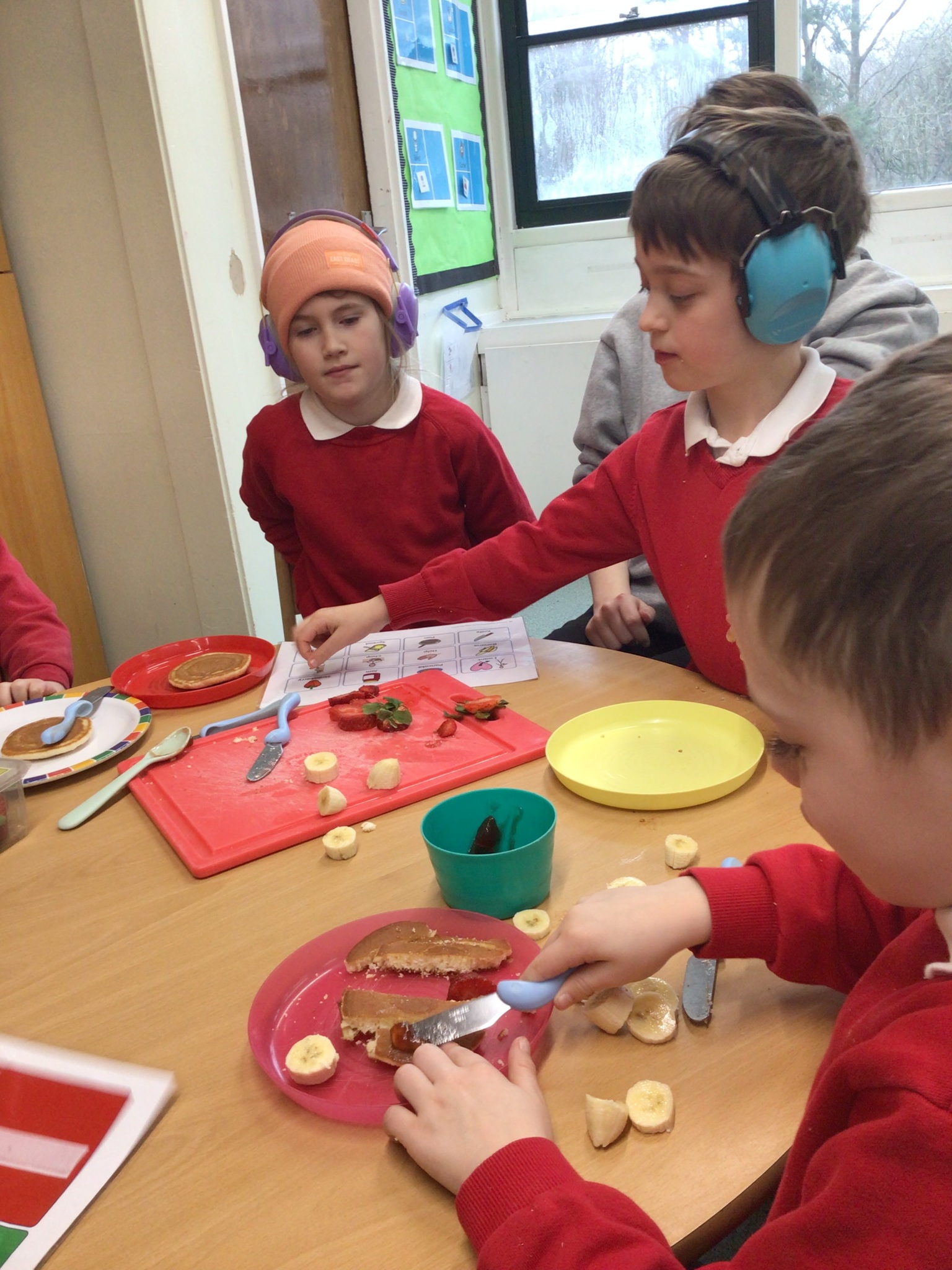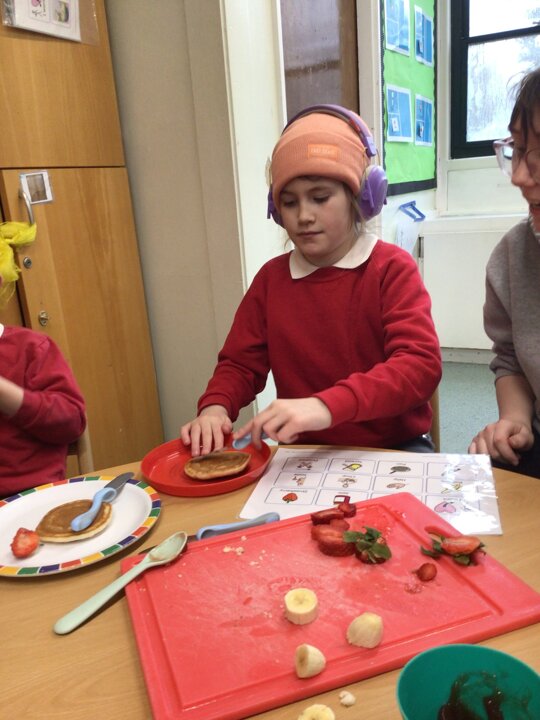 During adult led activities, we enjoyed an egg role, spaghetti painting, pouring and filling and used great communication to decorate a pancake.