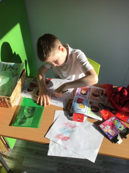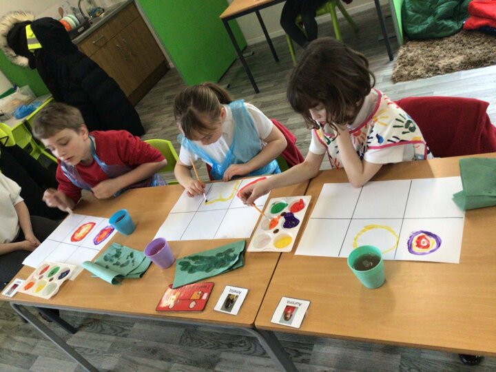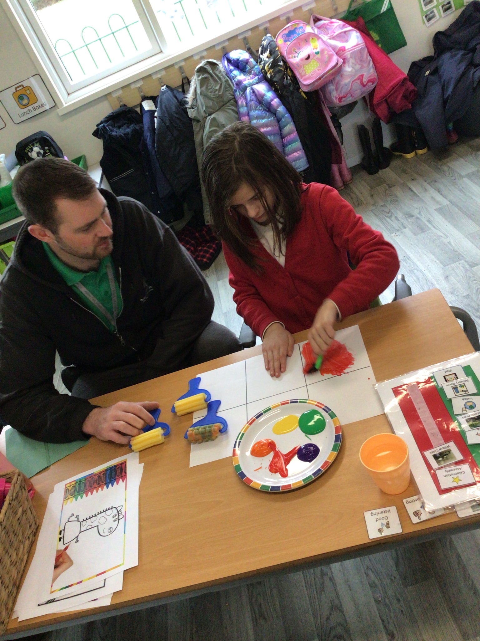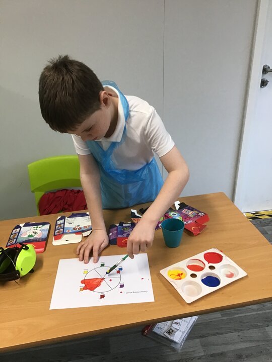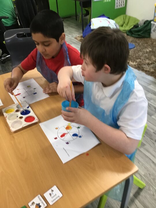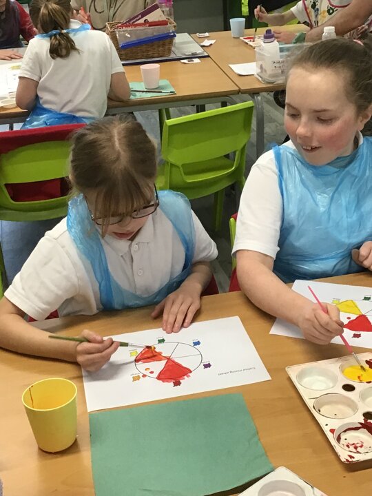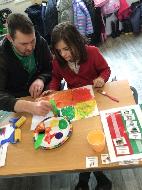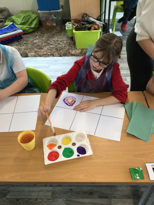 Some great creative work in art, looking at primary colours and the colour mixing wheel, everyone enjoyed getting messy with paints!